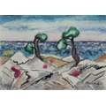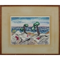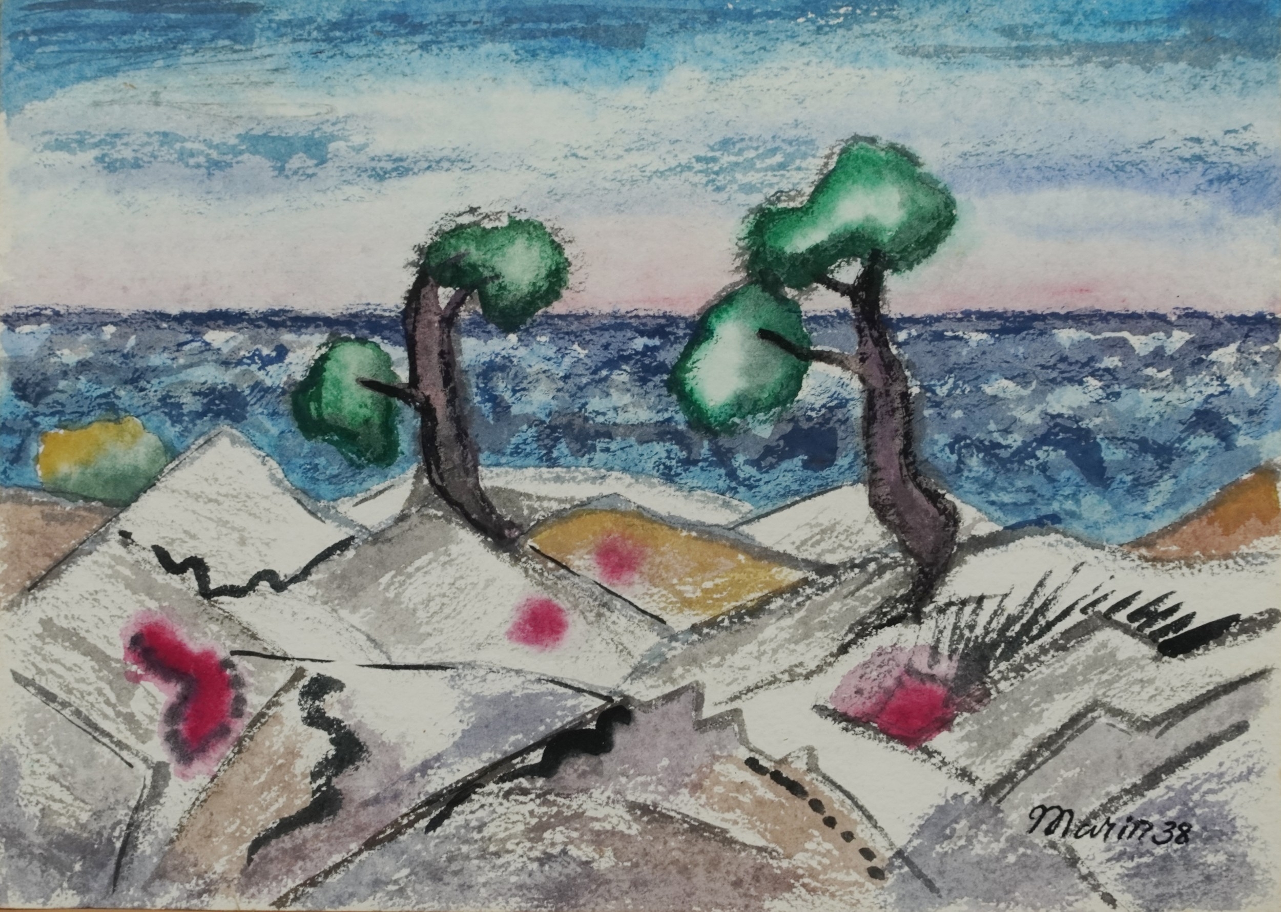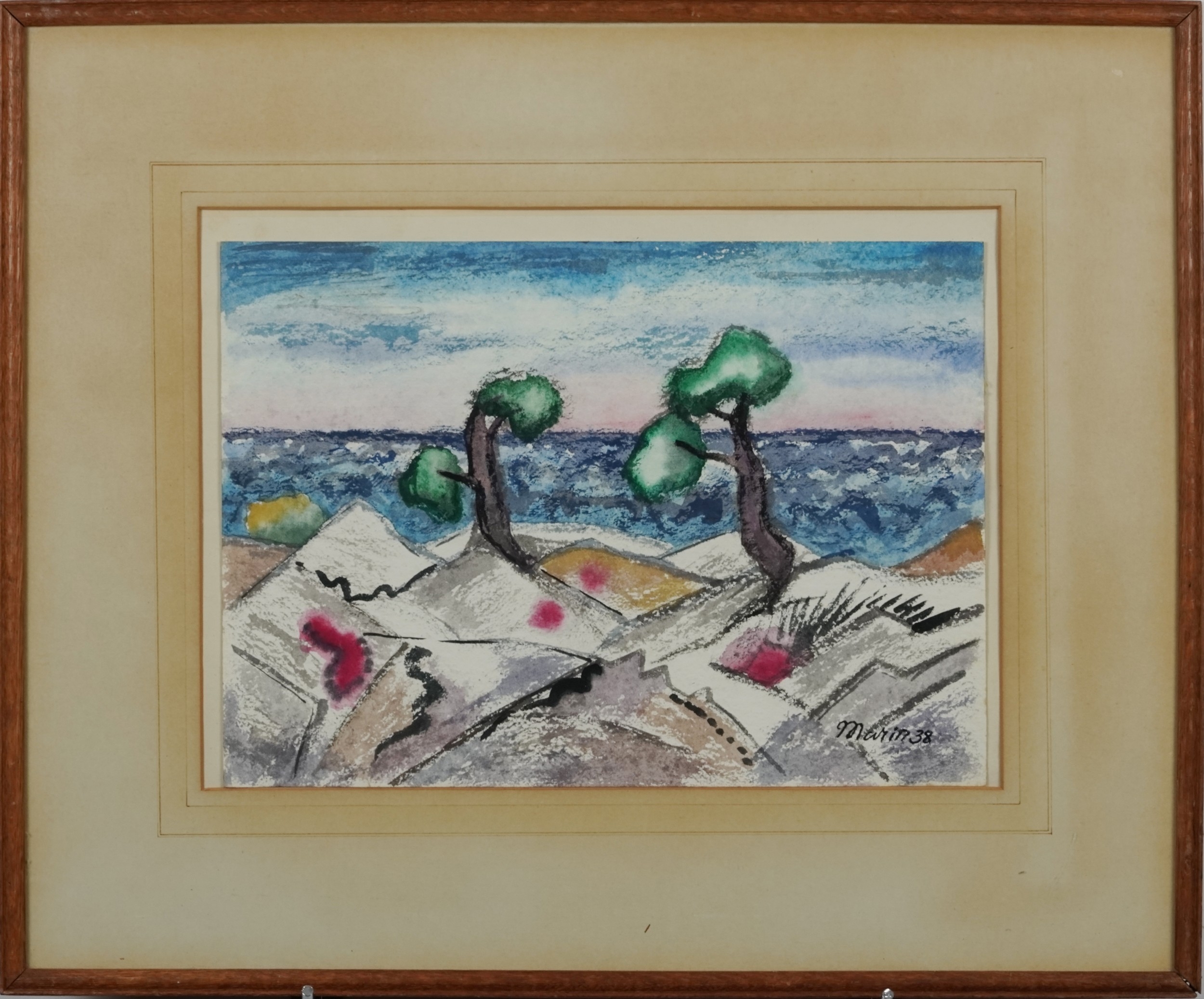 After Martin Benka - Surrealist landscape, mid 20th century continental school pastels on paper, signed and dated '38, framed and glazed, 27cm x 38cm.
