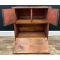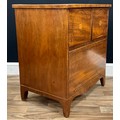 A mahogany inlaid secretaire cabinet, crossbanded top above two cupboard doors with floral inlay design, drop front cupboard, shaped apron with bracket feet, 70.5cm high, 63.5cm wide, 44cm deep