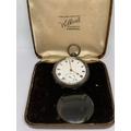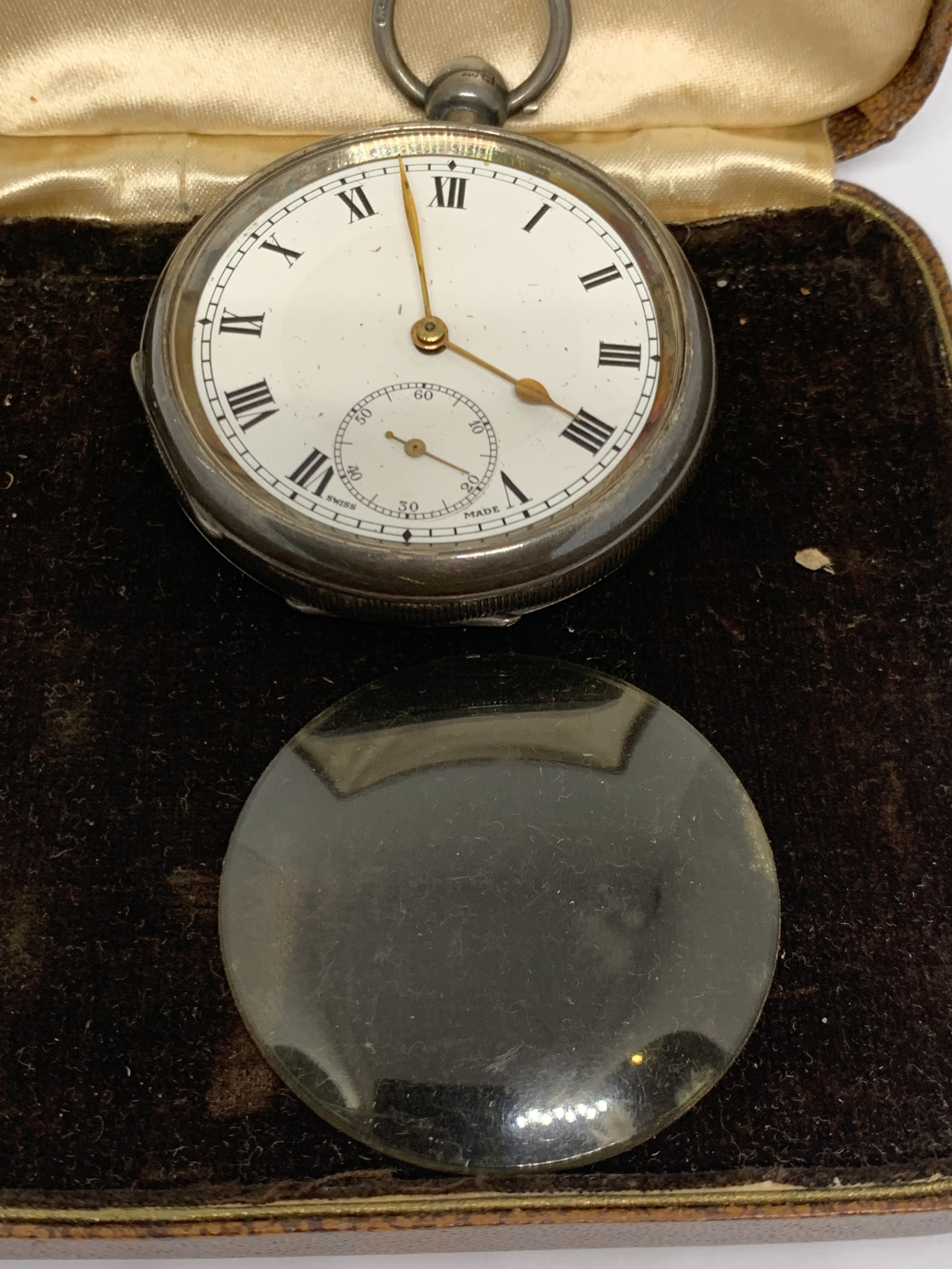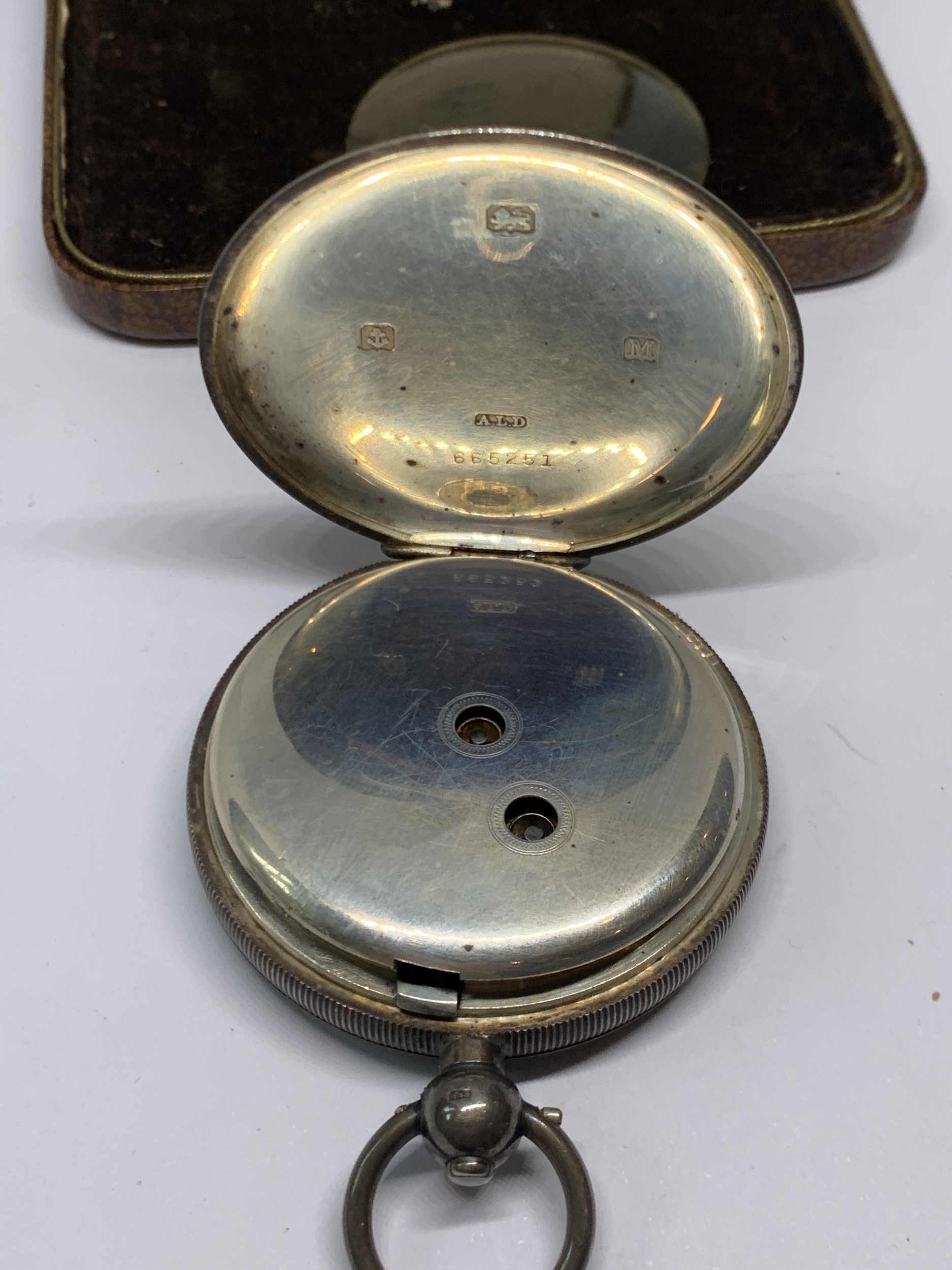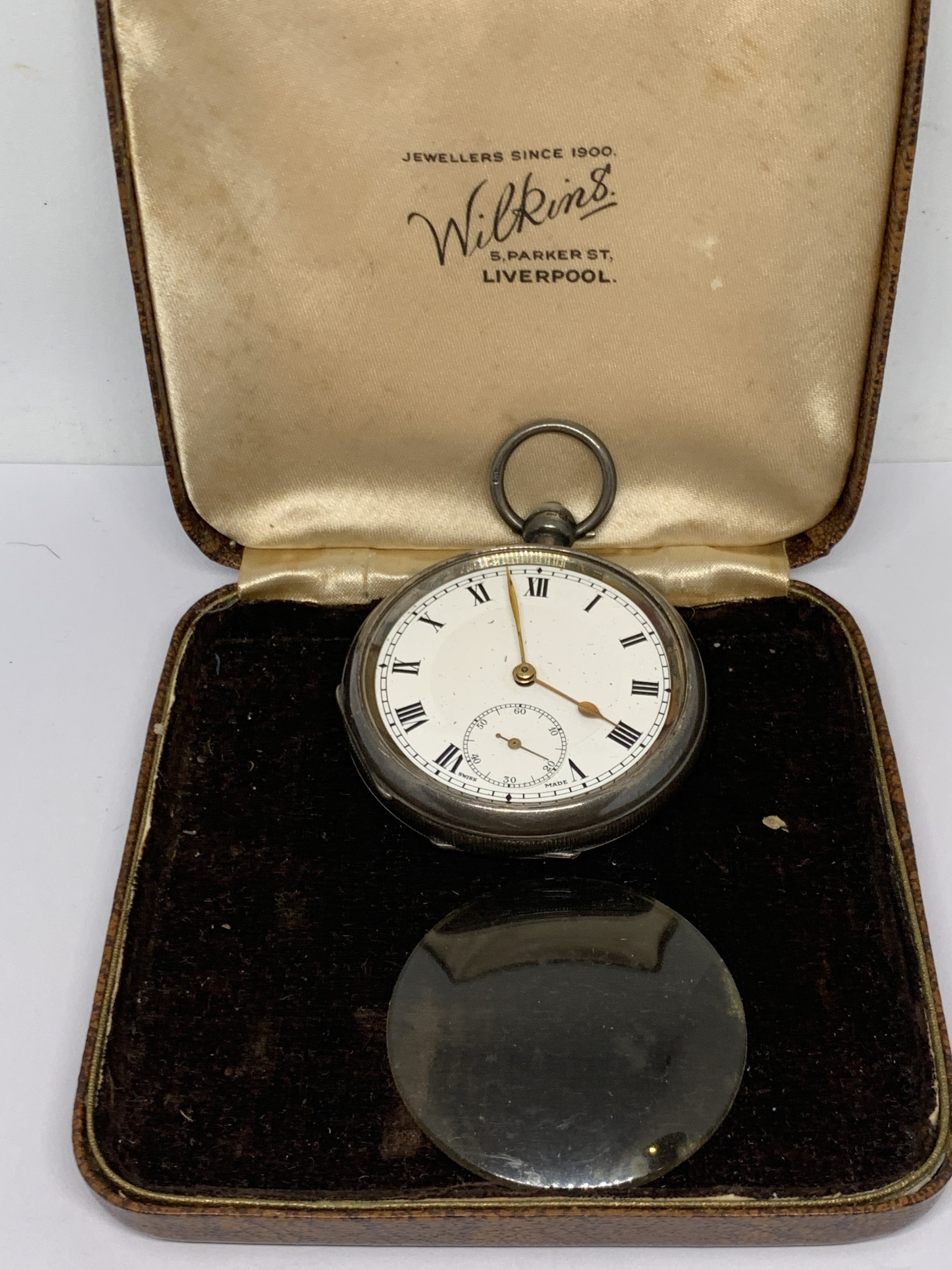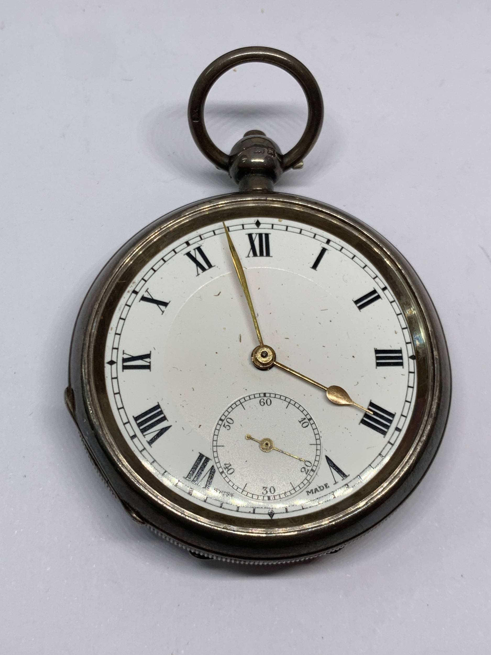 A HALLMARKED BIRMINGHAM SILVER POCKET WATCH WITH WHITE ENAMEL FACE, SUB DIAL AND ROMAN NUMERALS