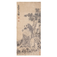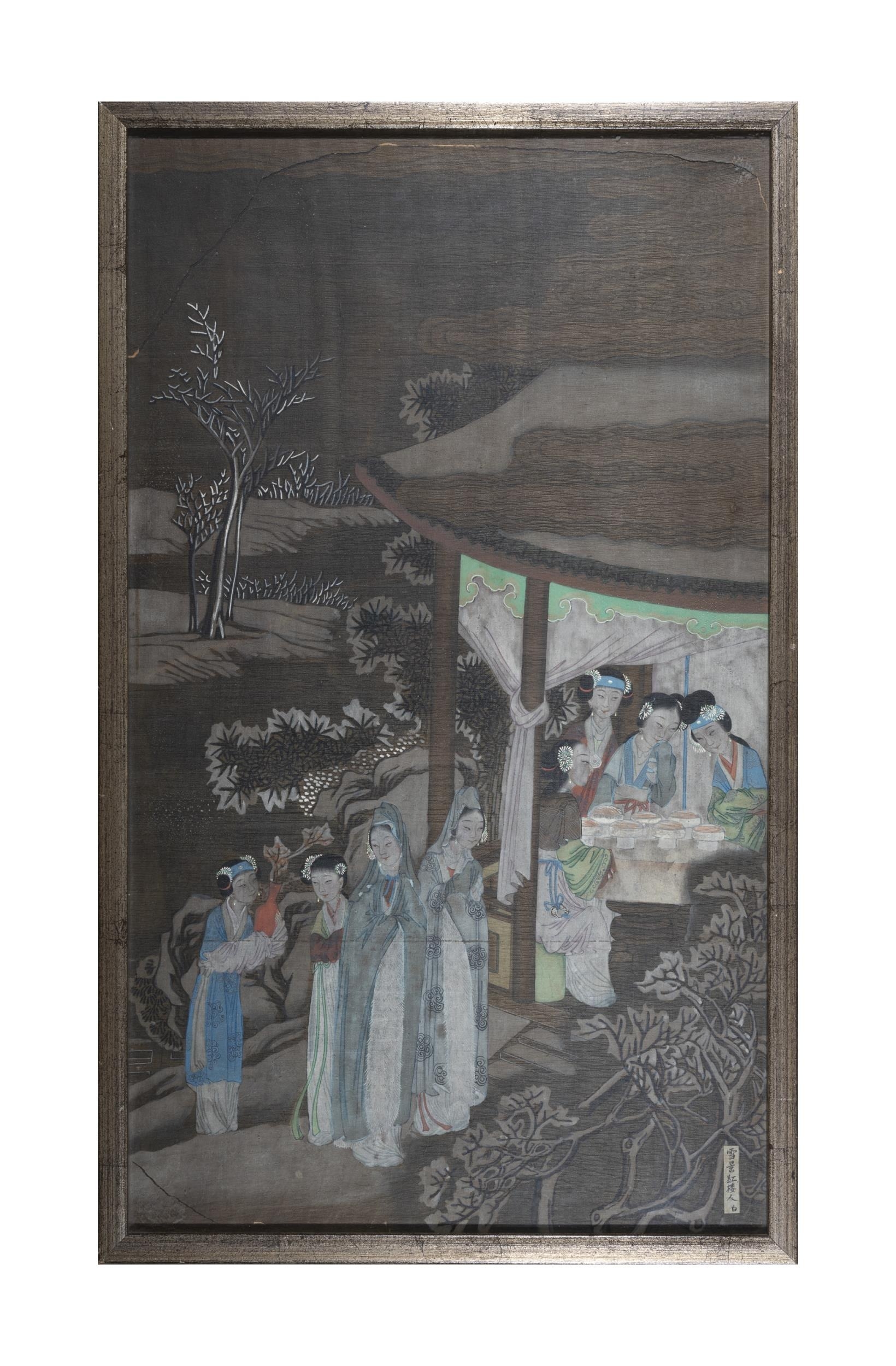 A FRAMED COLOURS ON SILK PAINTING WITH FIGURES 20??? ?????? '??????'? China, 20th century Size: 68.5 x 39.8cm