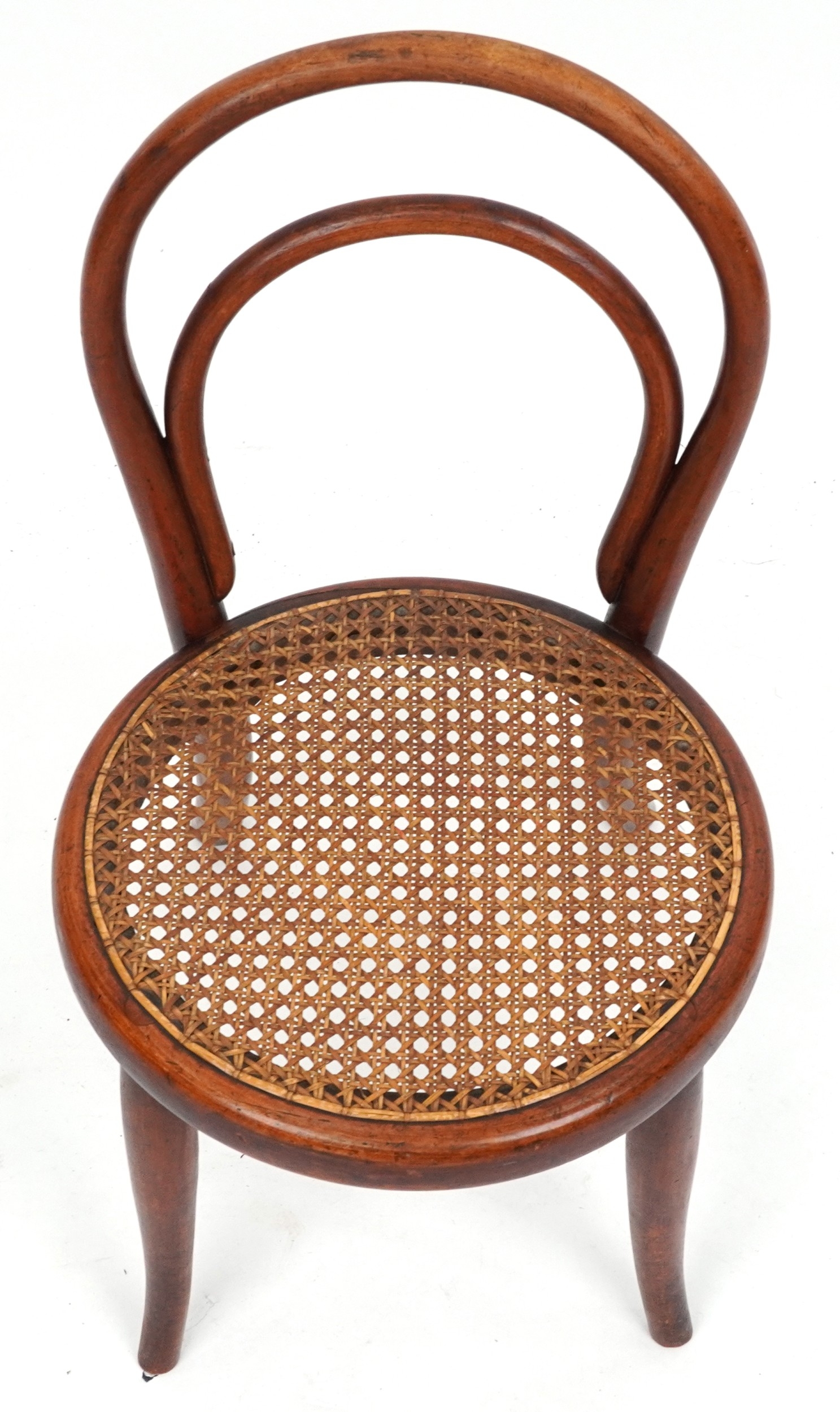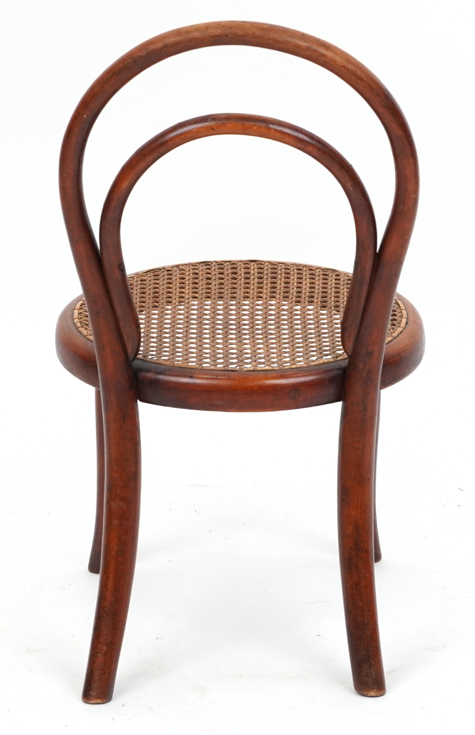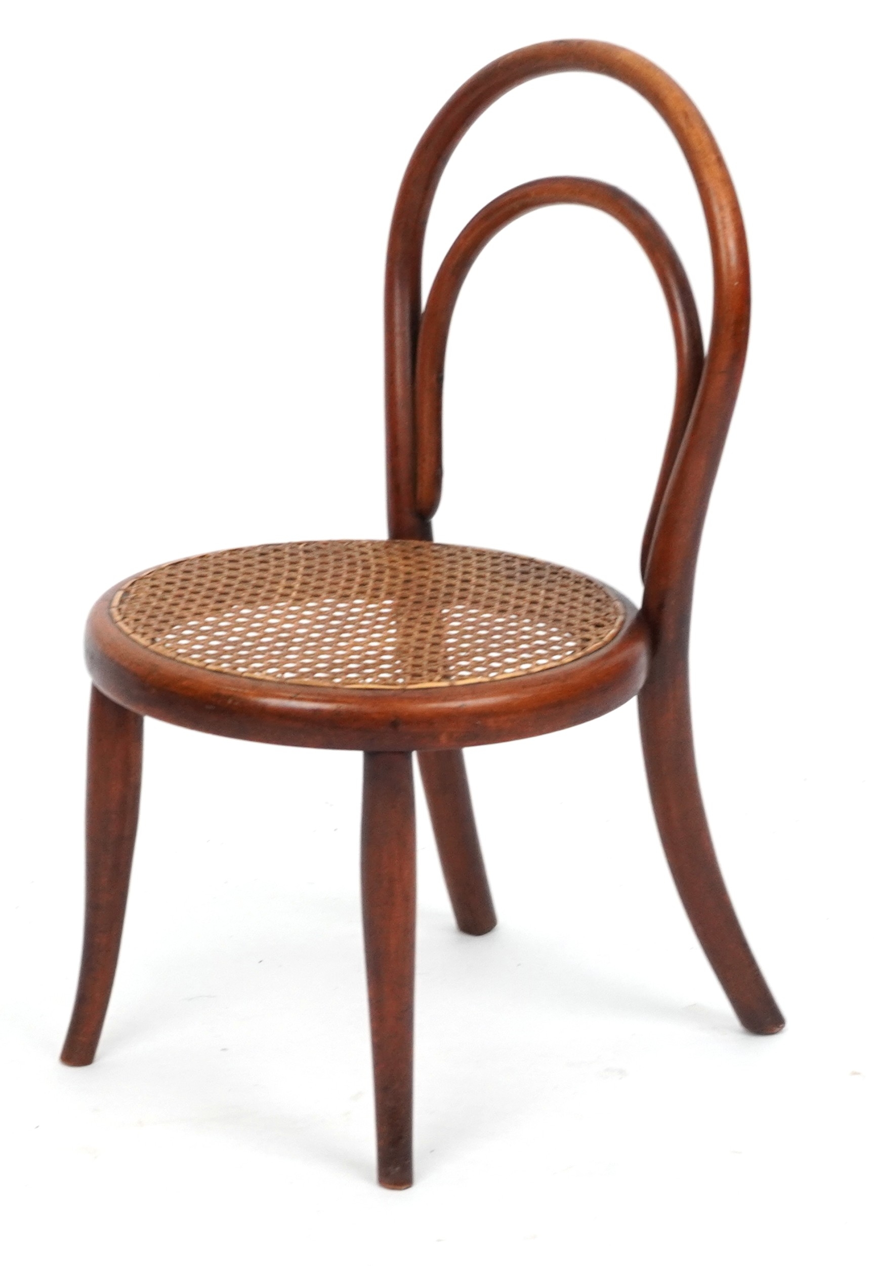 An early 20th century child's bentwood chair by Thonet, the cane seat raised on tapering legs, 59cm high x 32cm wide.