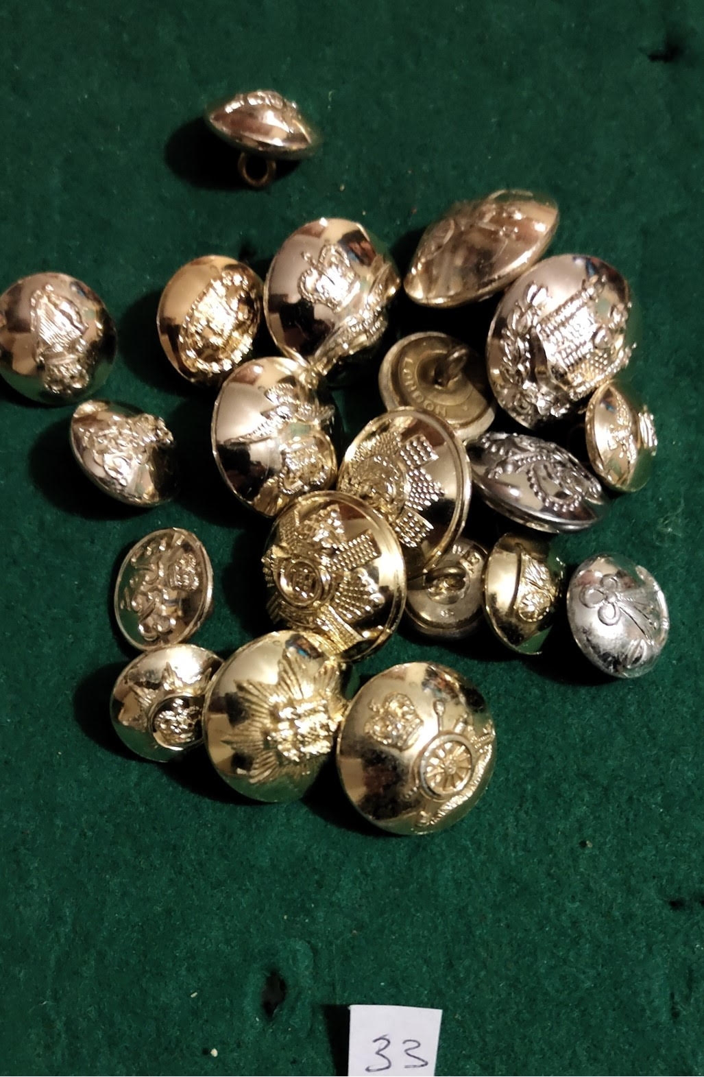 British Anodised Military Buttons (20):- Leicestershire Regt, Norfolk Regt, Royal Scots, East Anglian Regt etc. A good lot