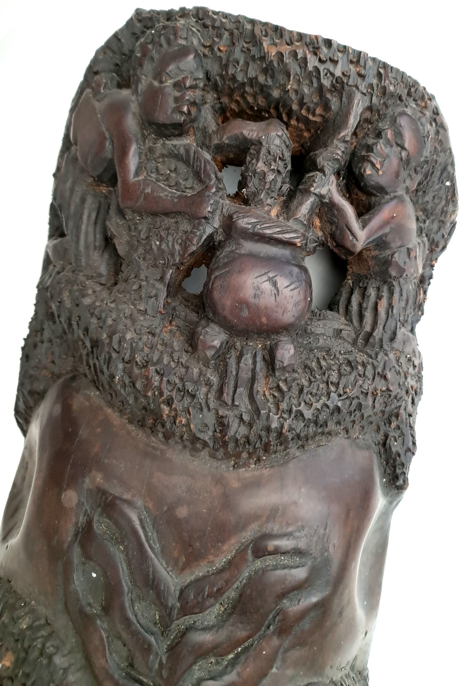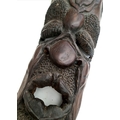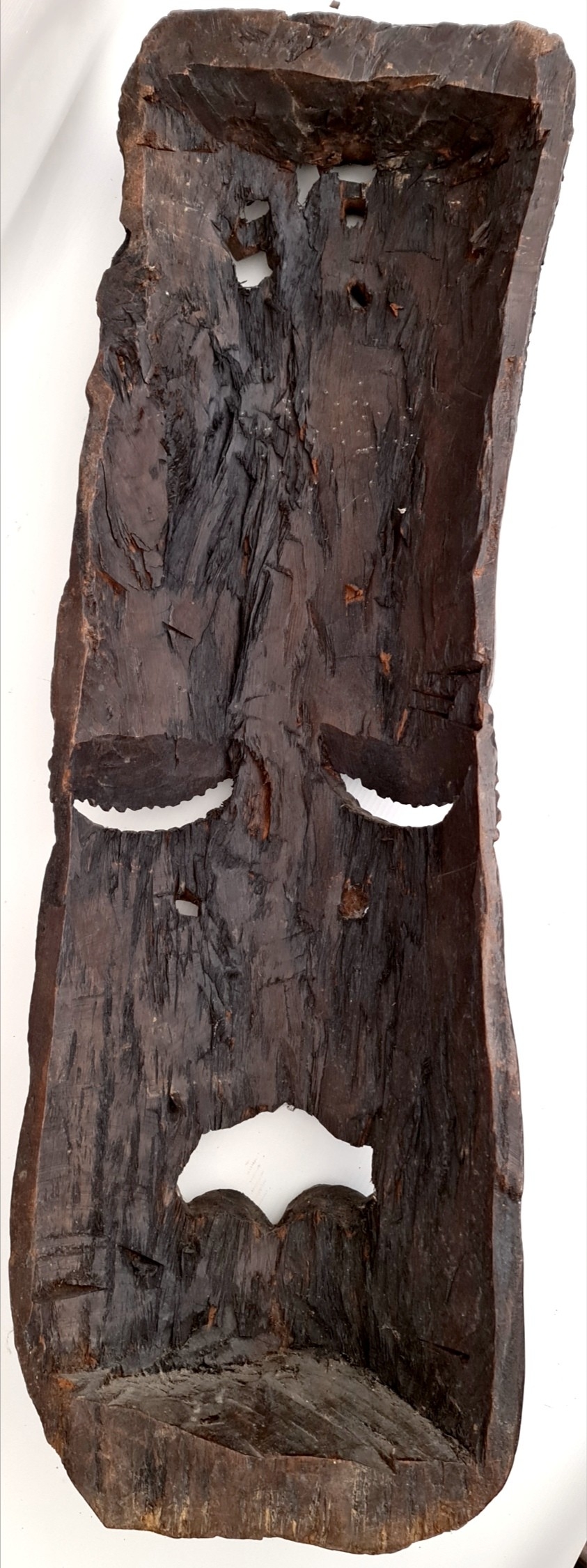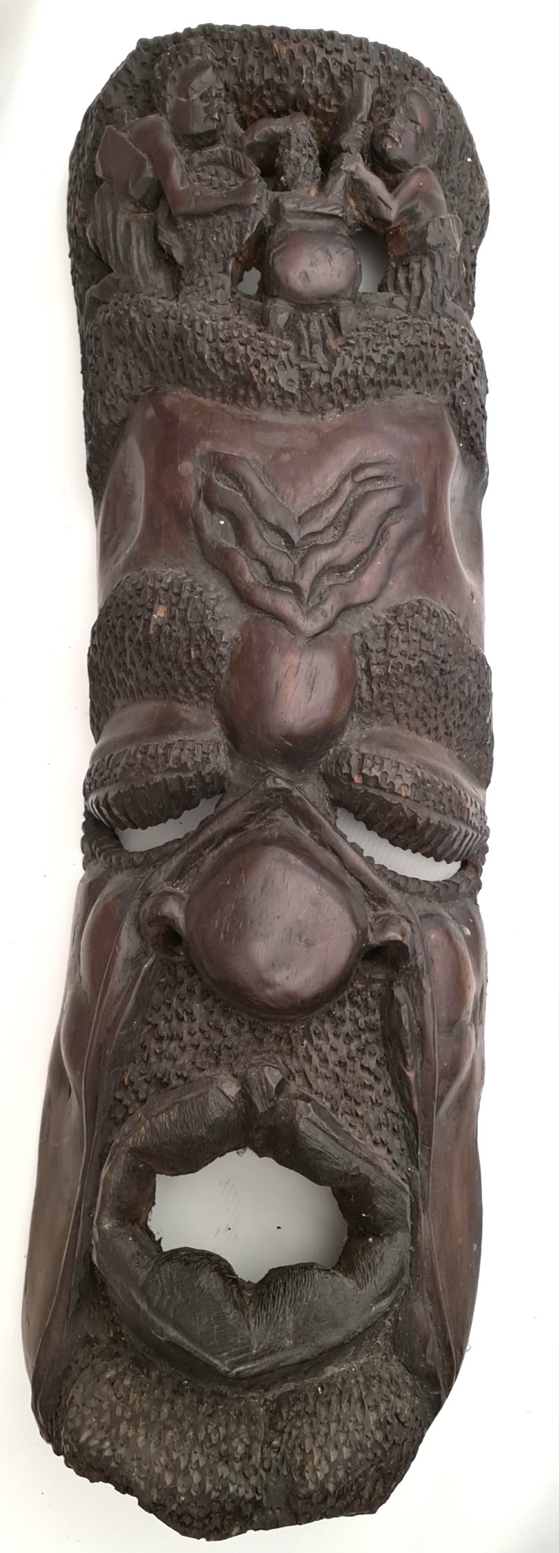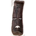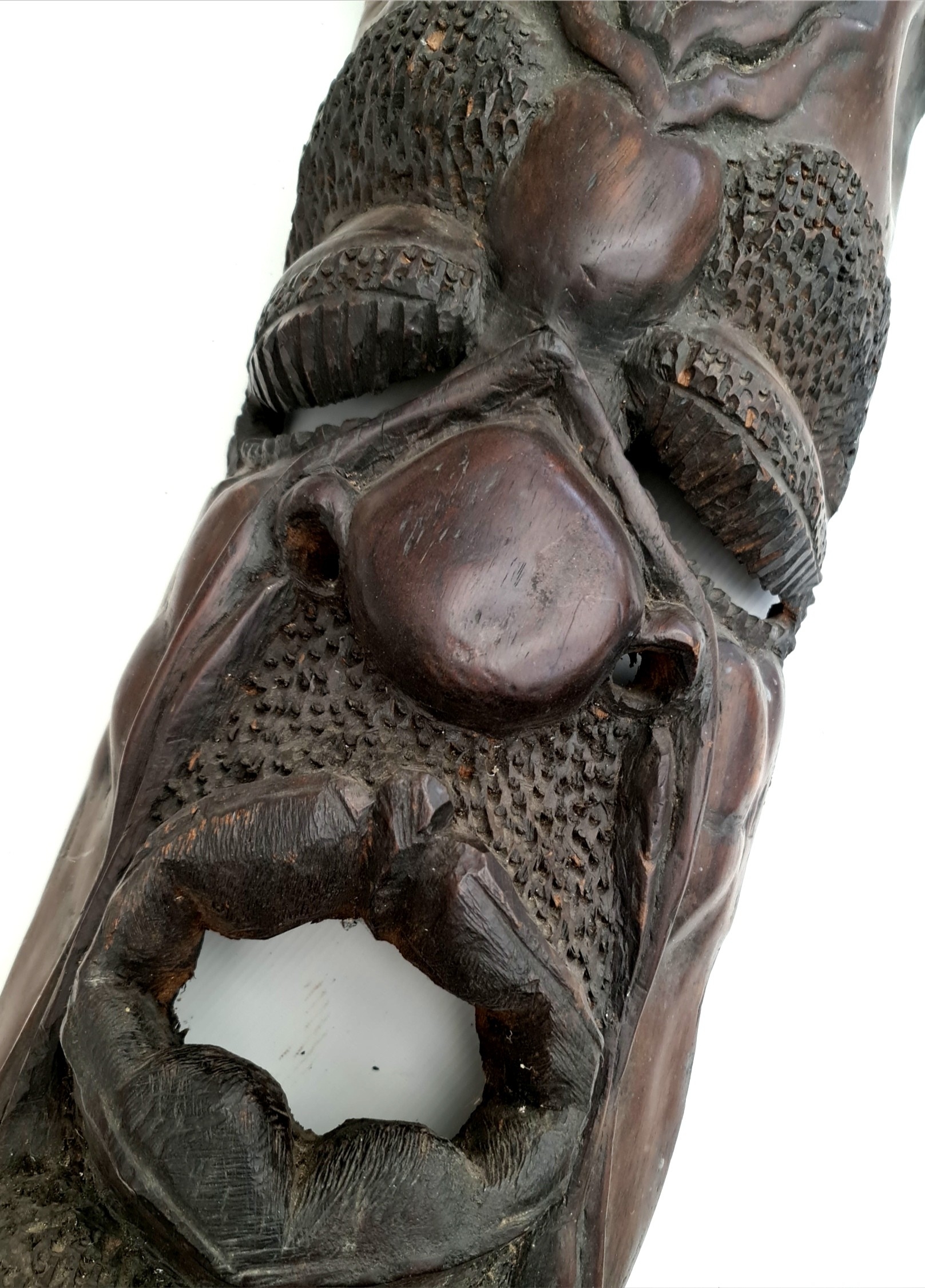 Antiques African Sculptured Agaba Grotesque Face Mask 30 inches Tall. With carved baboon or other monkey on the crown. Measures 30 inches tall by 10 inches wide. Carved from a hollowed out part tree trunk. Shipping is available. Please ask for a quote before bidding. Where possible we combine shipping costs. Remember, if you are the highest bidder above reserve on this Lot you have bought the item and are legally responsible for the item. Viewing is recommended in either person or via video link. Contact us to arrange.