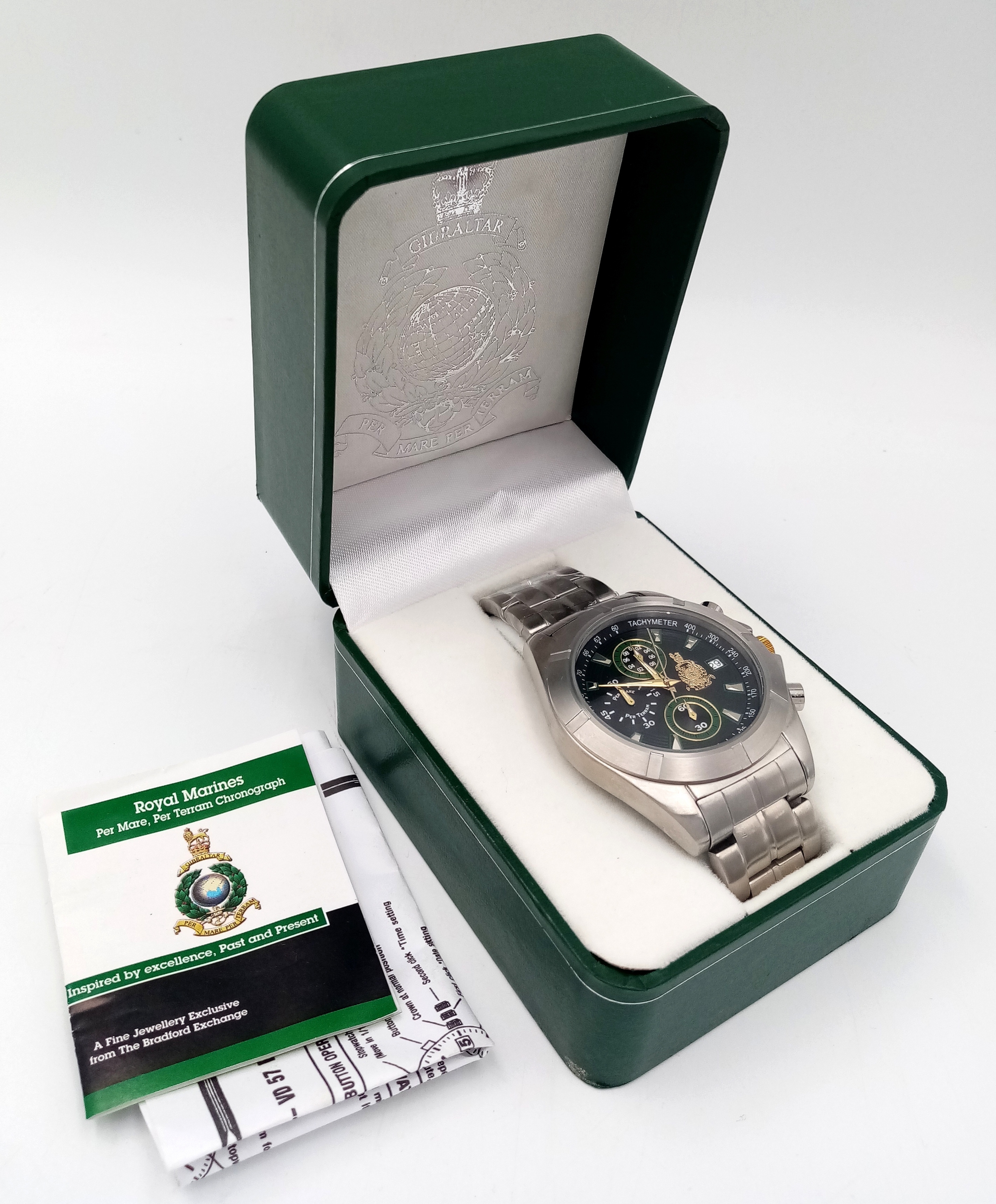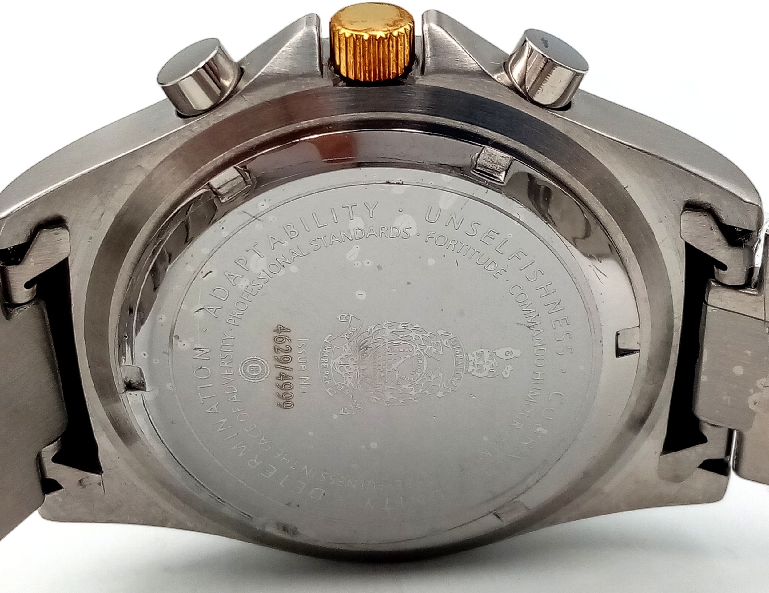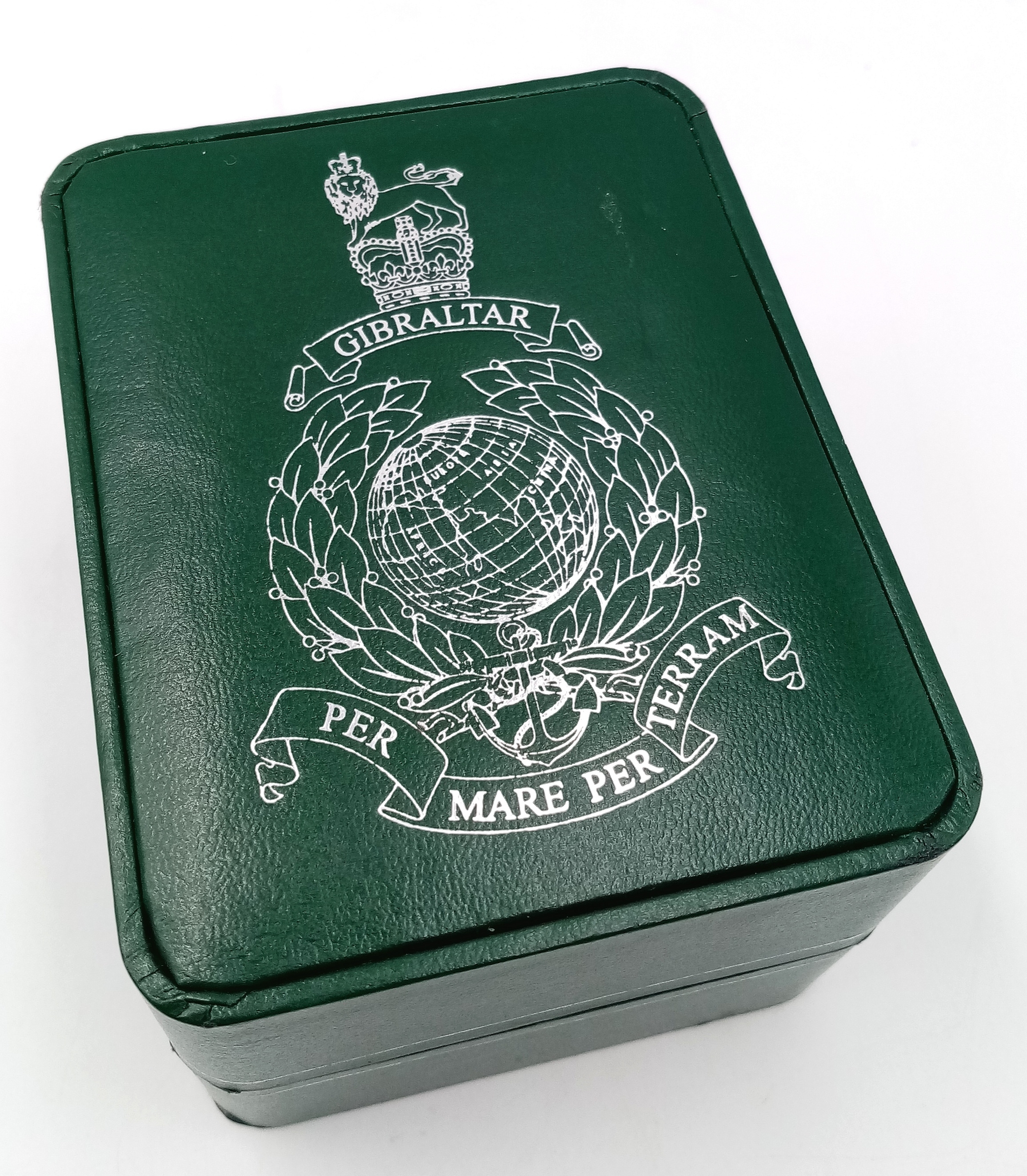 A Rare and Collectible, Limited Edition Royal Navy Royal Marines Commando Watch-45mm Case width including crown. As produced by the Bradford Exchange in Collaboration with the Royal Navy. Limited to 4999 pieces worldwide. This watch is no. 4629. New battery fitted November 2025. Complete with Certificate of Authenticity, Instructions and Original Box.