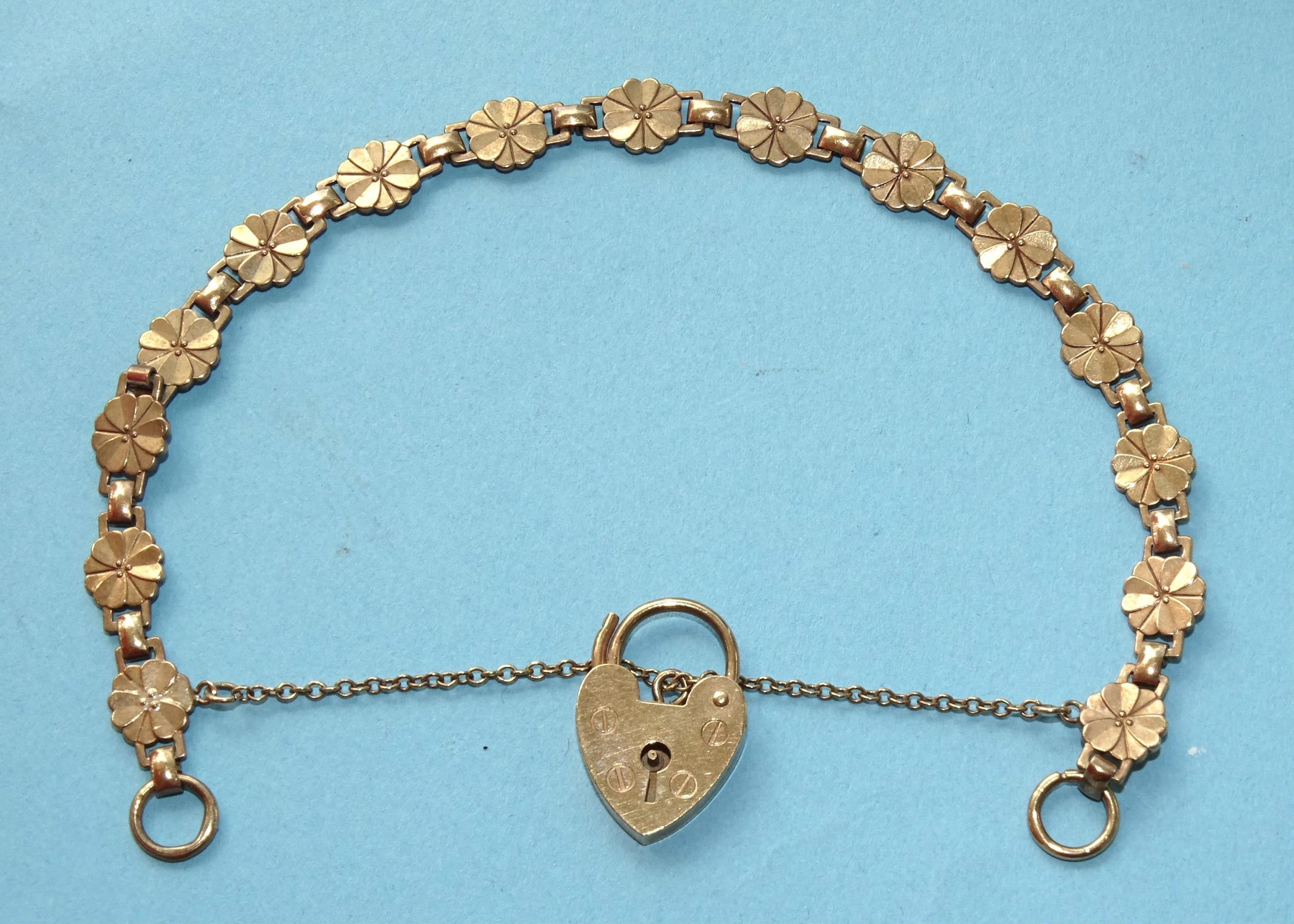 A 9ct gold bracelet with padlock clasp, 19cm, 8.2g.