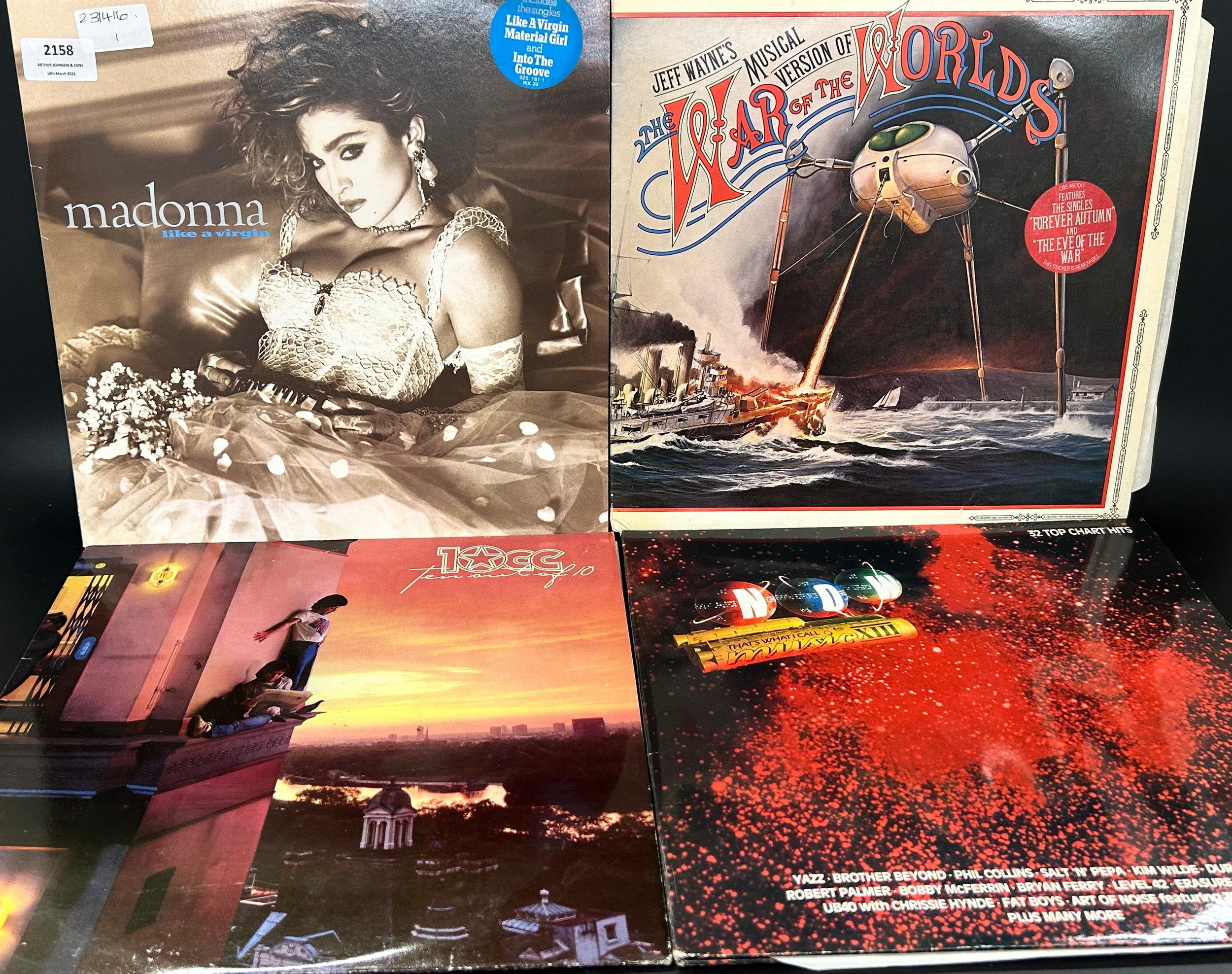 A collection of fifteen vinyl LPs mainly from the 1980s - Madonna, 10cc, Dire Straits