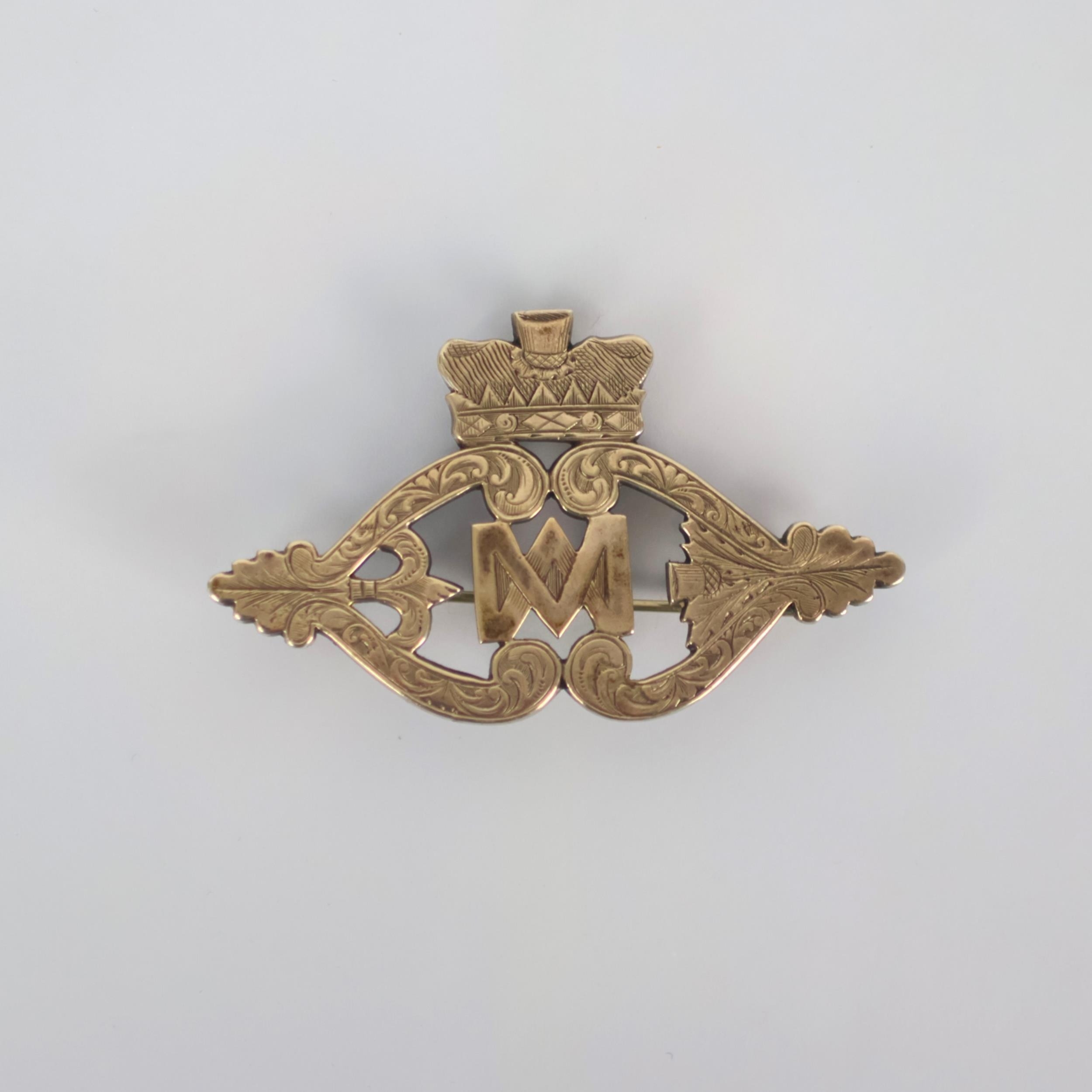 A 19th century Scottish ‘Lukenbooth’ style brooch, the white metal brooch with stylised double heart, surmounted with coronet and detailed with thistle and foliage, 7cm wide, unmarked, 18gms