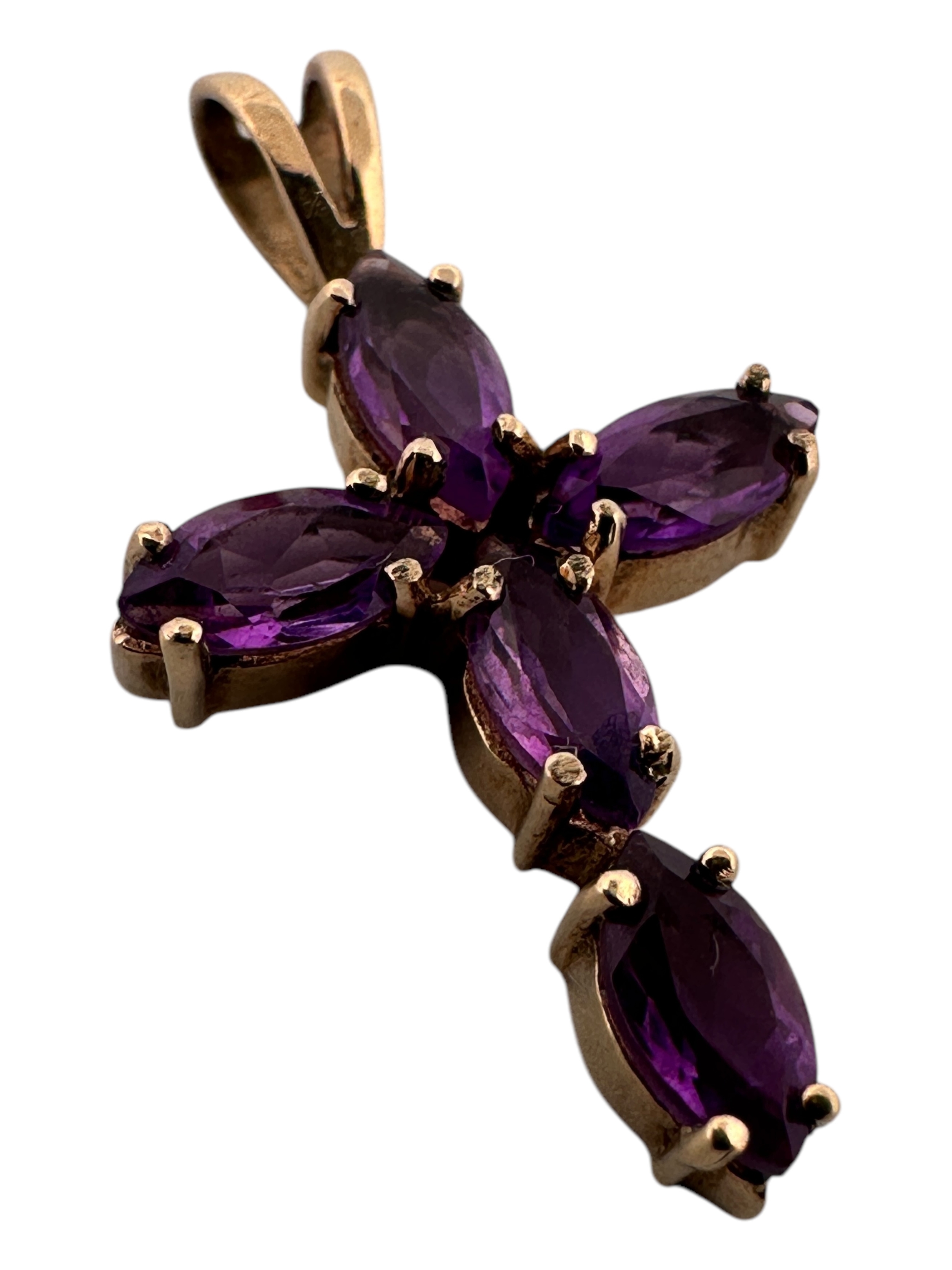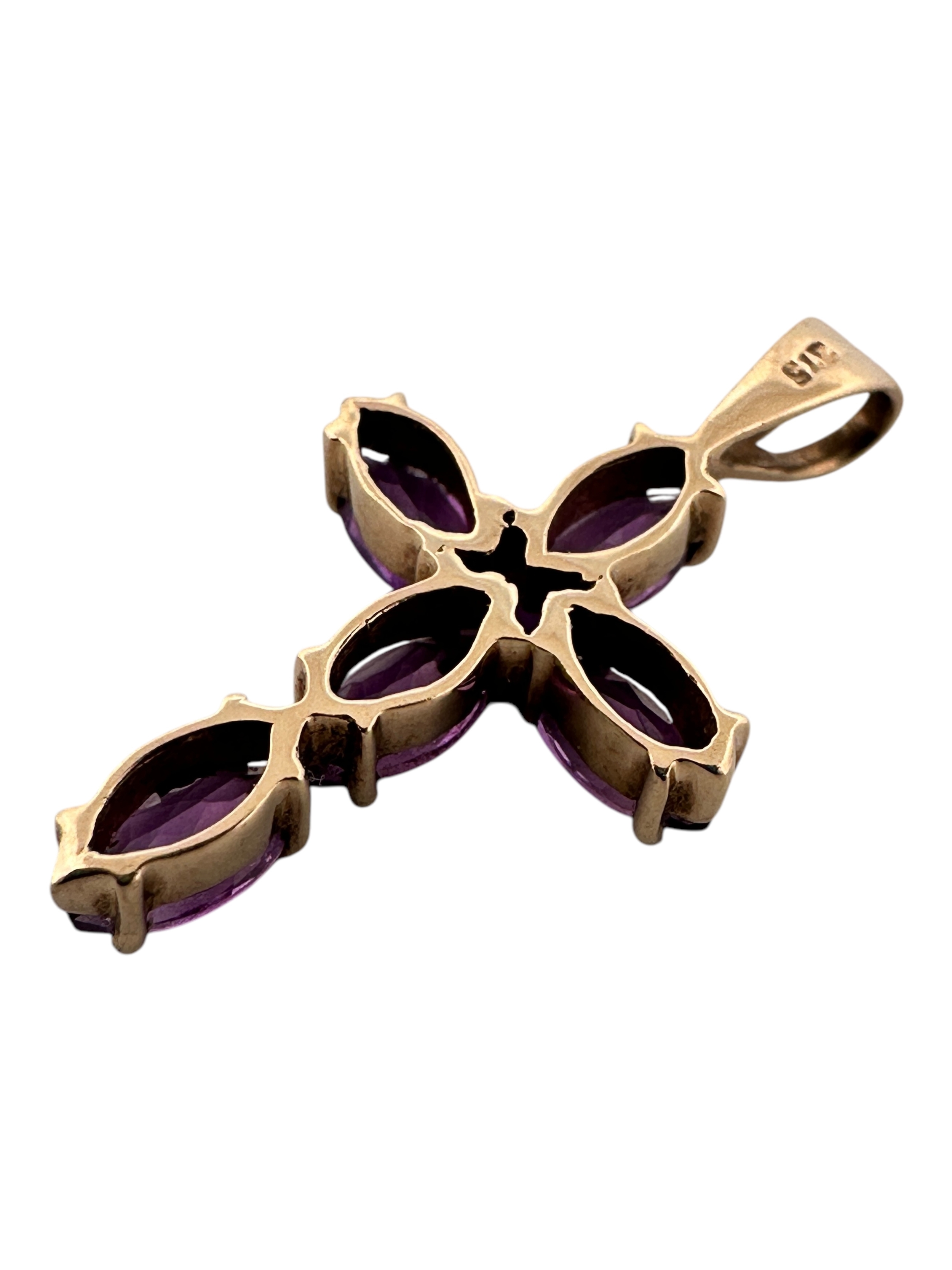 Nine Carat Gold and Amethyst Cross Pendant. Stamped 375, 1.3g