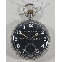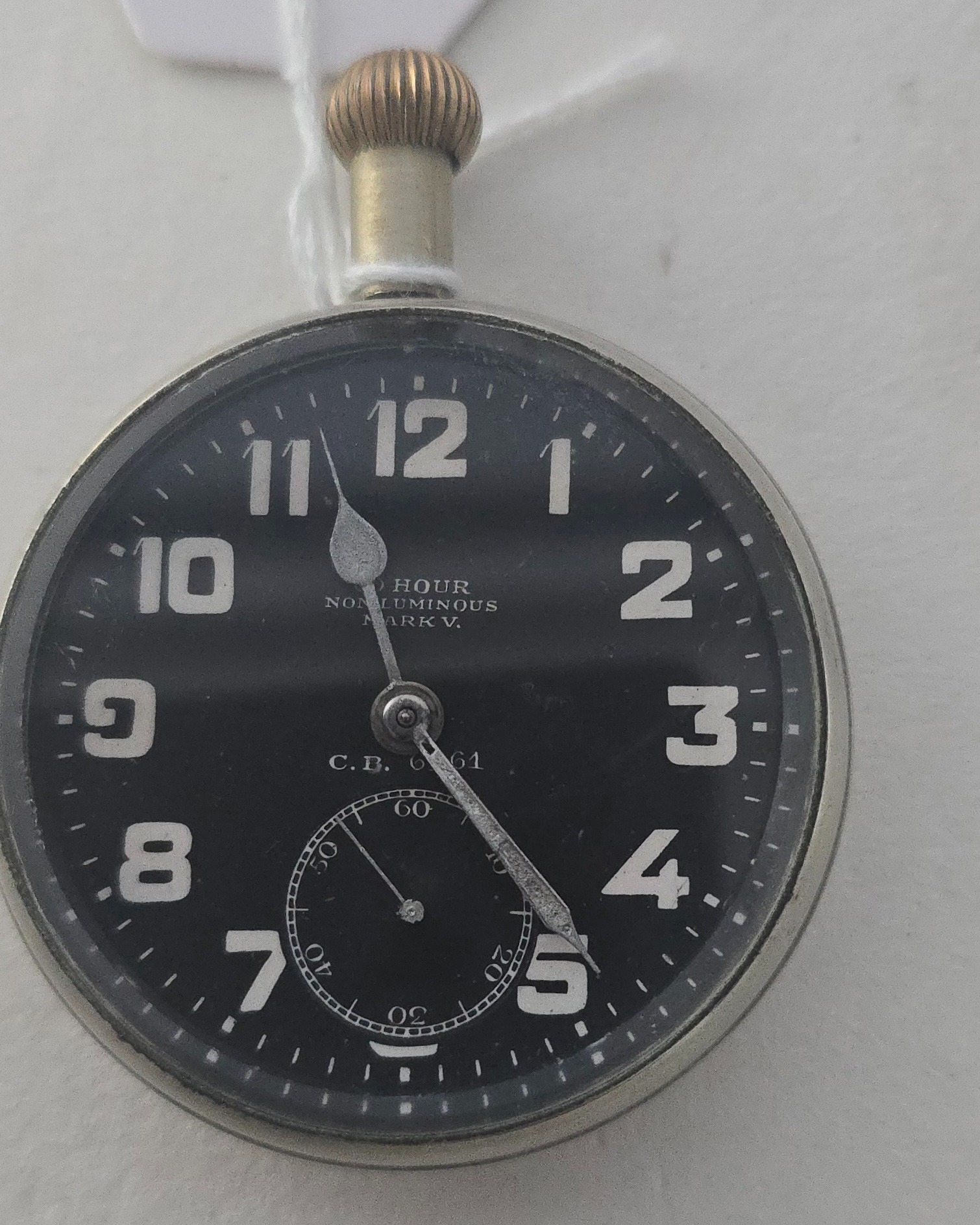 A WWI R.F.C. 30 hour Mark V Cockpit Watch with black dial, the back marked "A/broad arrow", GWO&C.