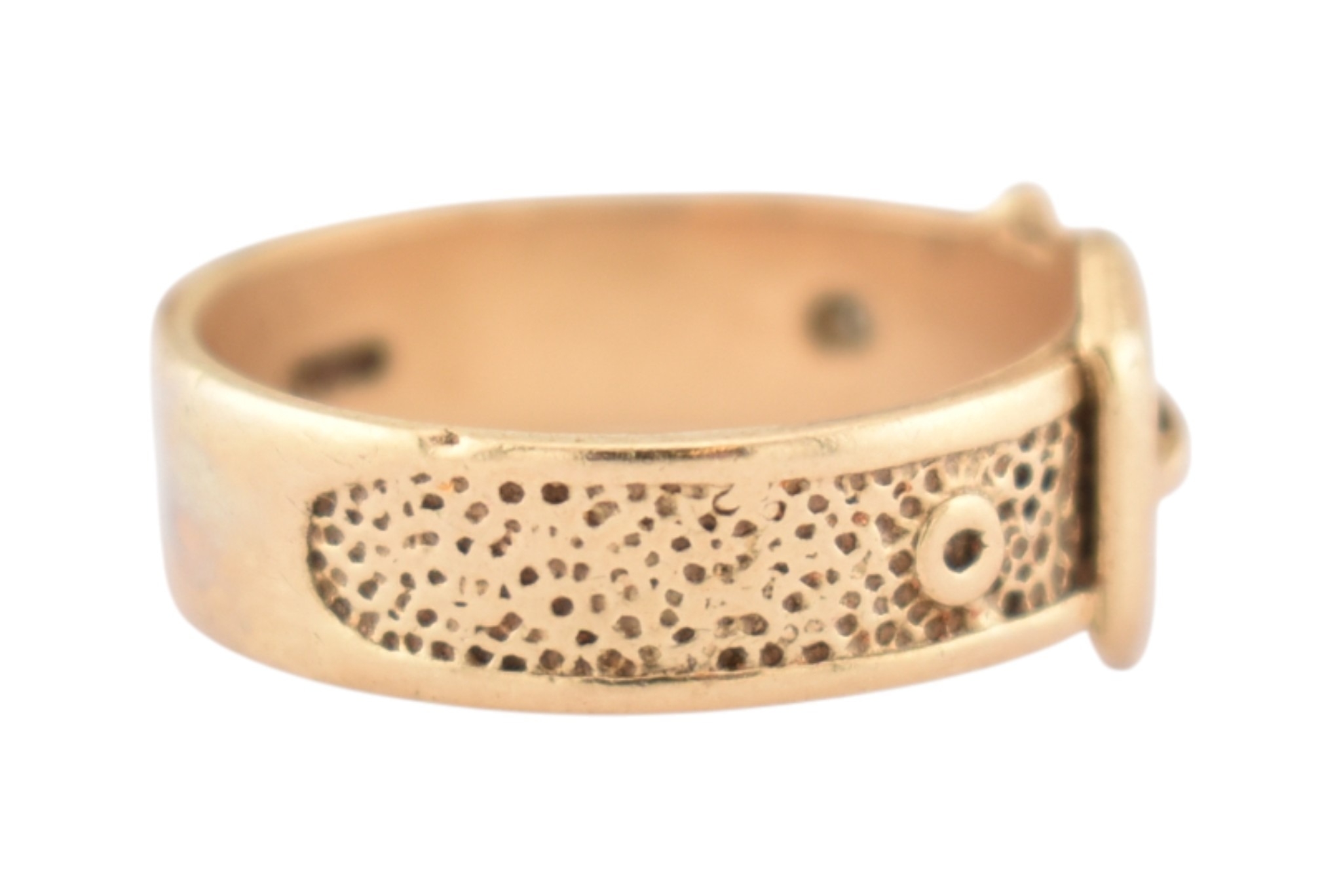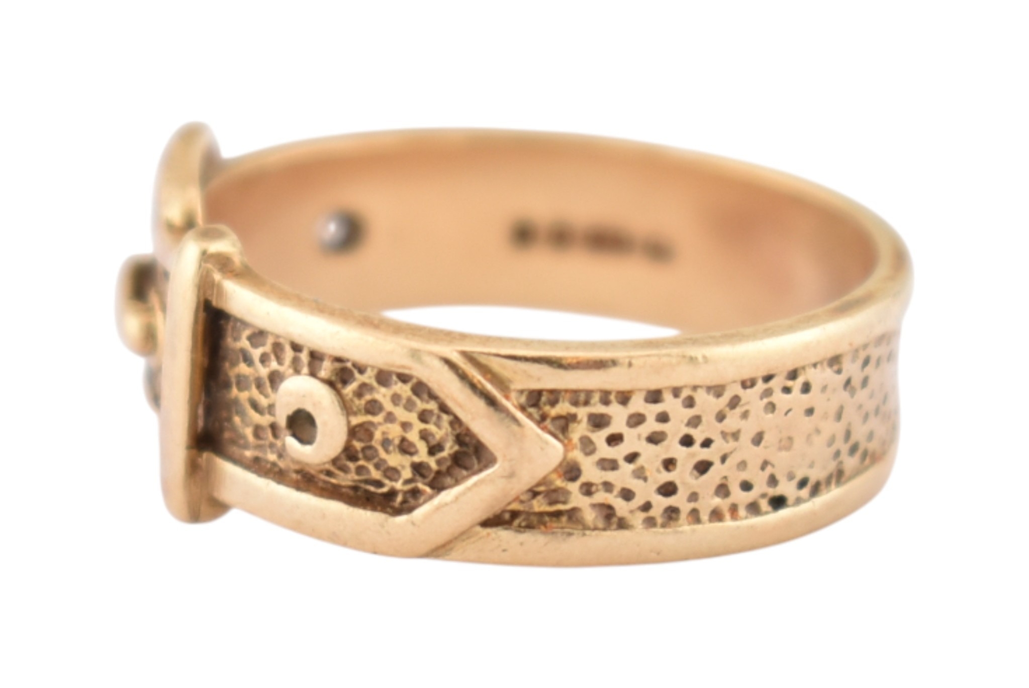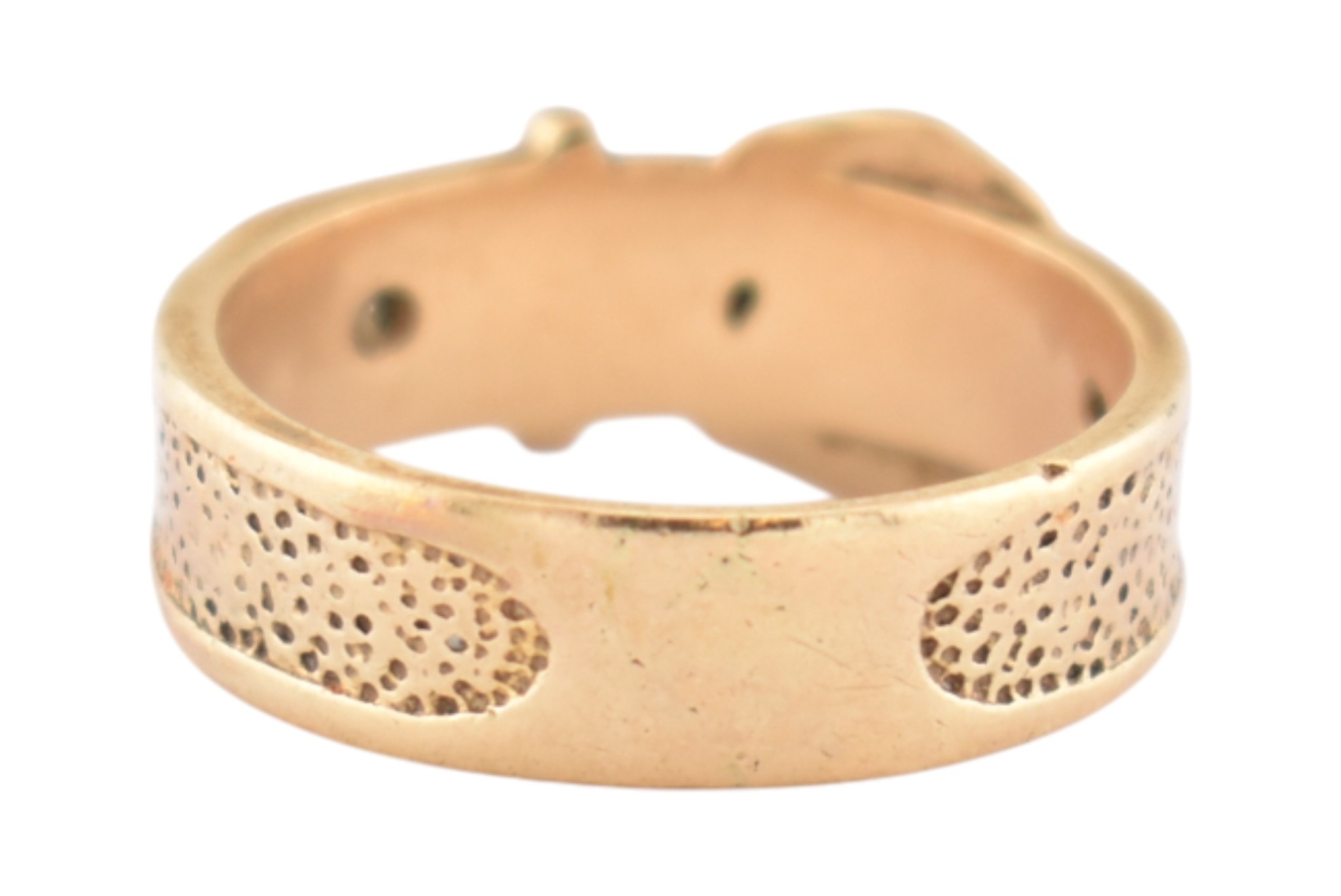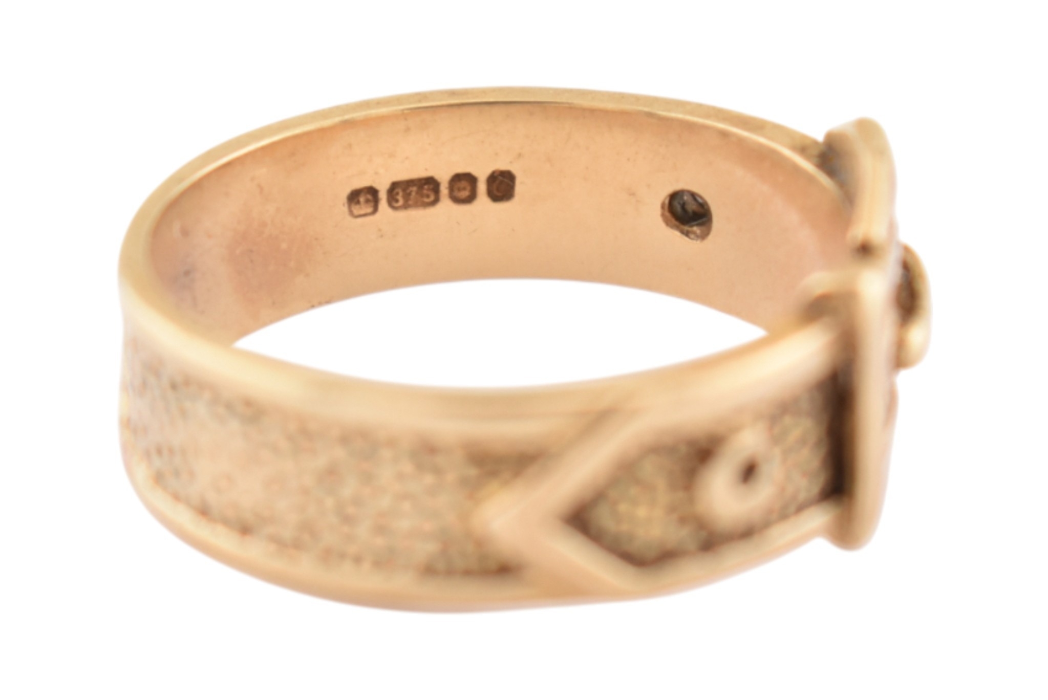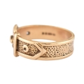 A hallmarked 9ct gold buckle ring. Hallmarked London, sponsors mark T&GJ. Weight 4.8g