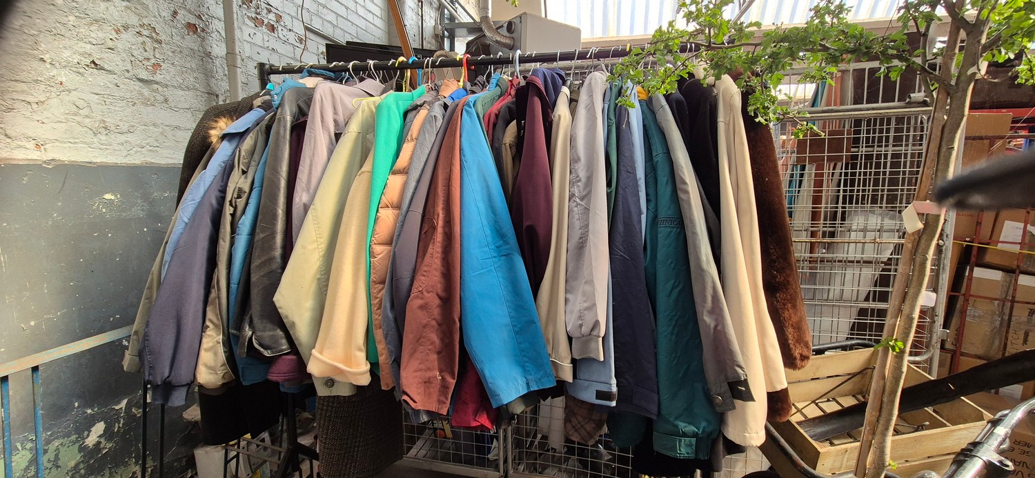 A rack of clothing, mainly outdoor jackets - appx 40 items