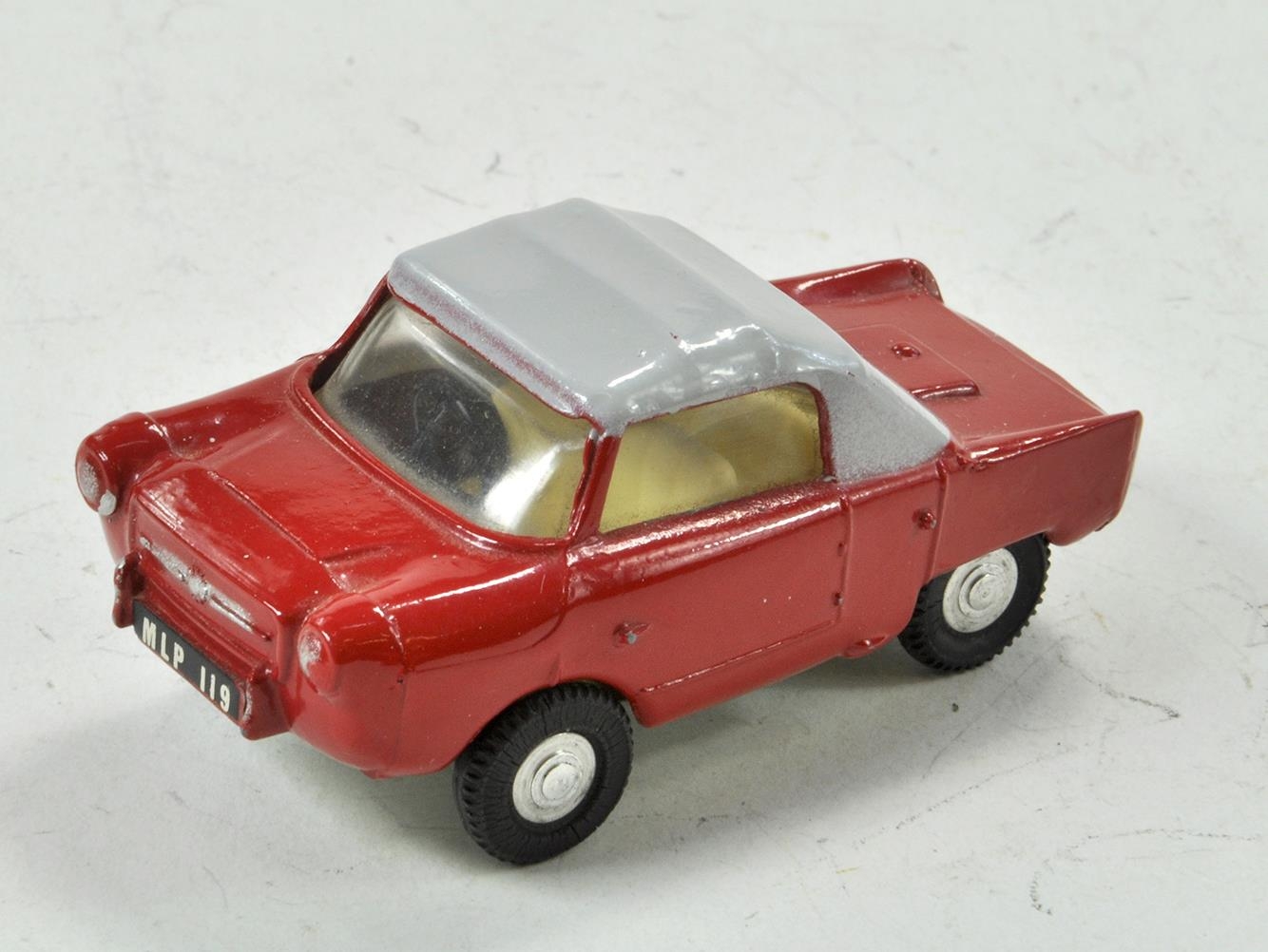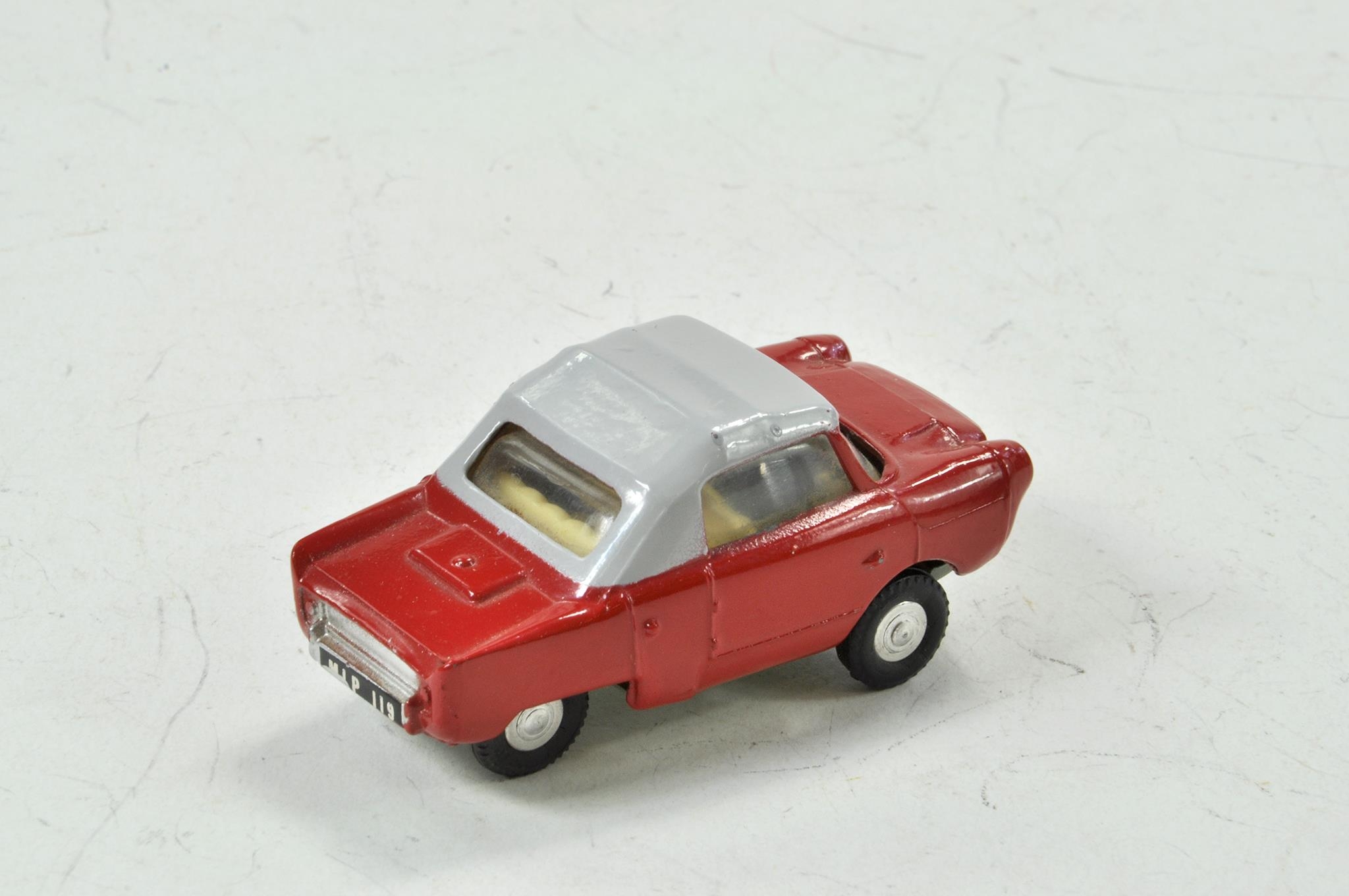 Tri-ang Spot-on No 119 Meadows Frisky Sport. Red body with light grey roof. Cream interior with black steering wheel. Spun hubs. Excellent condition with little or no marks present.