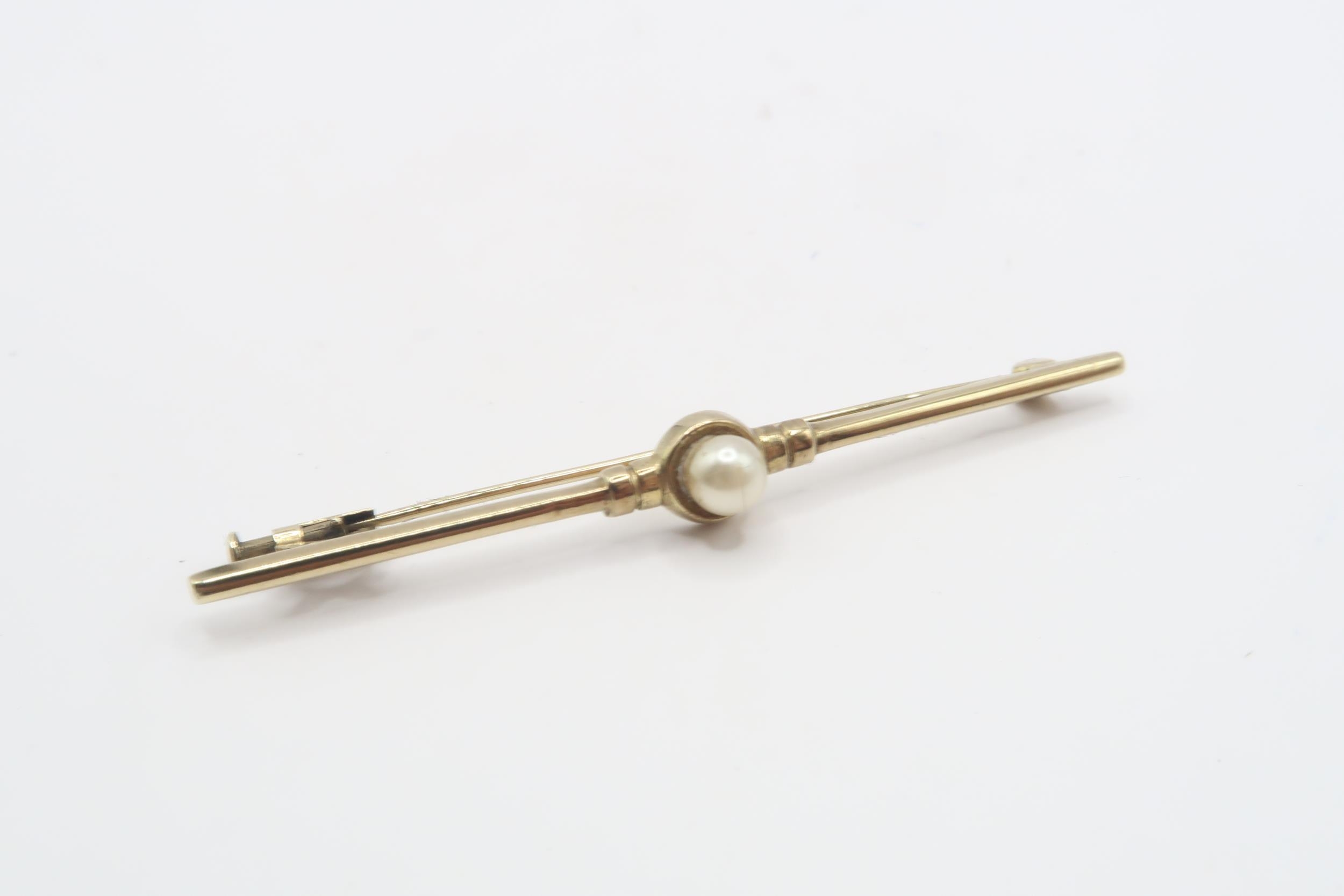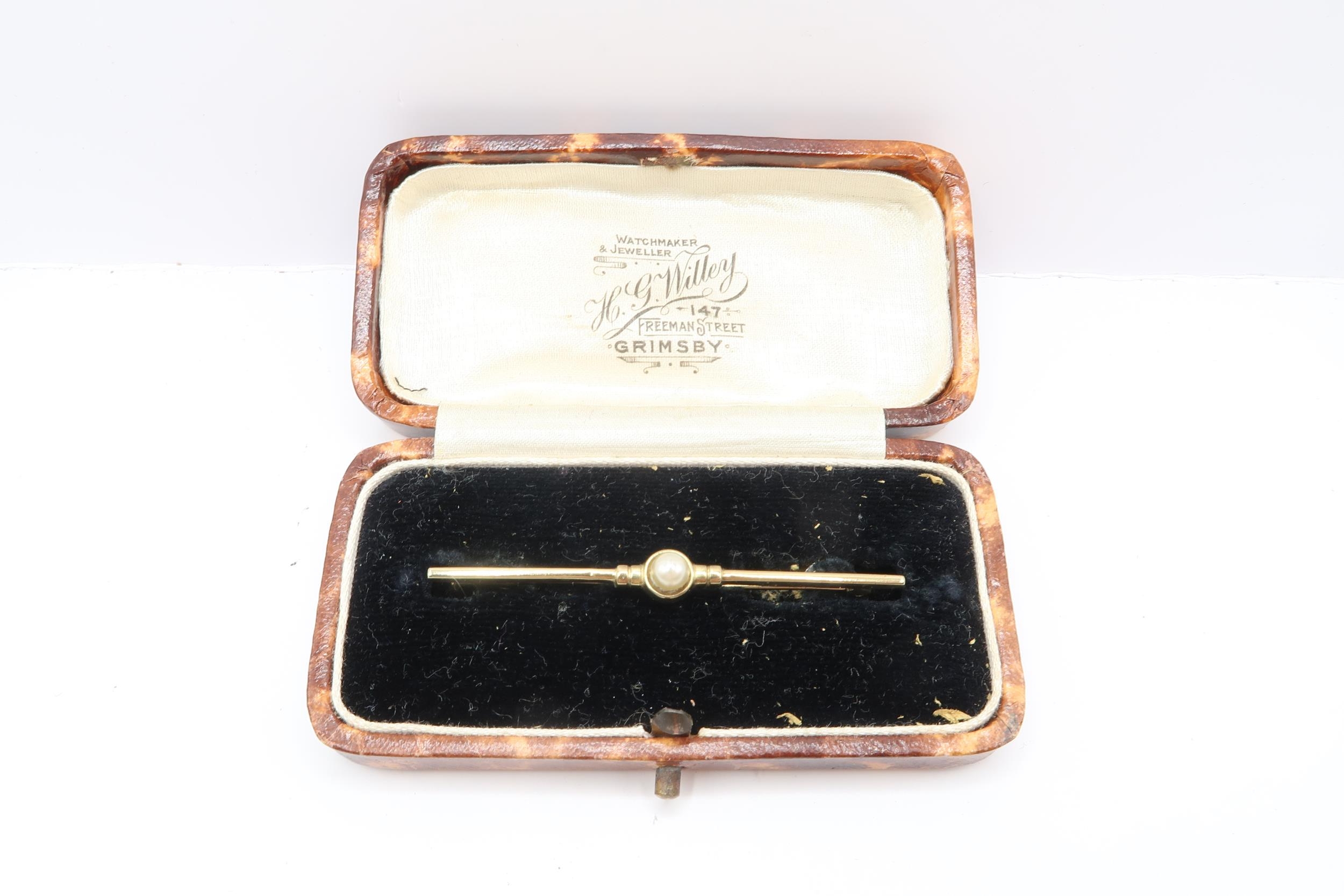 An Edwardian 8ct Gold Pearl Brooch Cased, approx. 53mm x 6mm