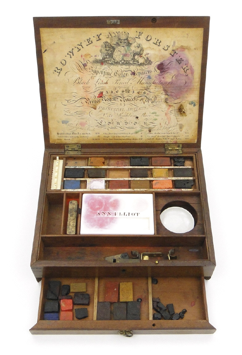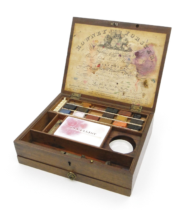 Regency Rowney and Forster mahogany artist's box bearing a label to the interior and fitted with a drawer to the base