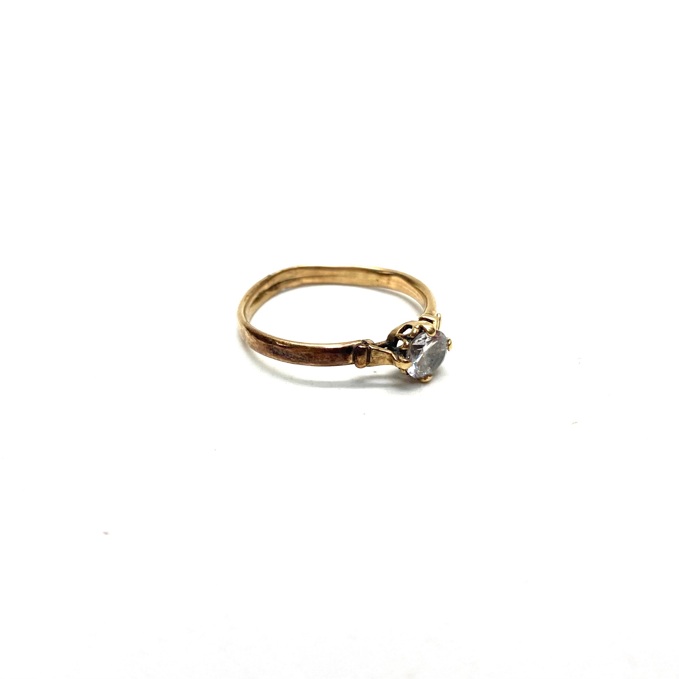 9ct gold ring with CZ stone size O and 1g (Ring resized NHM, TAG)