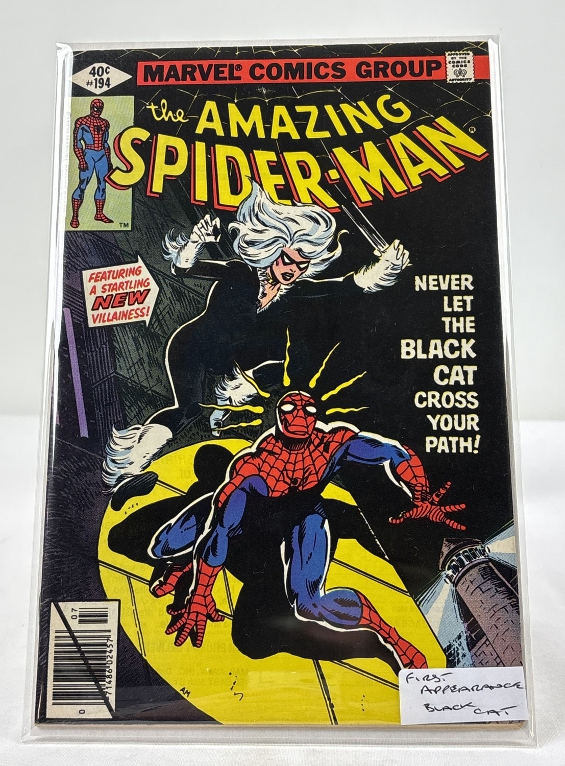 The Amazing Spider-Man #194 from Marvel Comics July 1974, featuring the 1st appearance of 'Black Cat'. Bagged & carded.