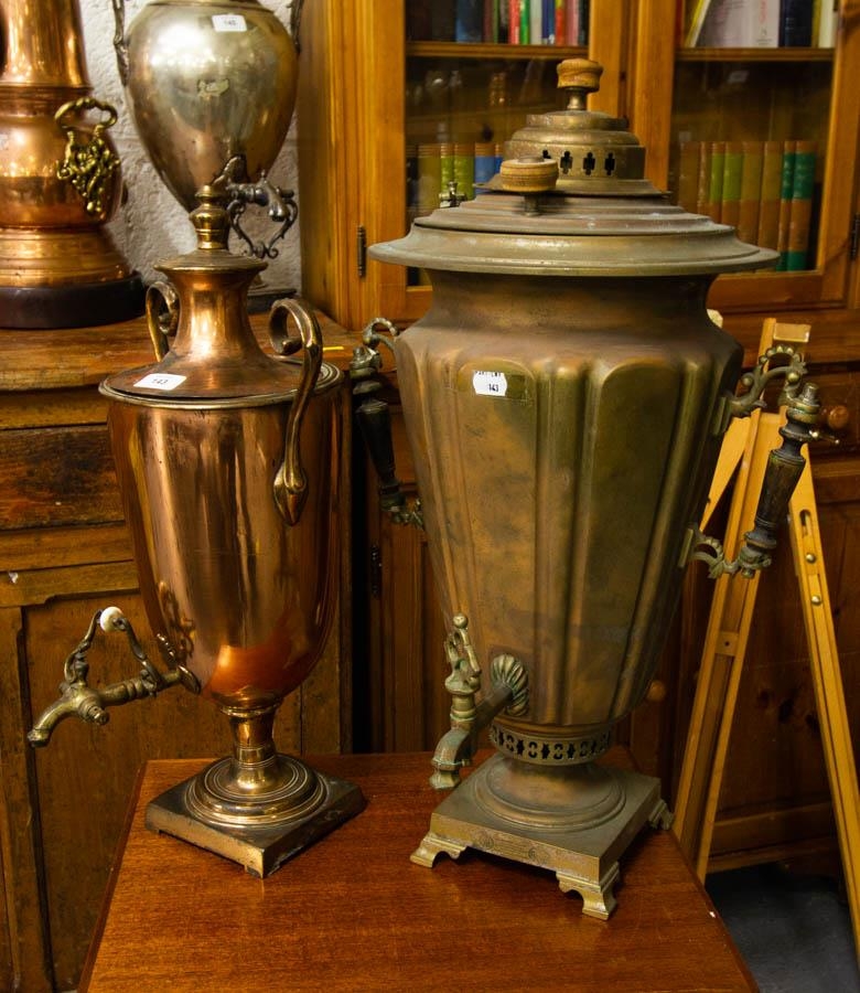 2 COPPER SAMOVARS WITH BRASS TAPS