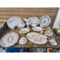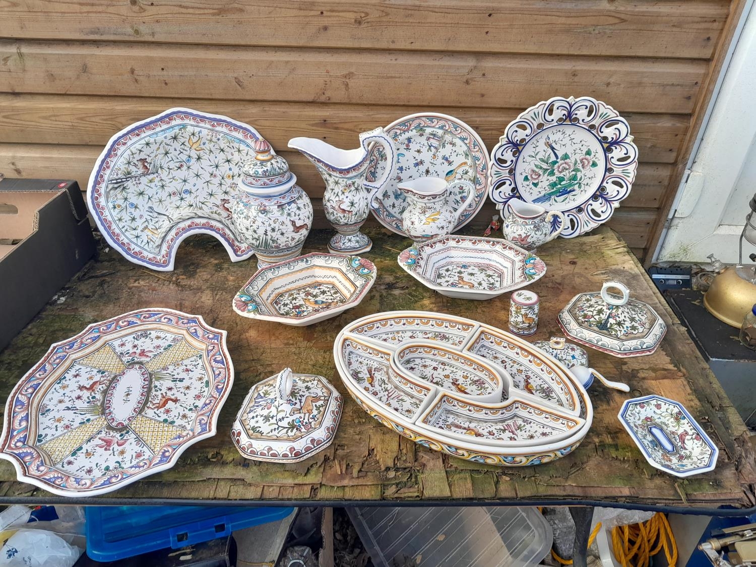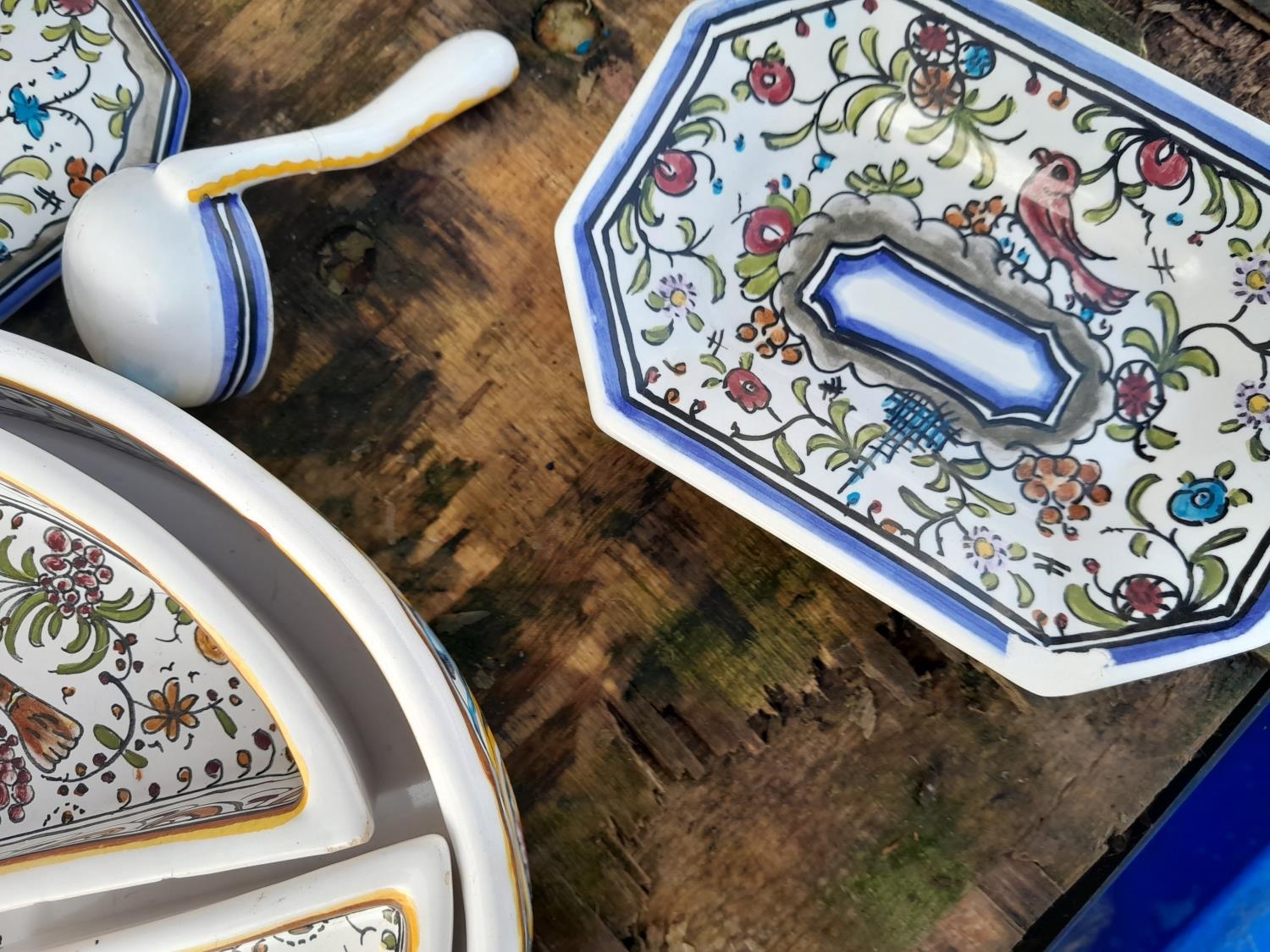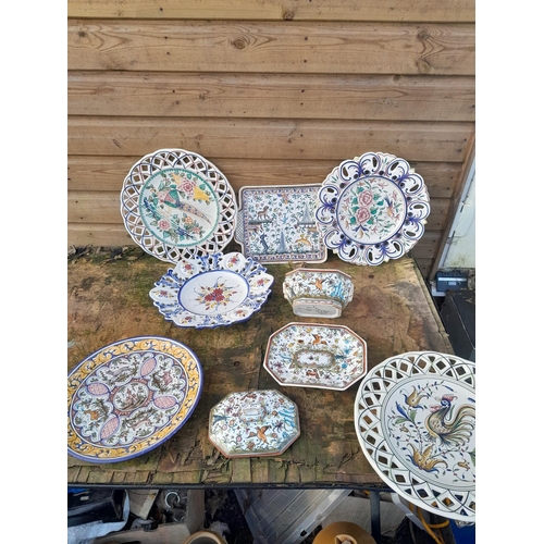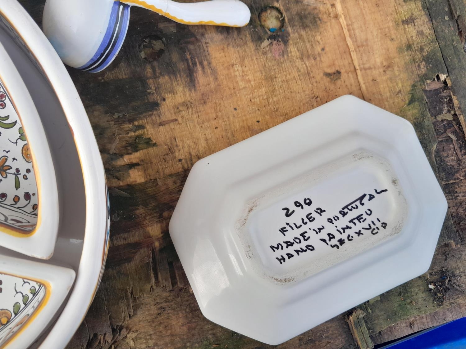 Collection of assorted maker Portuguese Pottery, some with light chips, barbers bowl and entree dishes in good order