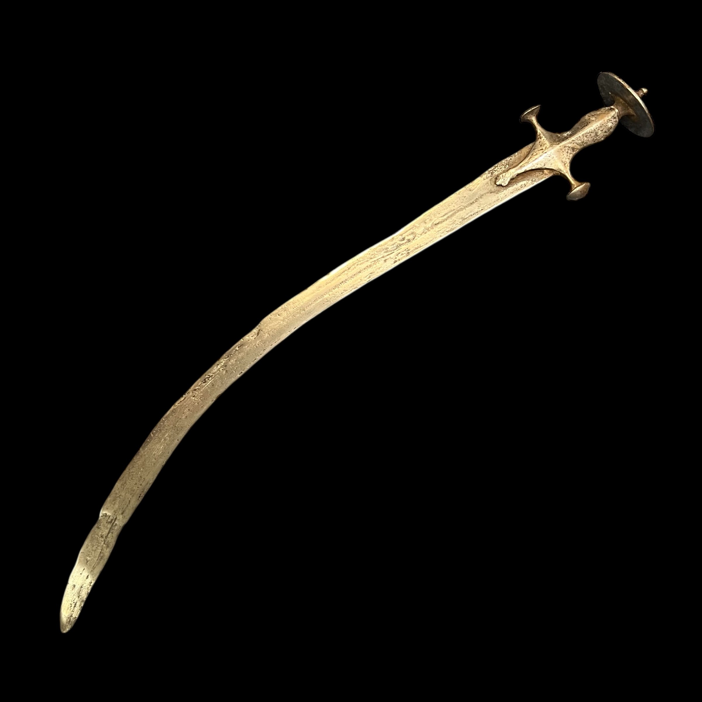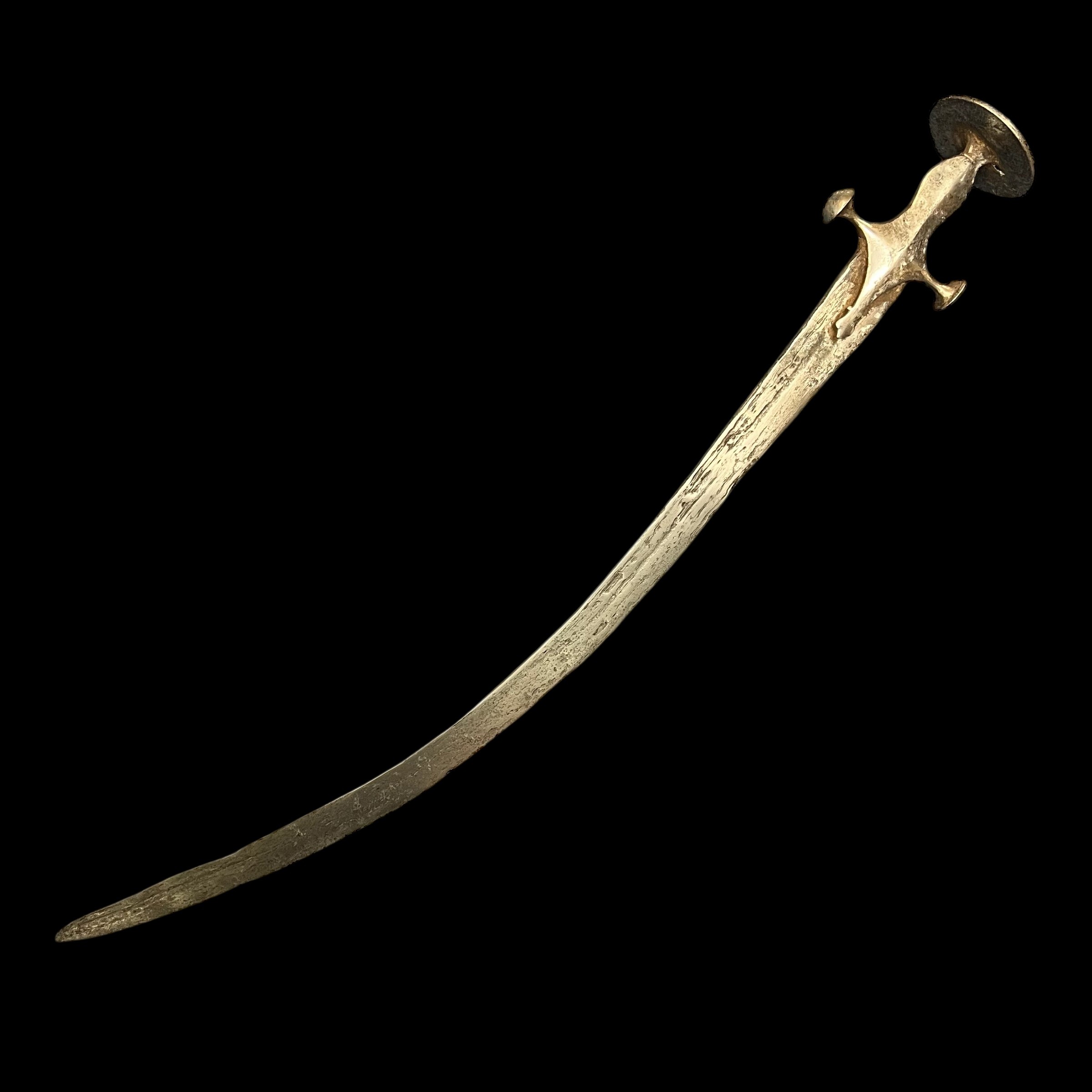 Indo Persia, an Indo Persian Tulwar sword with curved blade, unmarked. Blade 69cm, overall 80cm.
