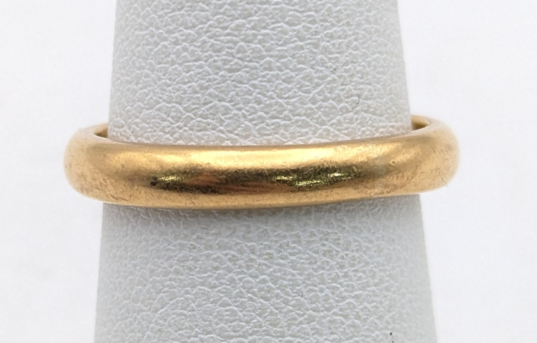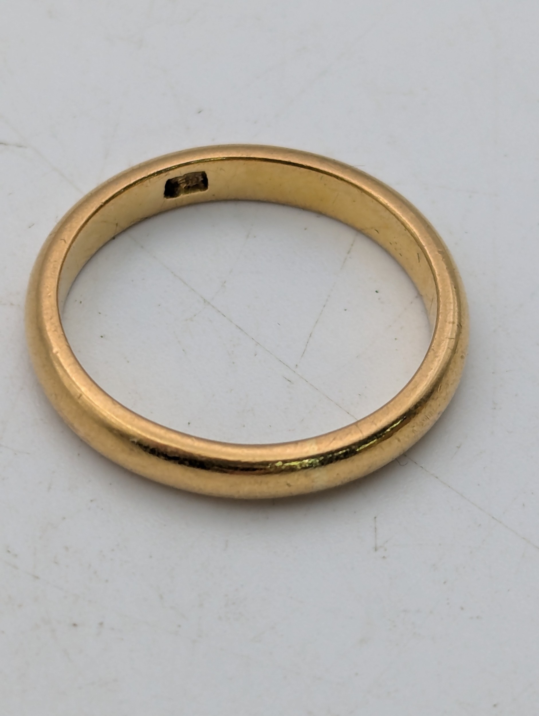 A yellow gold wedding band tested as 18ct gold, size N 1/2, 5.6g