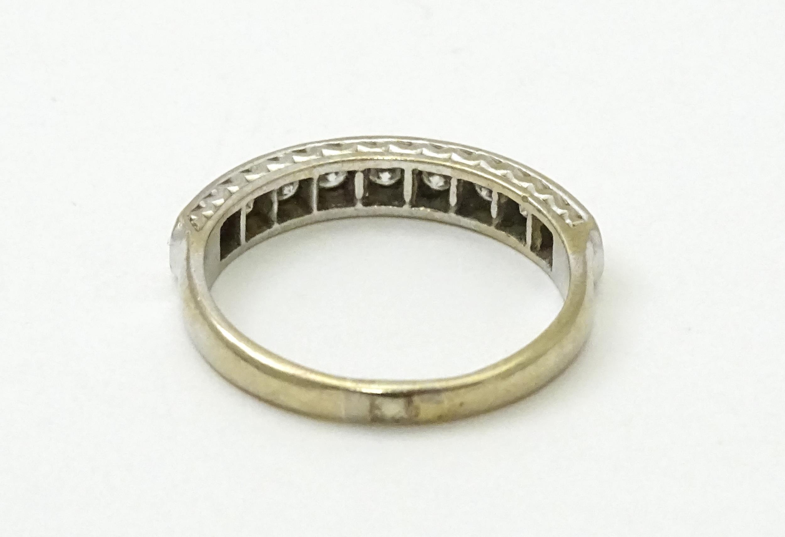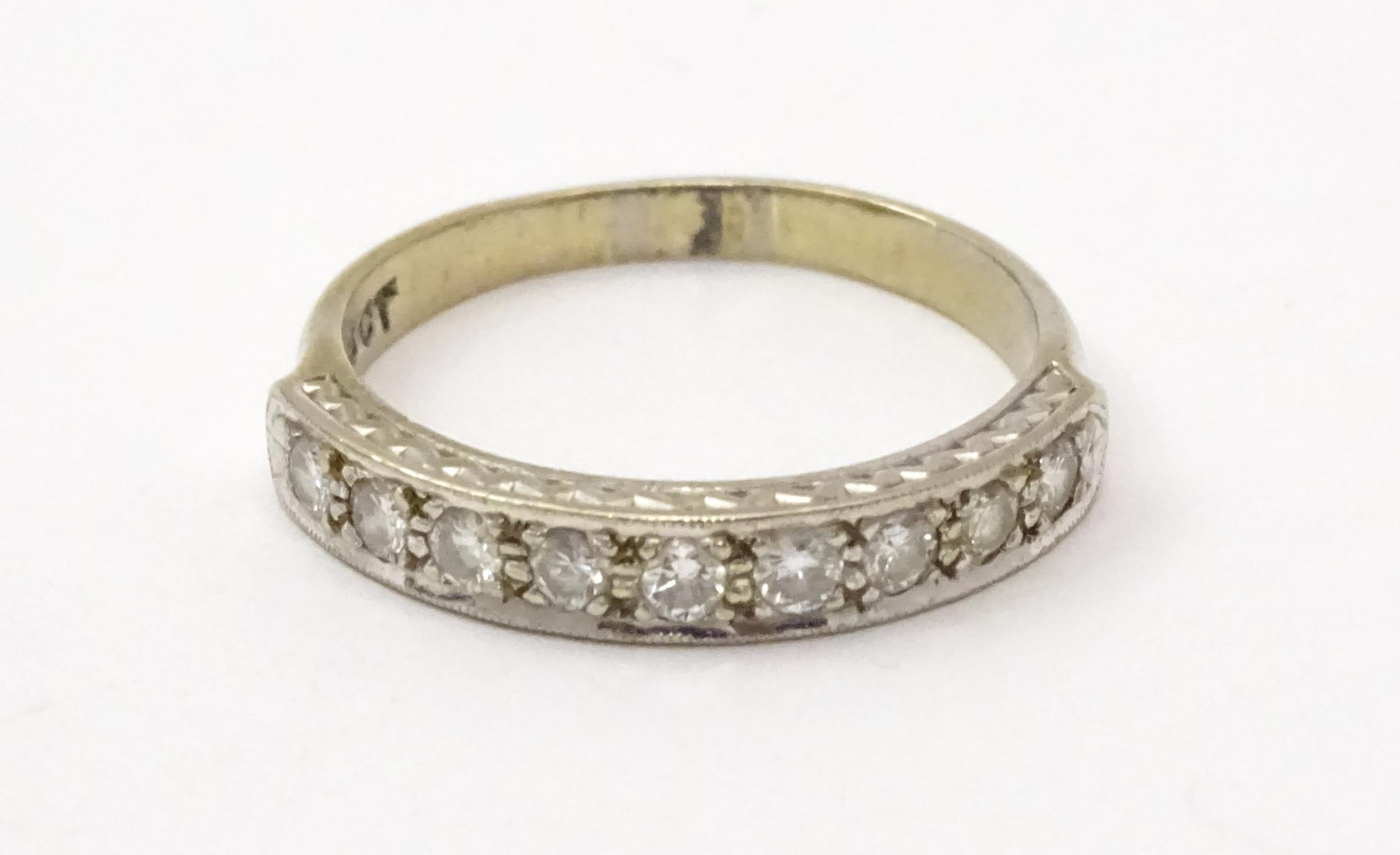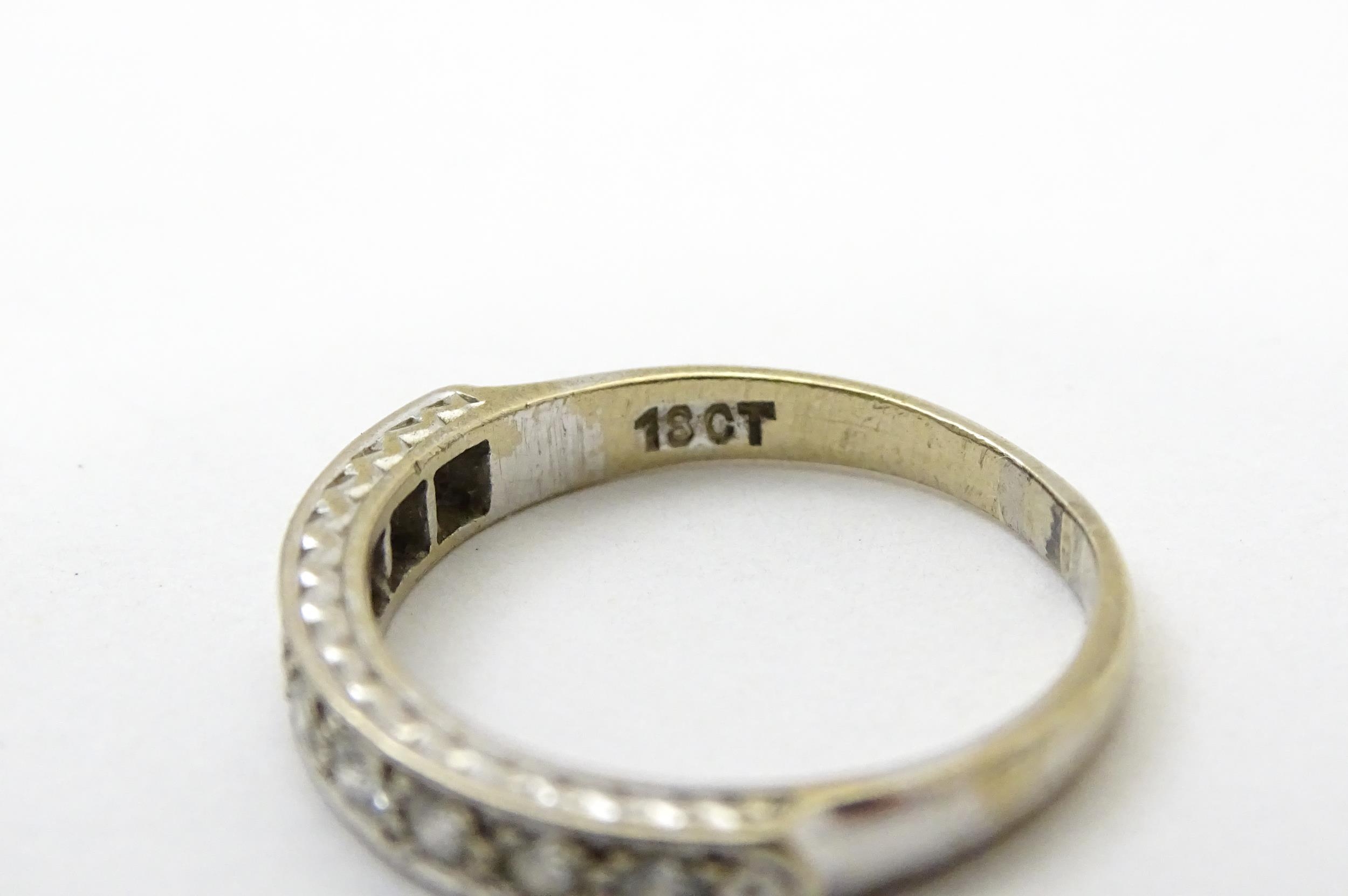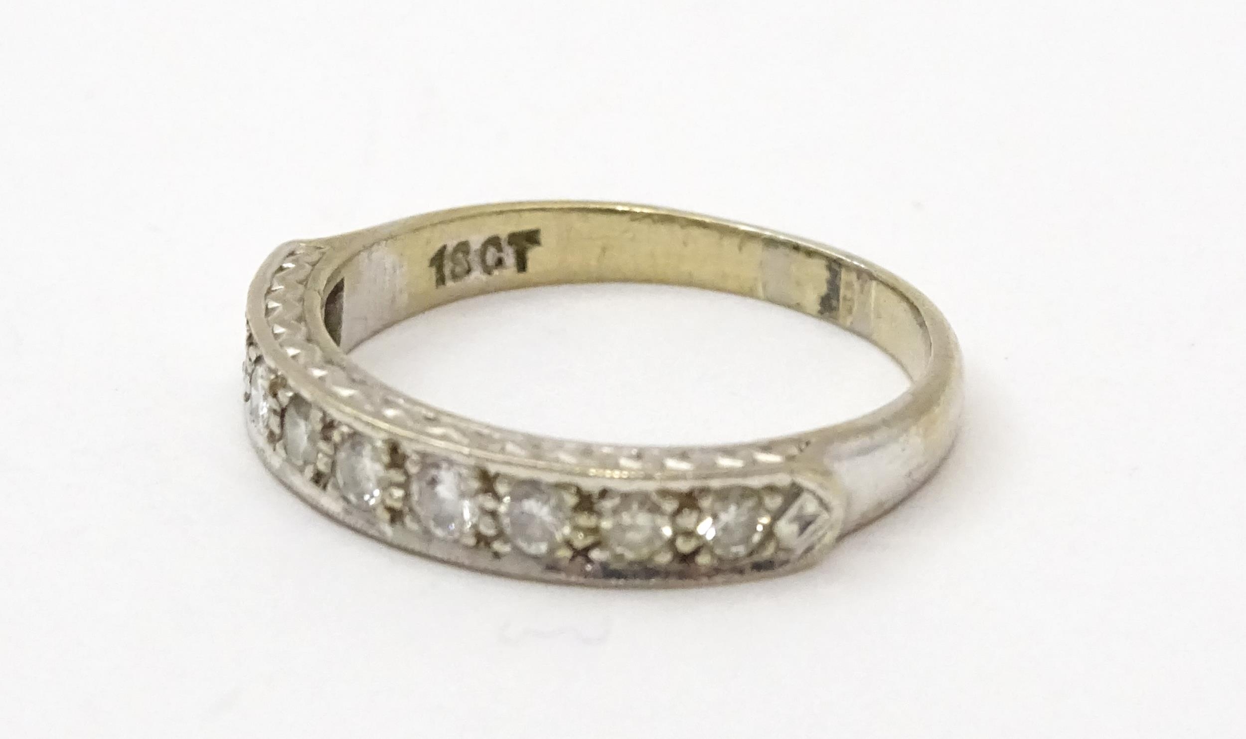An 18ct white gold half eternity ring set with nine diamonds. Ring size approx. P 1/2