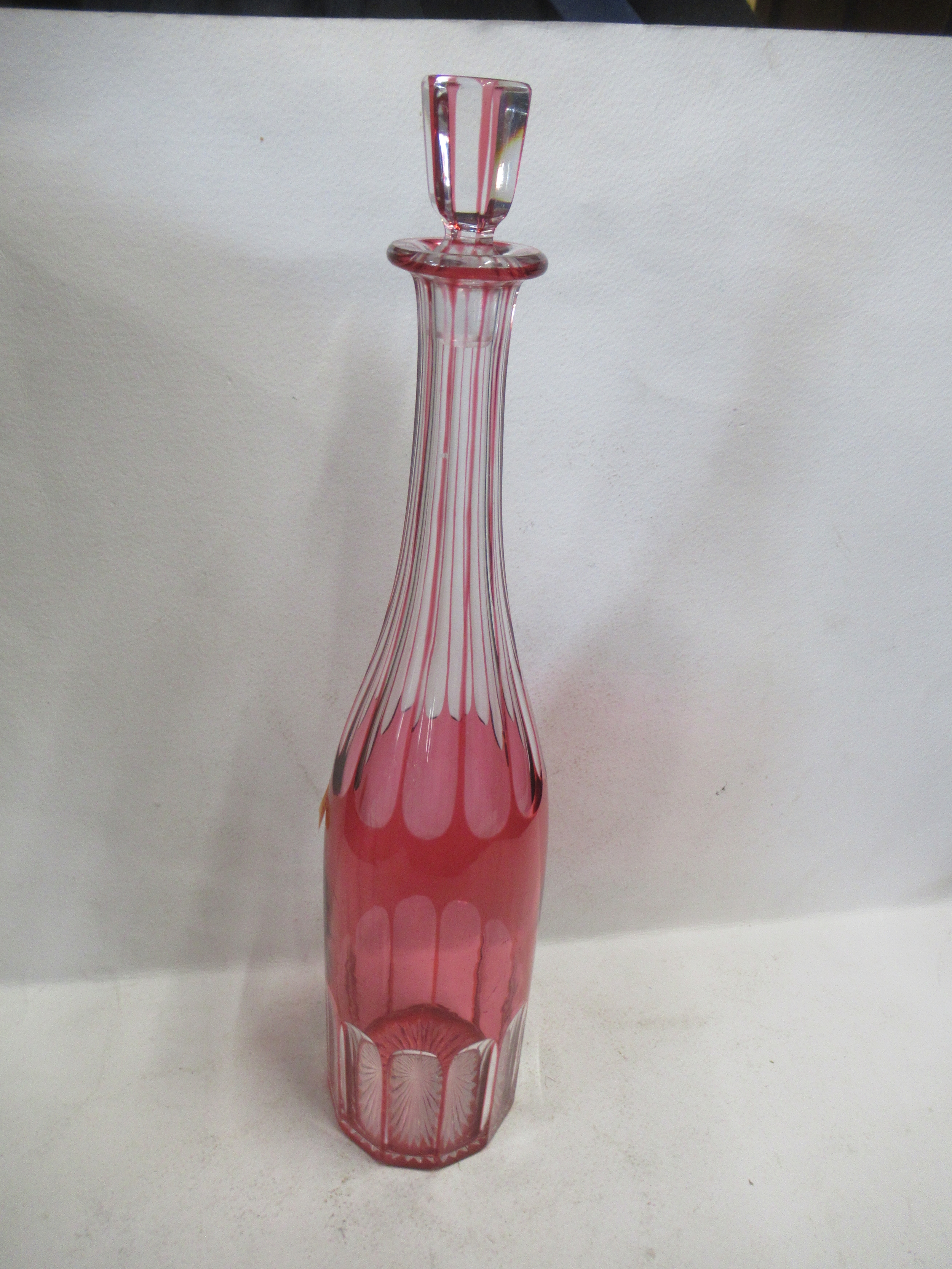 A cranberry flash glass decanter, with stopper, height 14.5ins