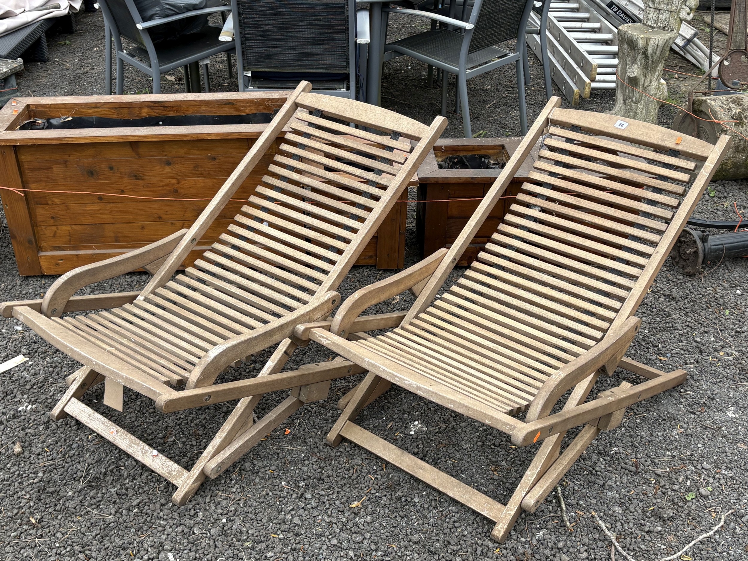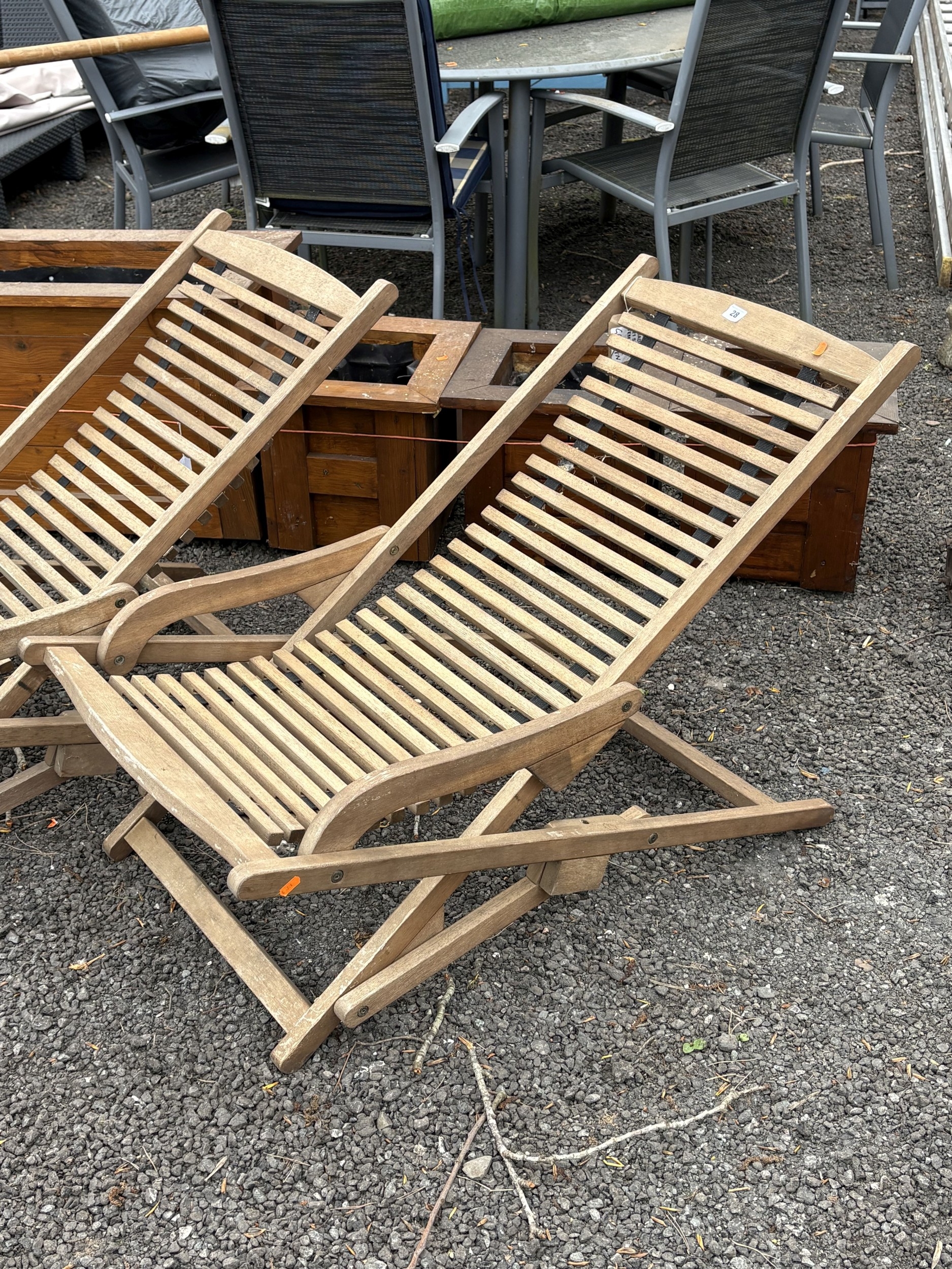 A PAIR OF FOLDING STEAMER GARDEN CHAIRS