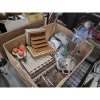 2 plastic trays, rolling pin, Goldfinch design plate, glass decanter, vintage dominos and a 10" high marble type lamp.