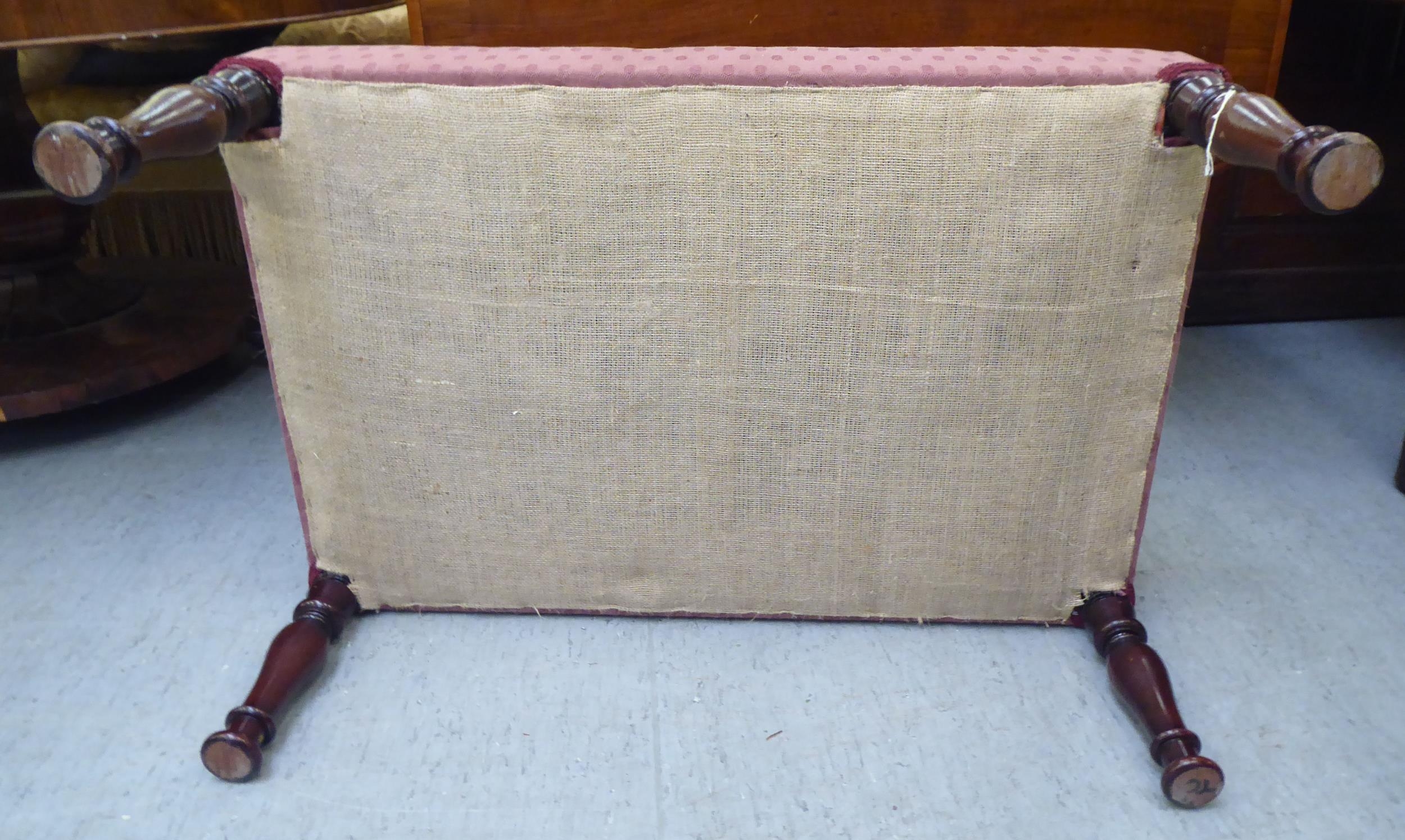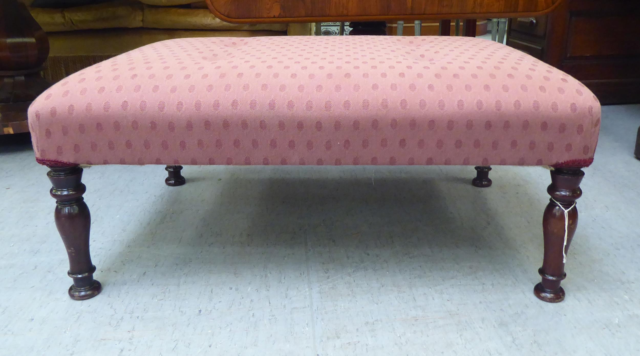 An early 20thC and later fabric upholstered, cushioned top footstool, raised on turned mahogany legs