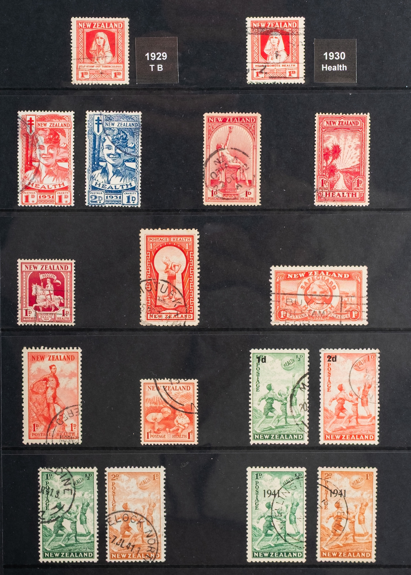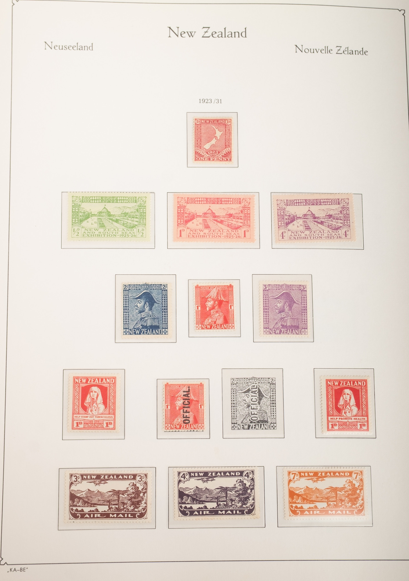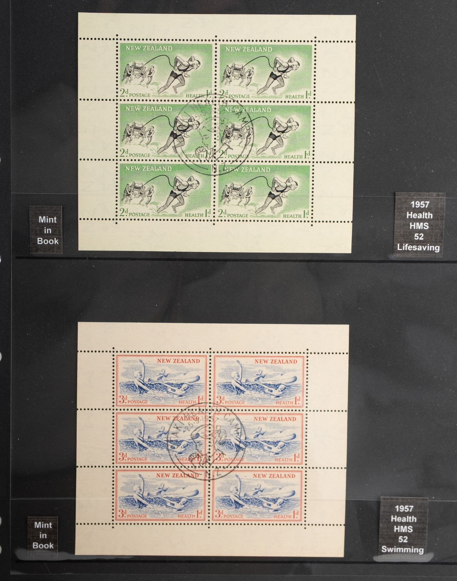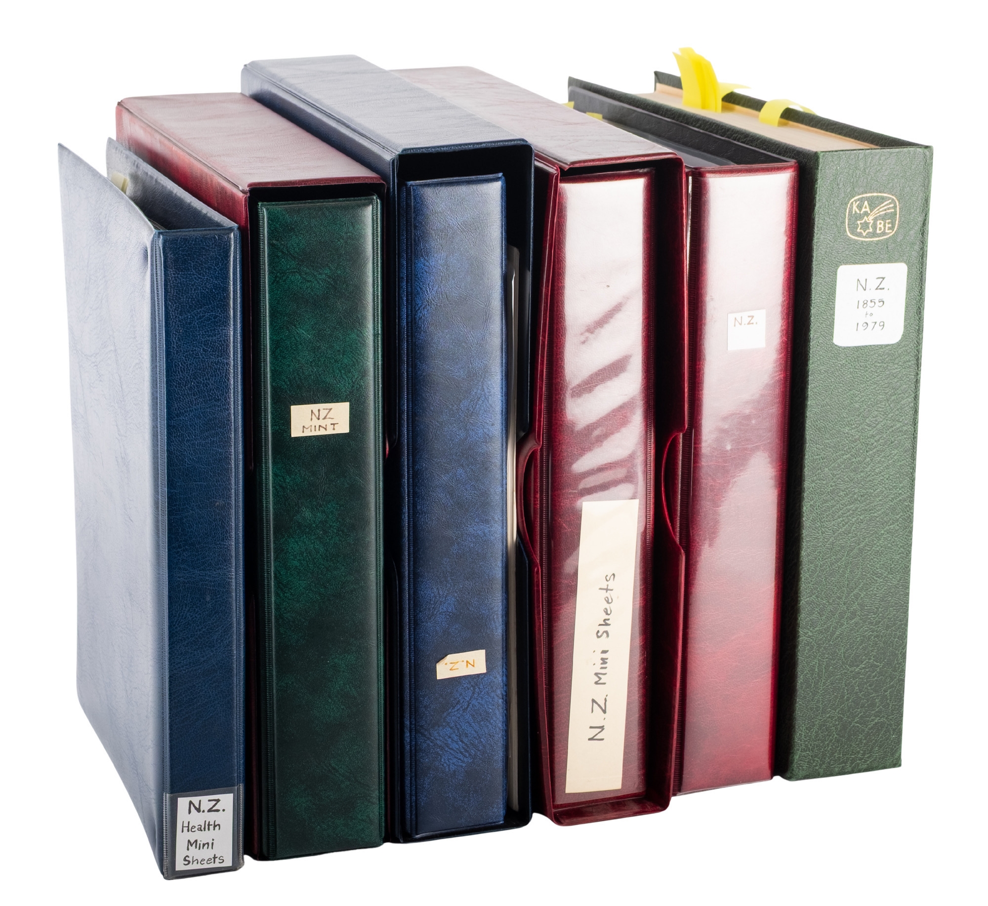 New Zealand. A collection of New Zealand stamps in six albums, comprising a Hingeless Queen Victoria to QEII, with 1931 Smiling Boys mint (toned gum), later QEII issues (appearing mostly MNH), a ring binder (boxed) of approx. 214 mini-sheets and booklets (MNH and Fine used) between 1969 and 2012, a ring binder of mostly fine used sets, again including 1931 Smiling Boys, and an album of Health mini-sheets from around 1957 to 2004.