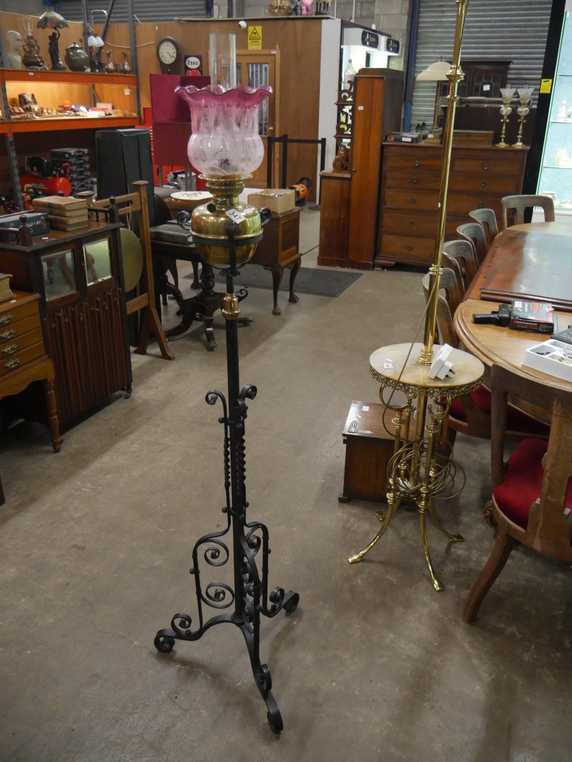 VICTORIAN STANDARD OIL LAMP WITH RUBY SHADE SHADE DAMAGED