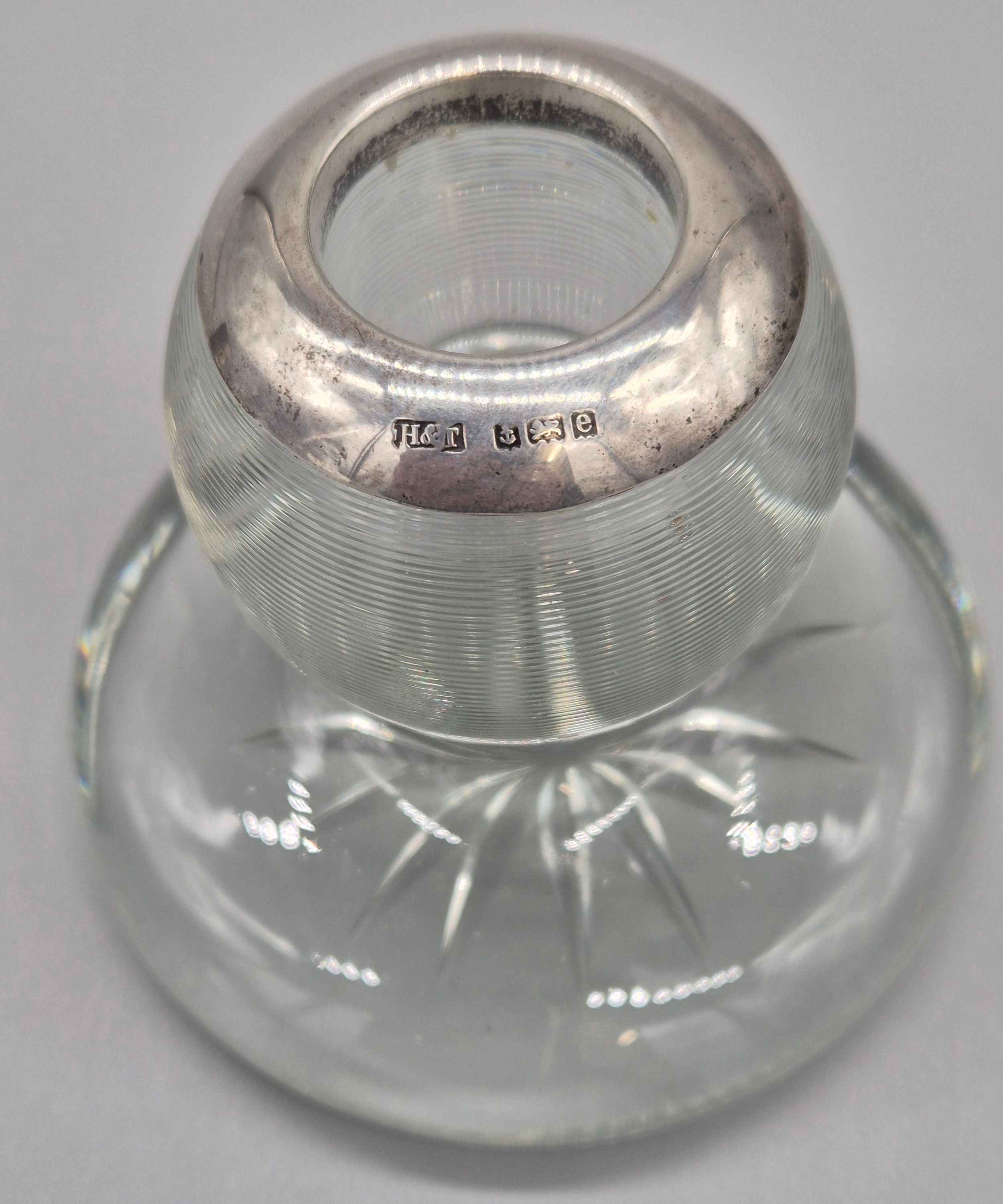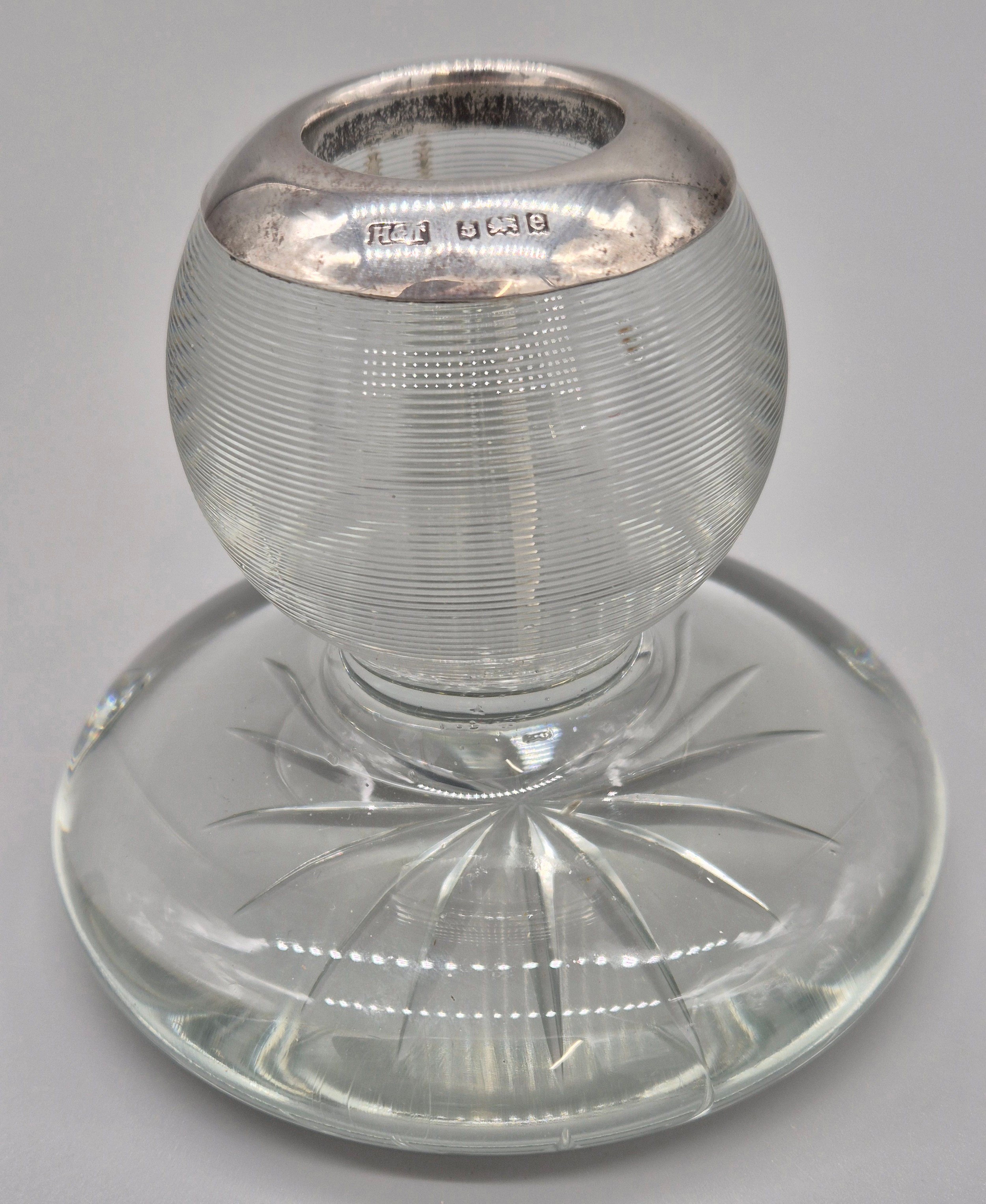 Birmingham silver rimmed and cut glass match holder/ striker.