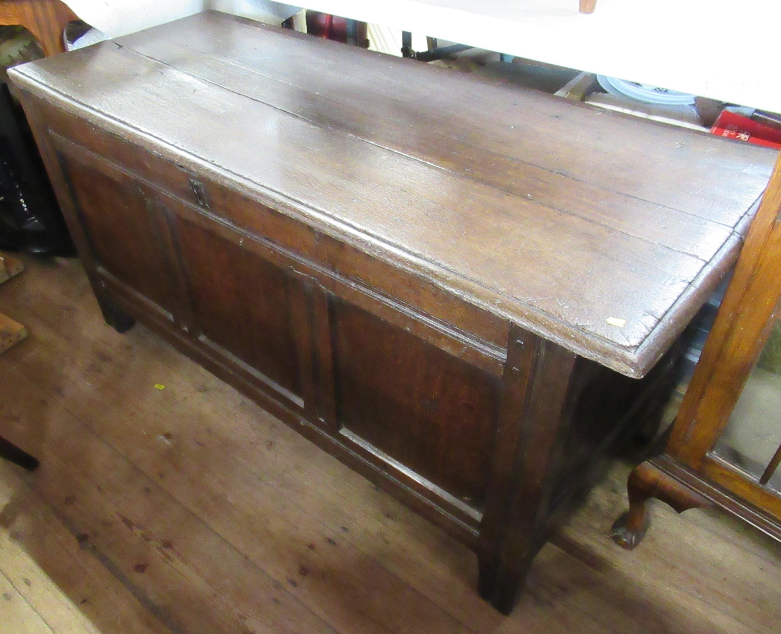 An oak coffer, 52.5ins x 21ins, height 25ins