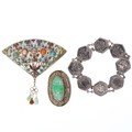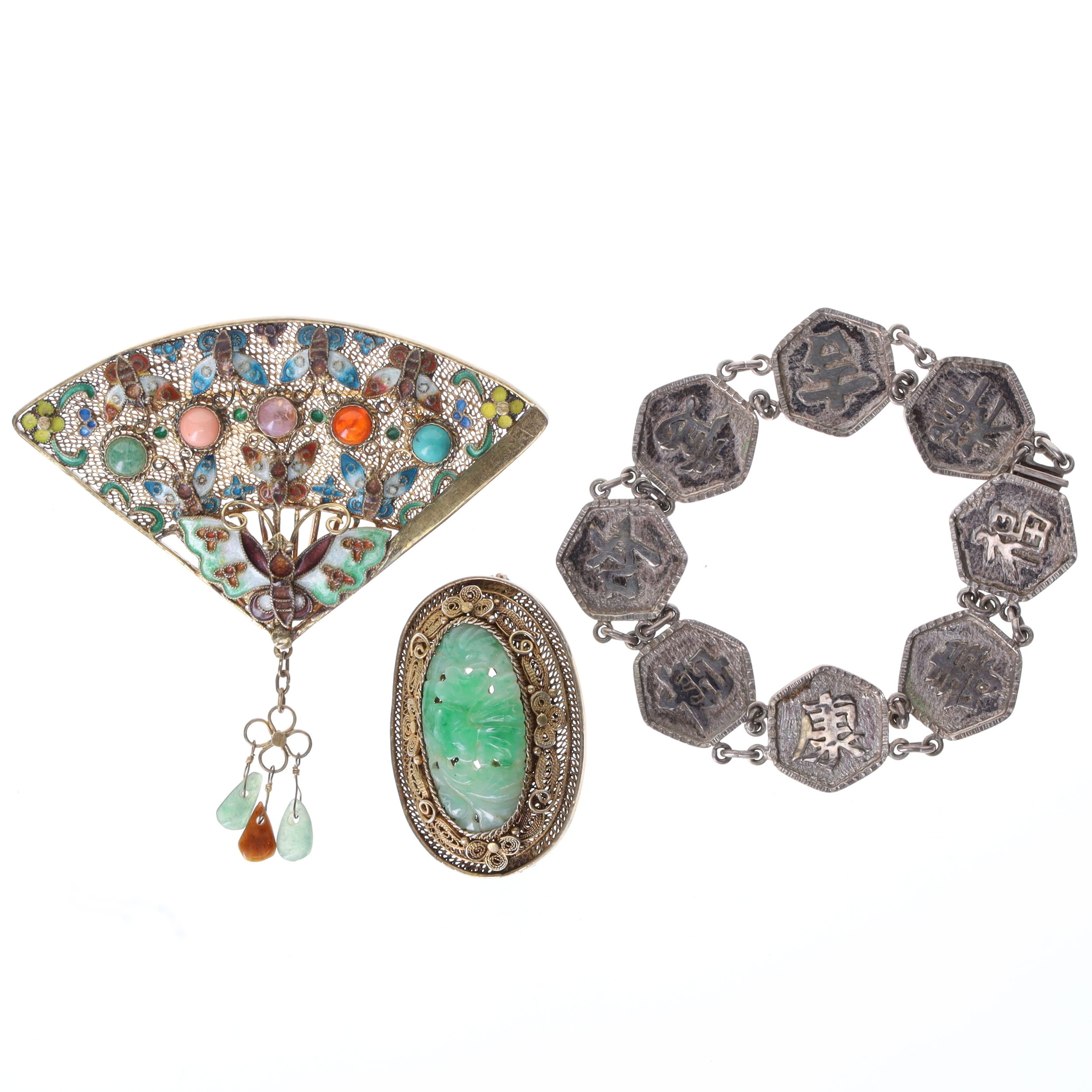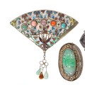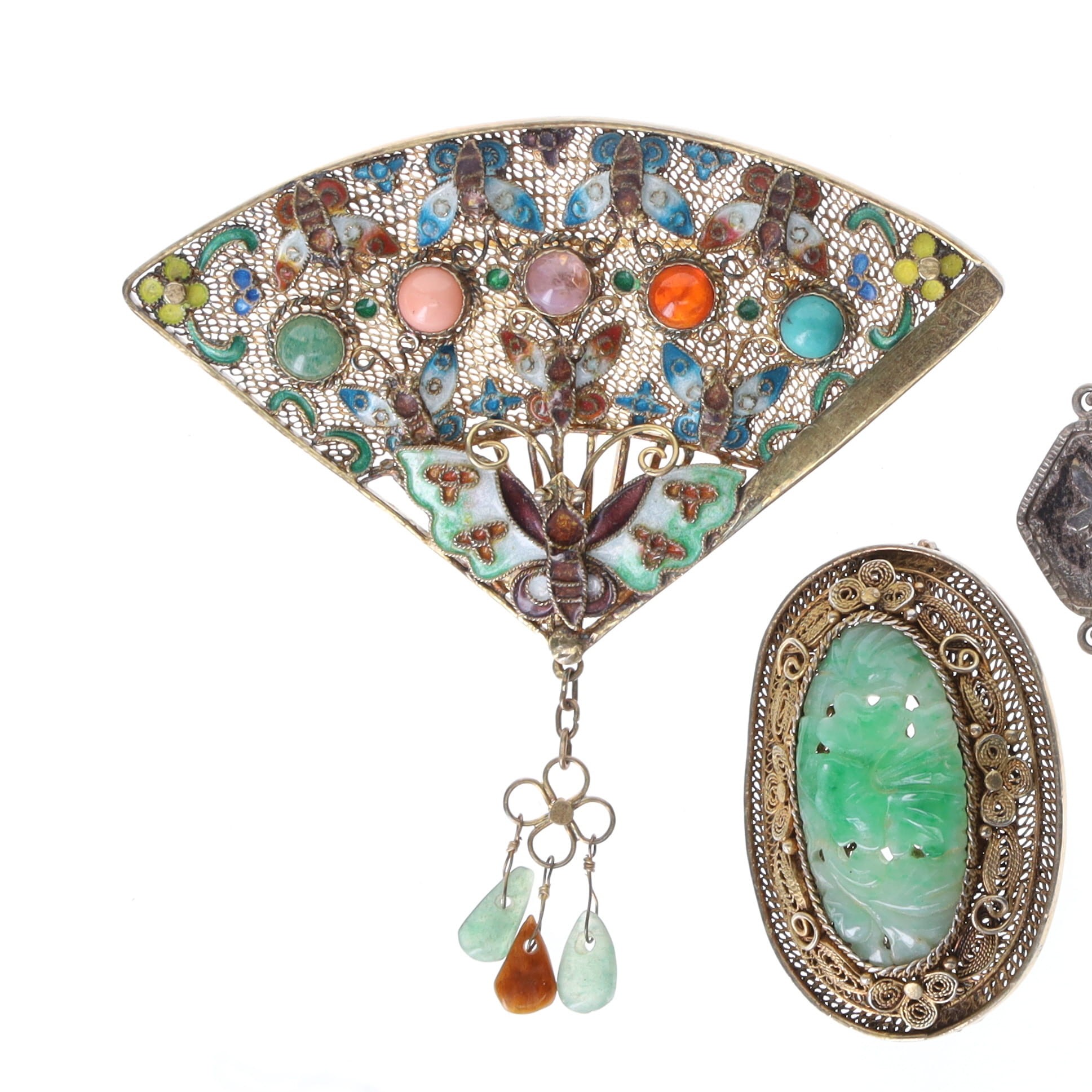 Chinese Export Silver Jewellery Collection incl. Gemstone, Enamel, 40g