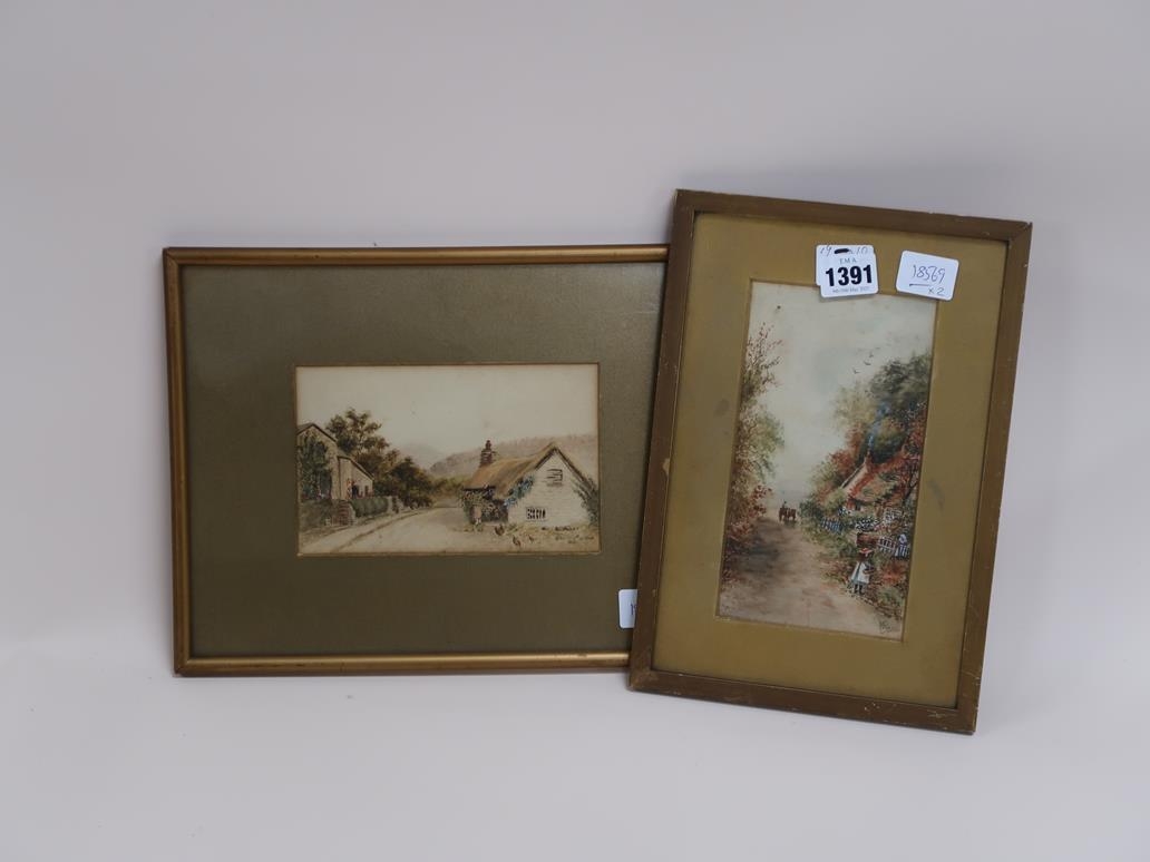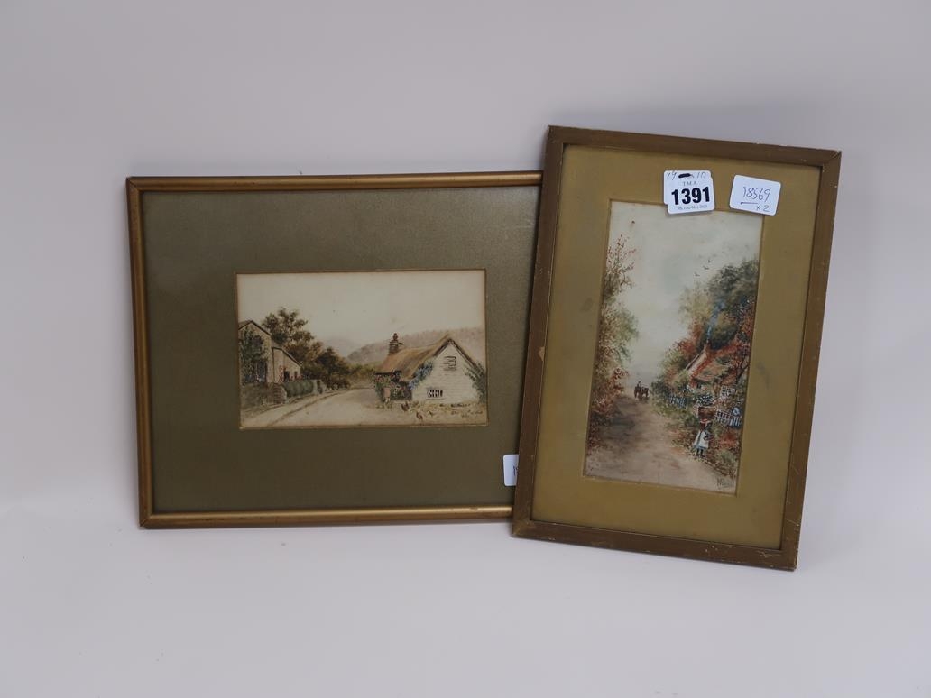 SIGNED INDISTINCTLY - PAIR, LATE 19C WATERCOLOUR, VILLAGE STREET SCENES, EACH APPROX 19CM X 10CM