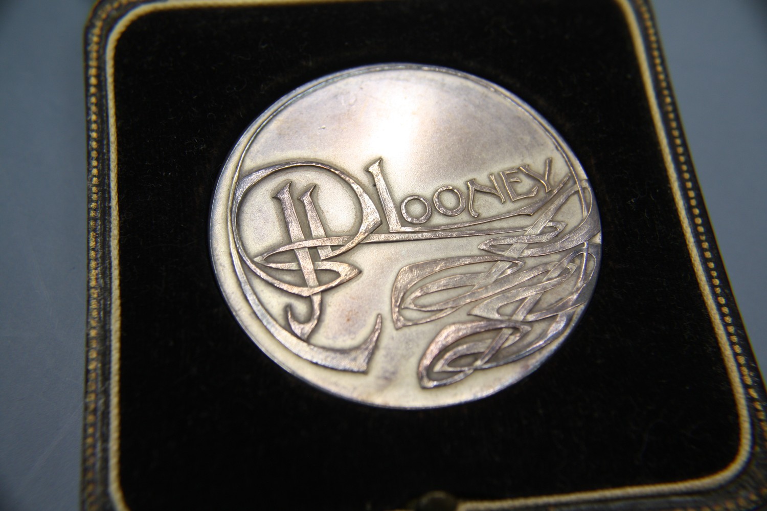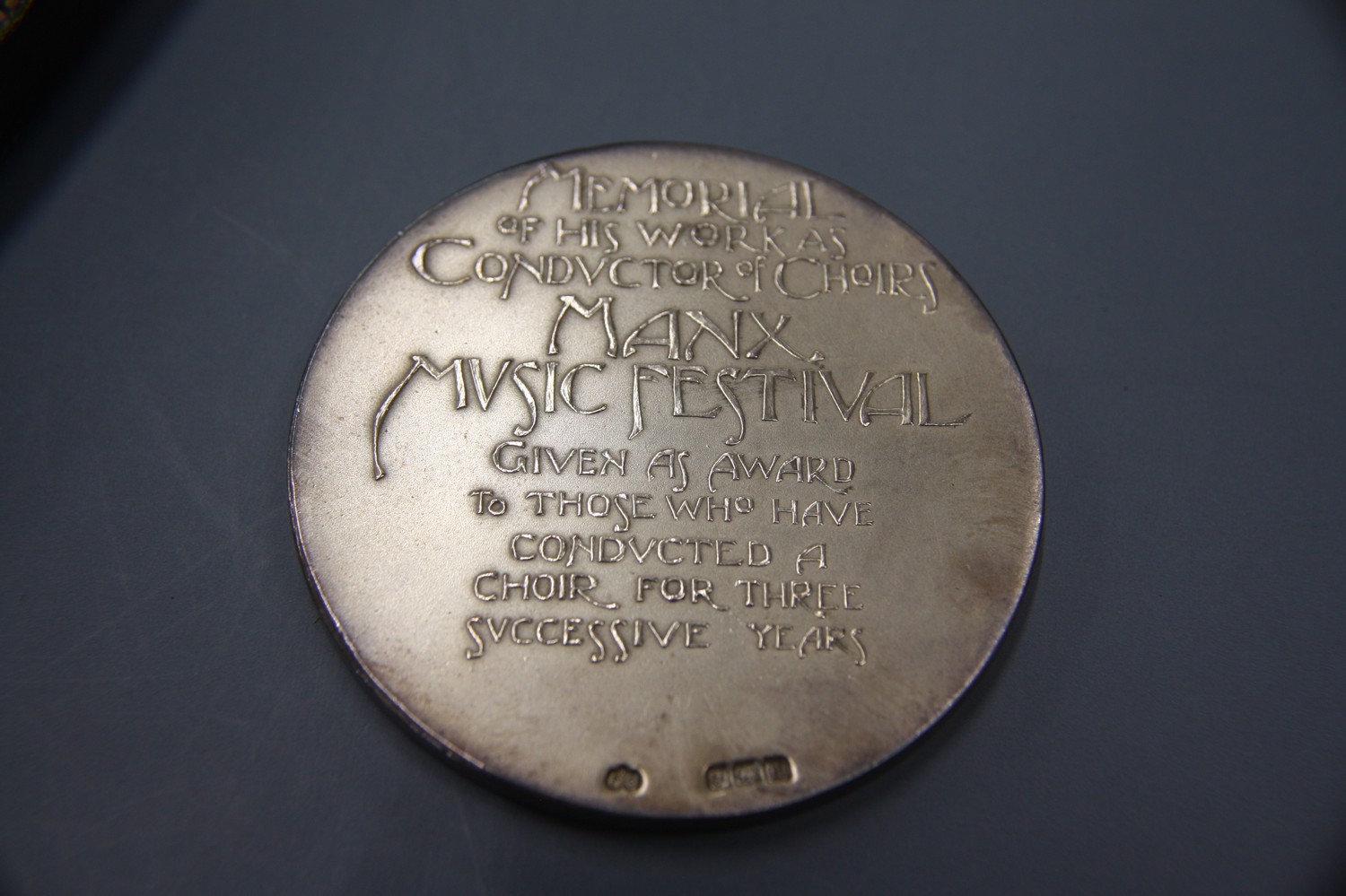 J P Looney, Memorial of his Works as Conductor of Choirs - Manx Music Festival, silver medallion, cased