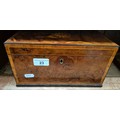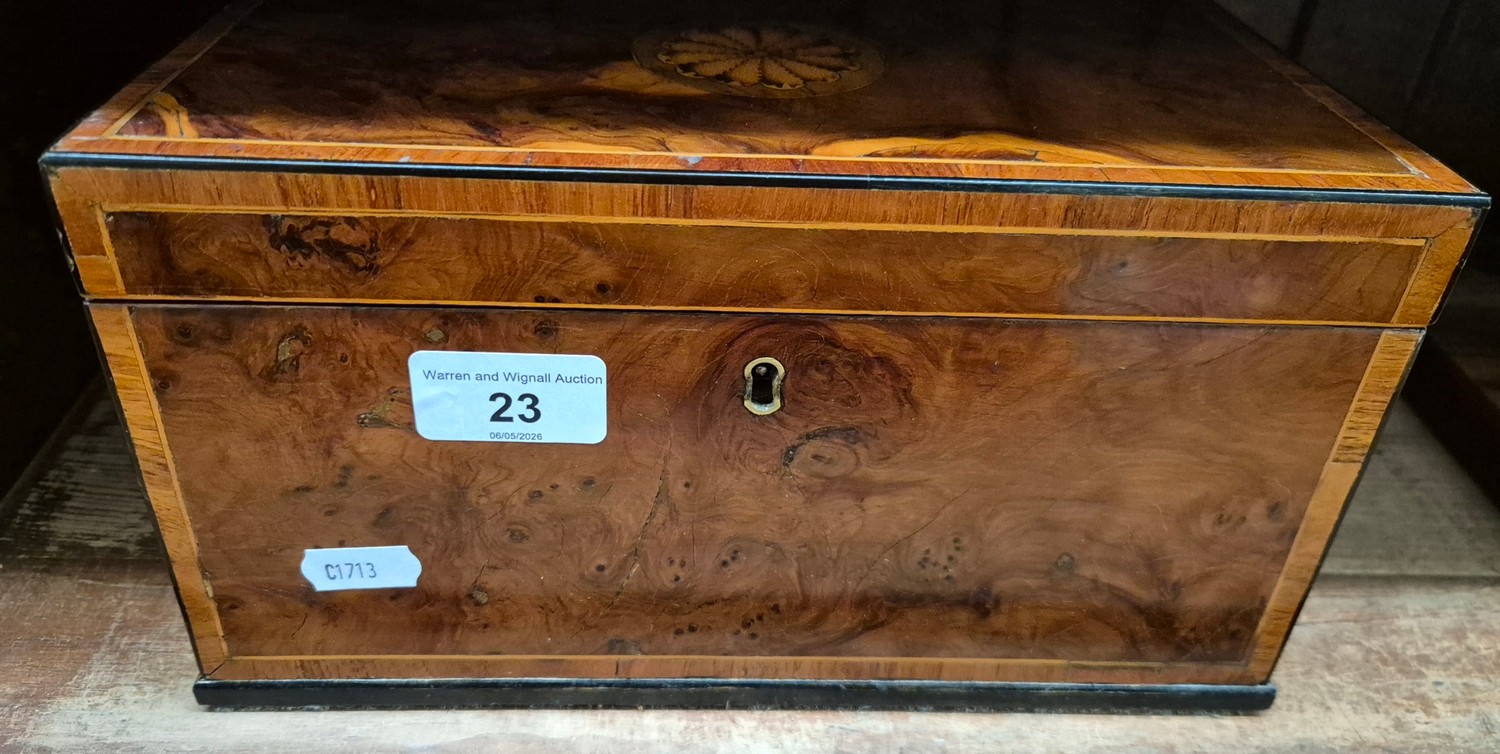 An antique tea caddy with 3 section and an inlaid patera to the lid