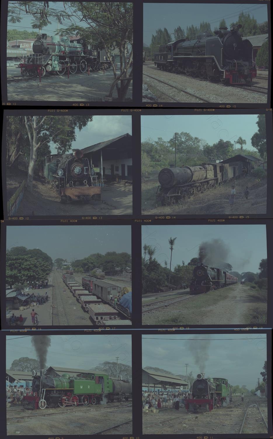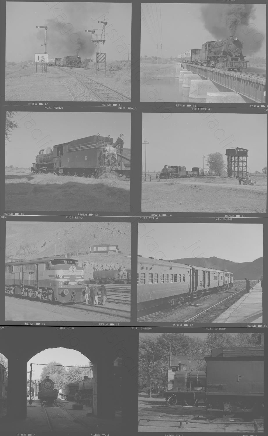 Railway. Overseas Traction-Pakistan, Burma and Thailand. A good quality selection of approx. 173, medium format, colour negatives, stored in negative sleeves, with accompanying contact print sheets. The negatives feature mostly working steam and some modern traction locomotives in PAKISTAN (115 Colour negatives with contact print sheet), BURMA (38 Colour negs with contact print sheet) and THAILAND (20 Colour negs with contact print sheet). There are some fine photographs in this lot, sadly no captions, however, they are sold with copyright. Sample illustrated.