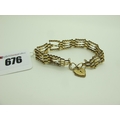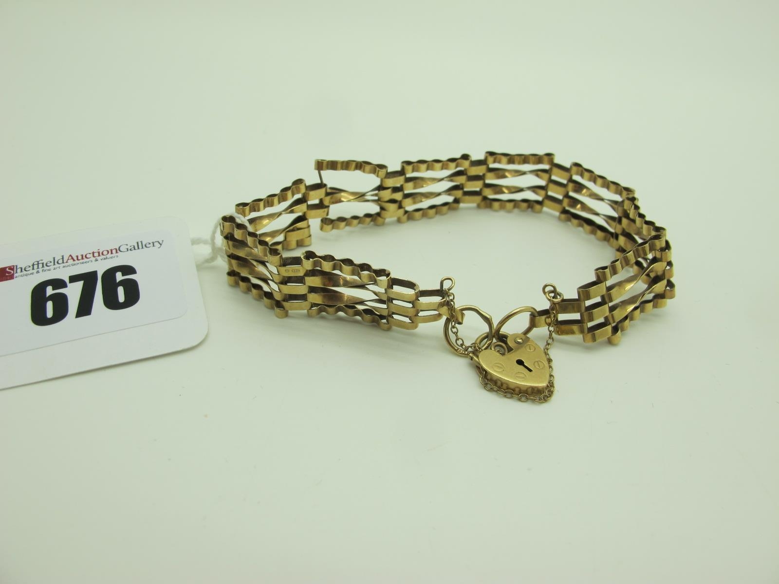 A 9ct Gold Gate Link Style Bracelet, (damage) to a 9ct gold heart shape padlock style clasp (7.5grams).