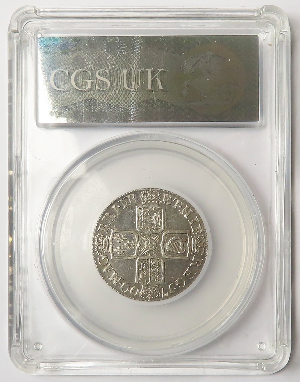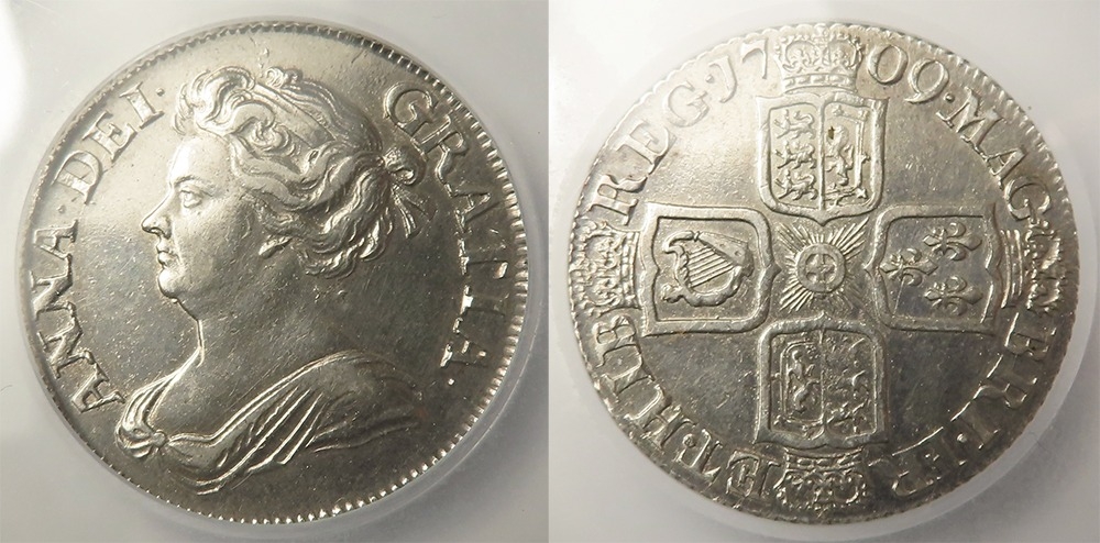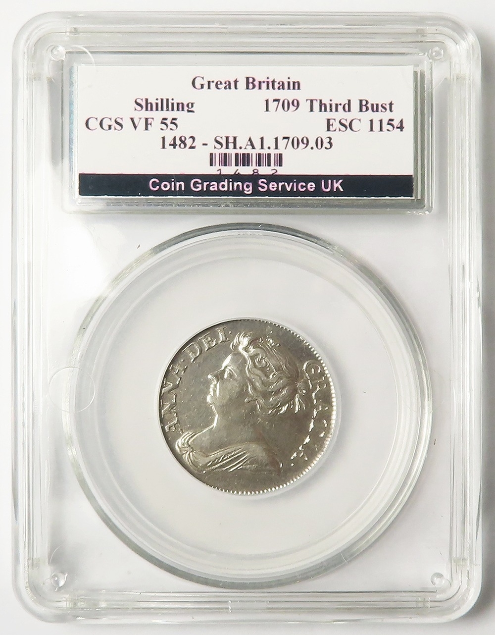 Shilling 1709 plain angles, S.3610, slabbed CGS UK VF 55 (GVF)
