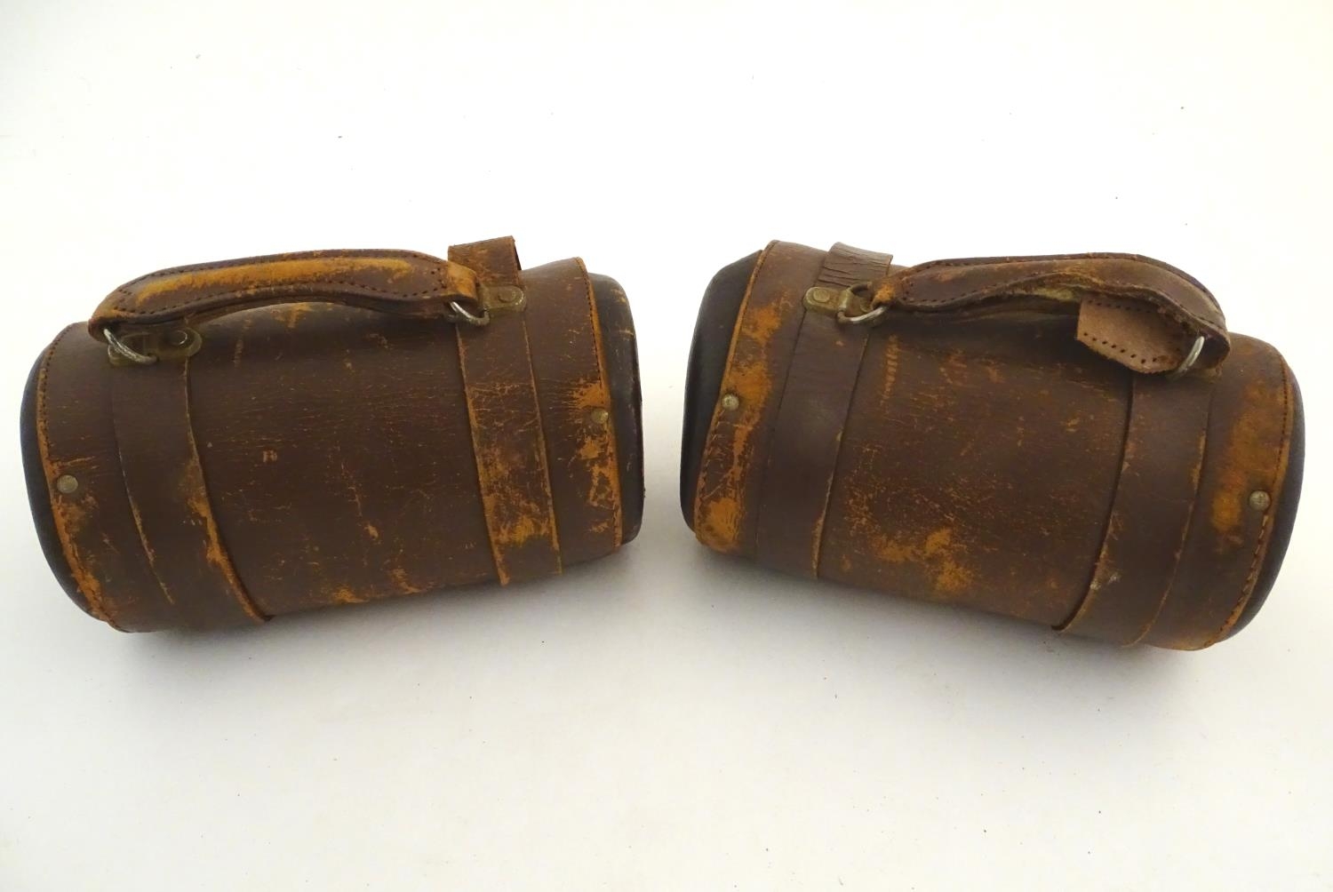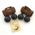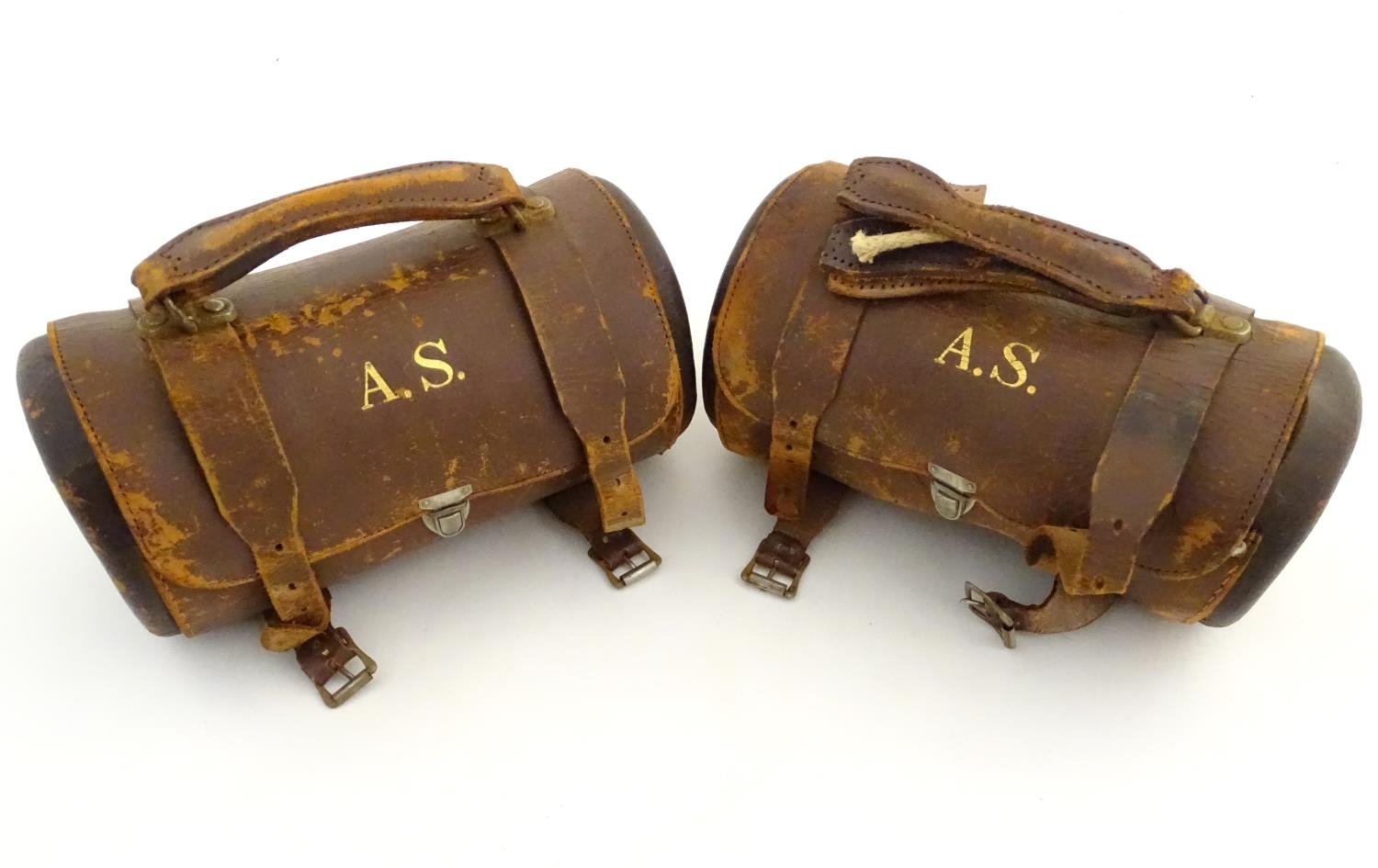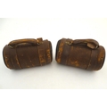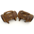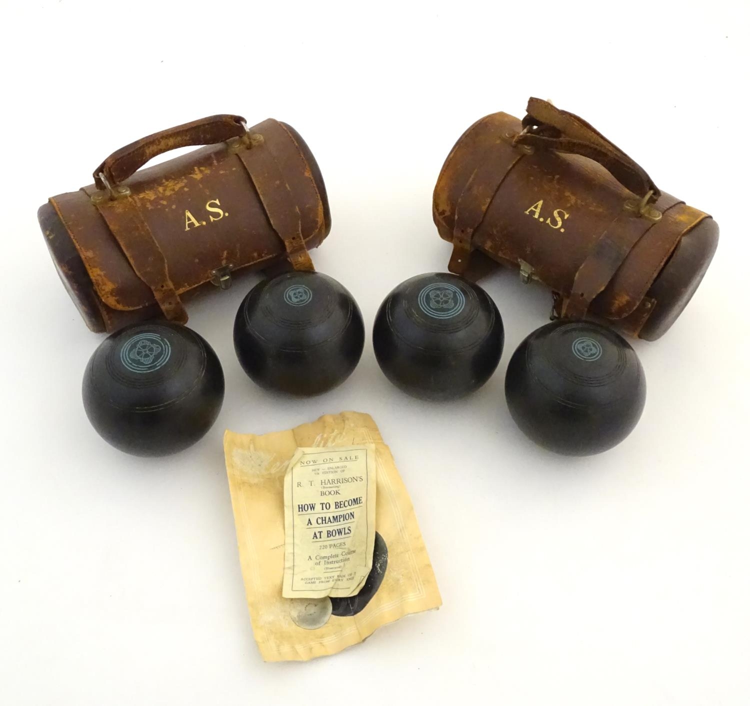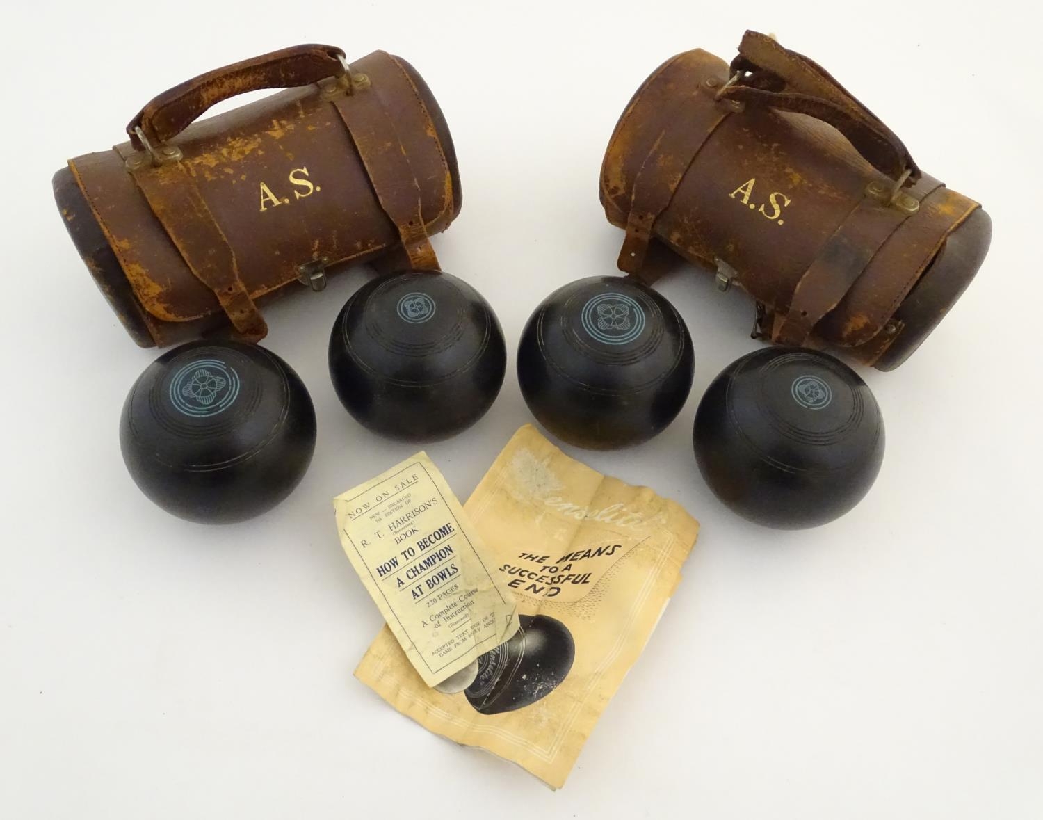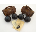 Two pairs of Henselite standard lawn bowls, South African Model. Each pair contained within a leather carry bag. Approx. 4" high. (4)
