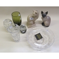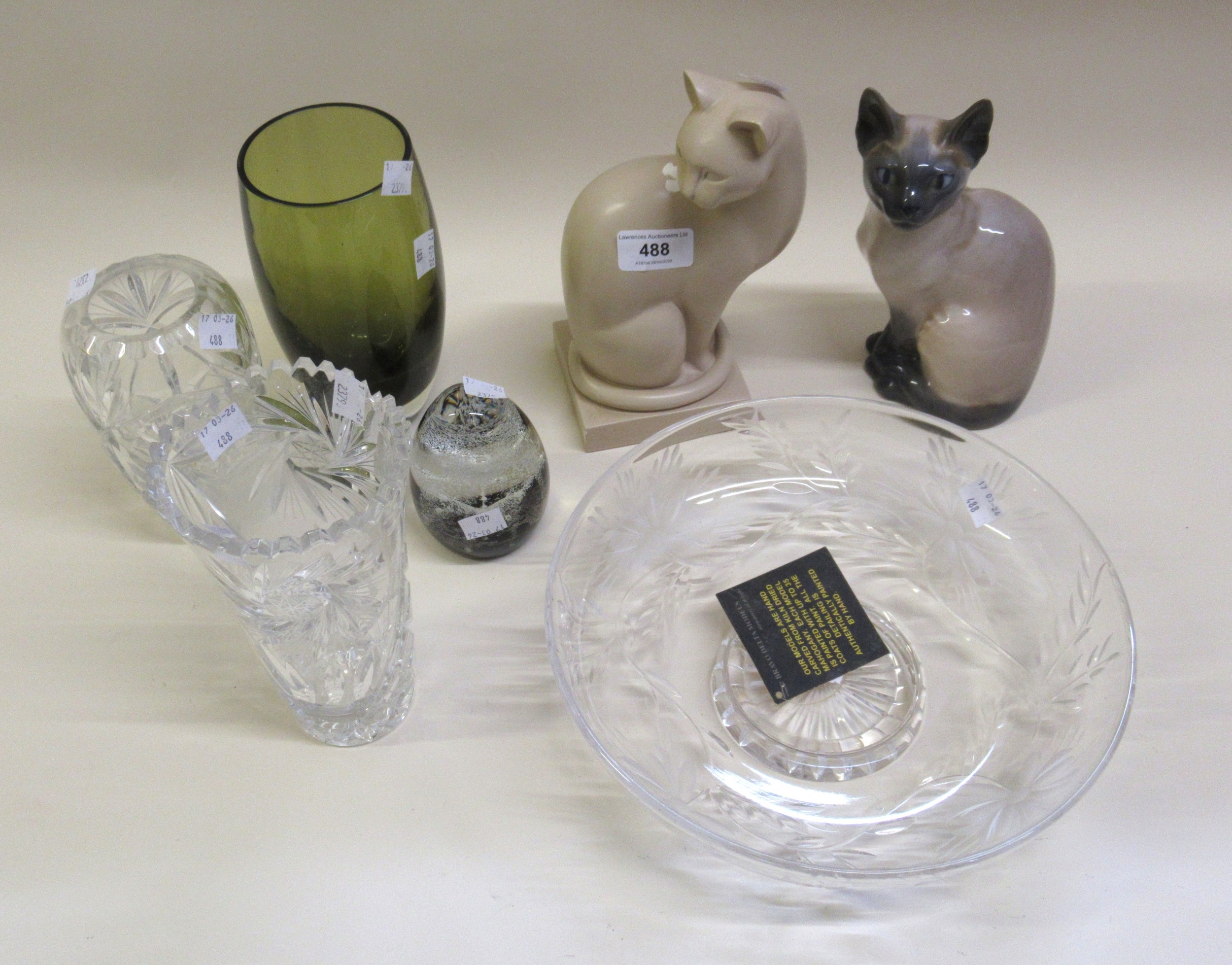 Royal Copenhagen figure of a Siamese cat, a composite figure of a cat and five various glass items