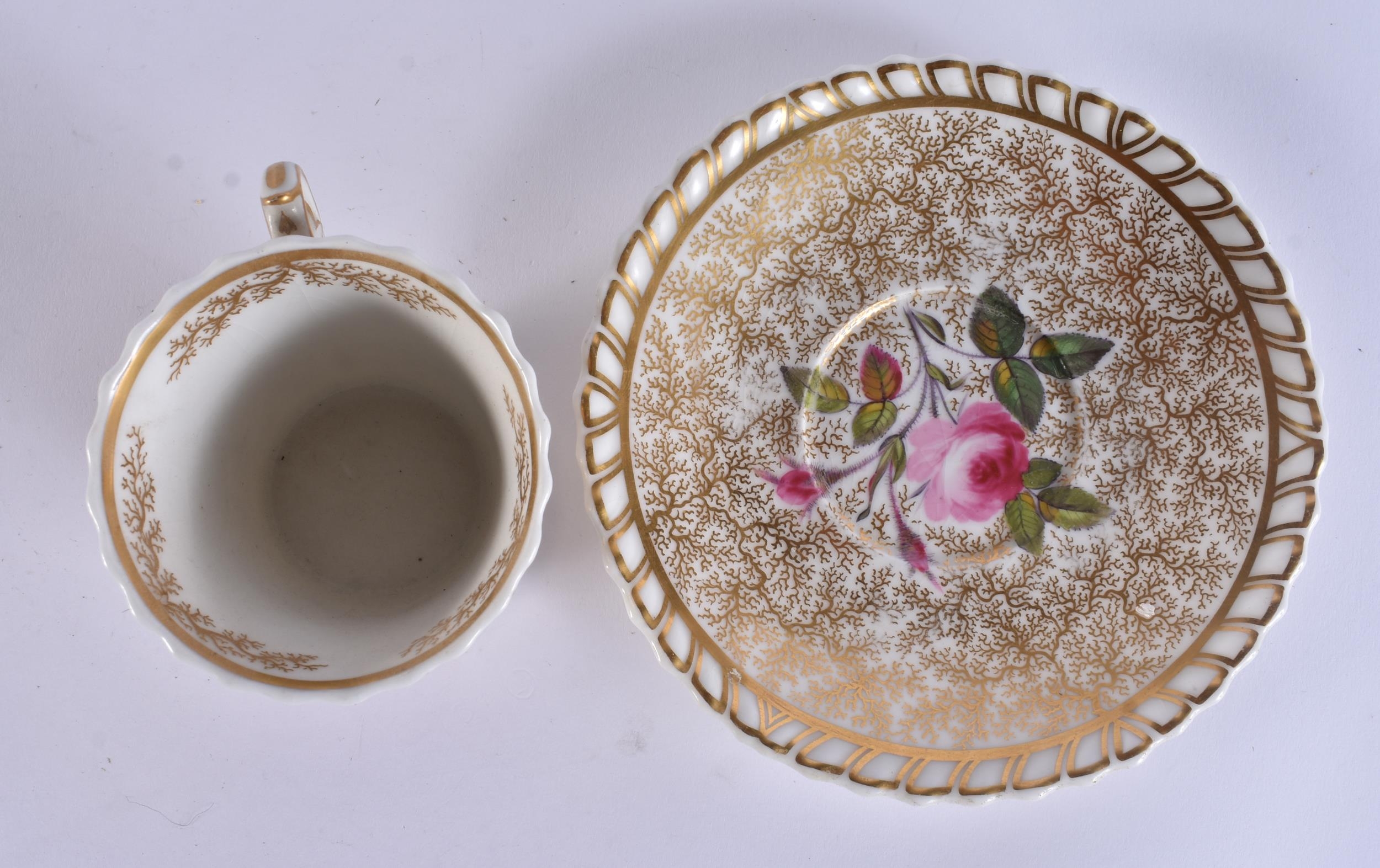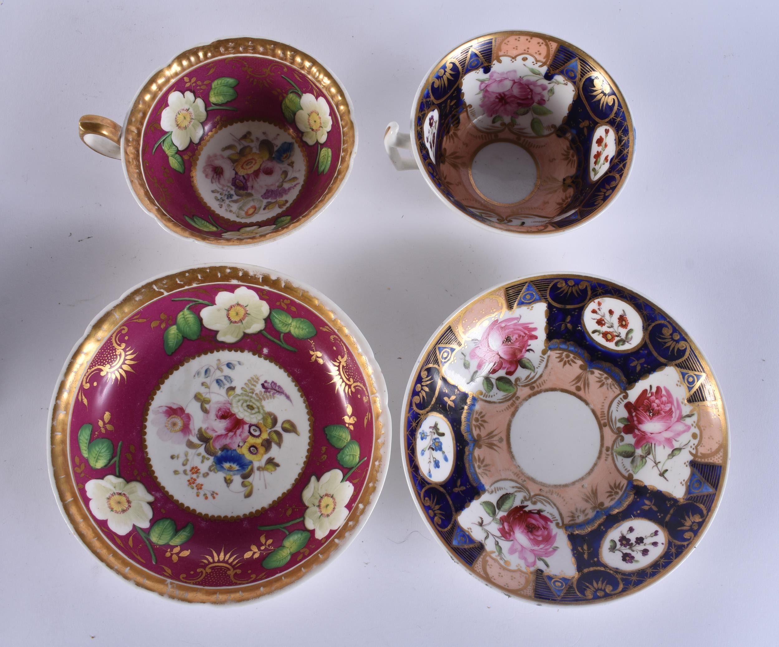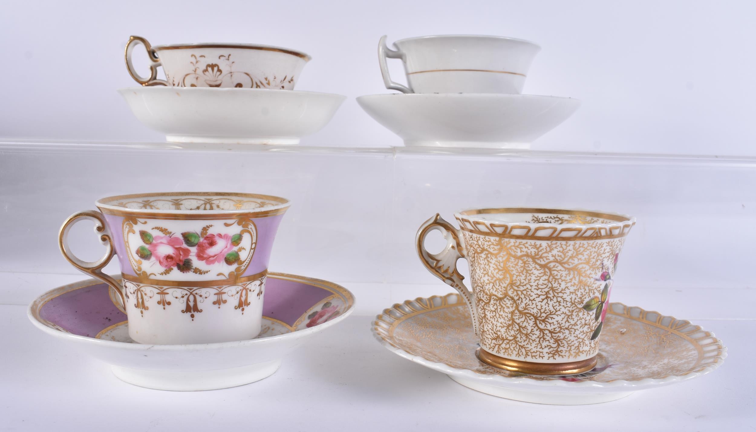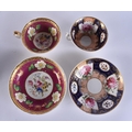 FOUR EARLY 19TH CENTURY CHAMBERLAINS WORCESTER FLORAL CUPS AND SAUCERS. (8)