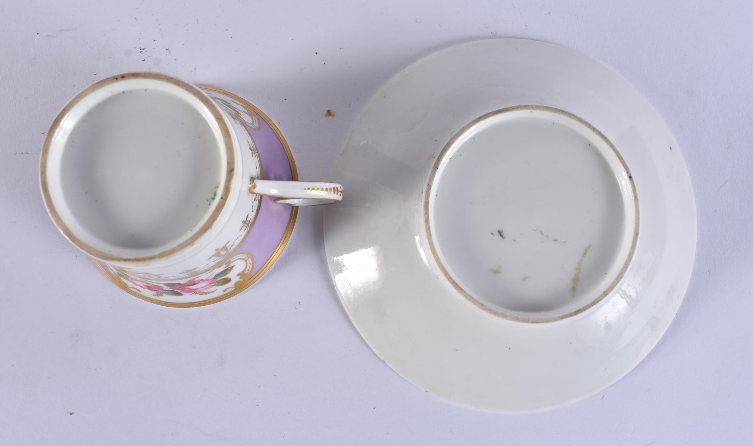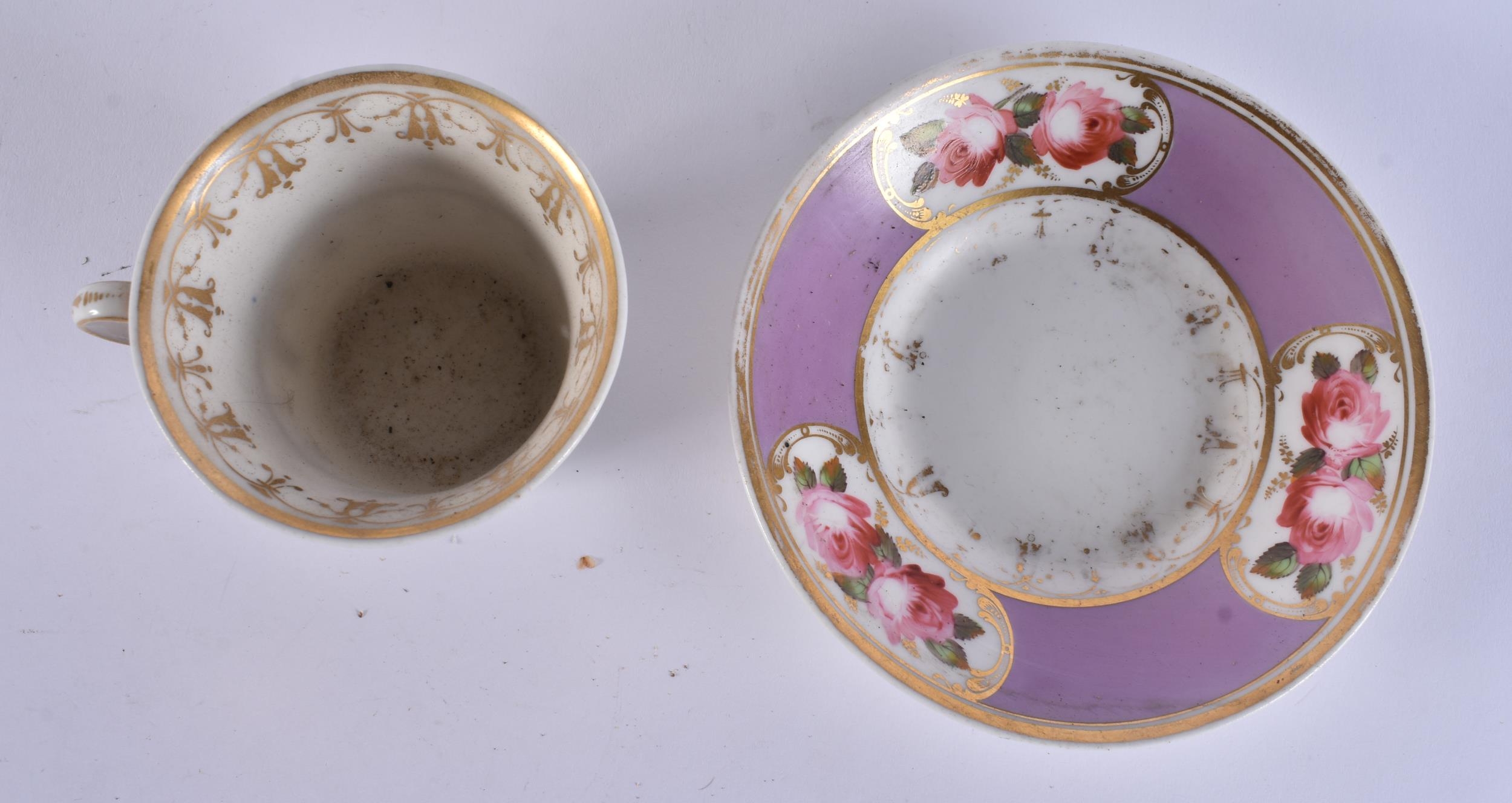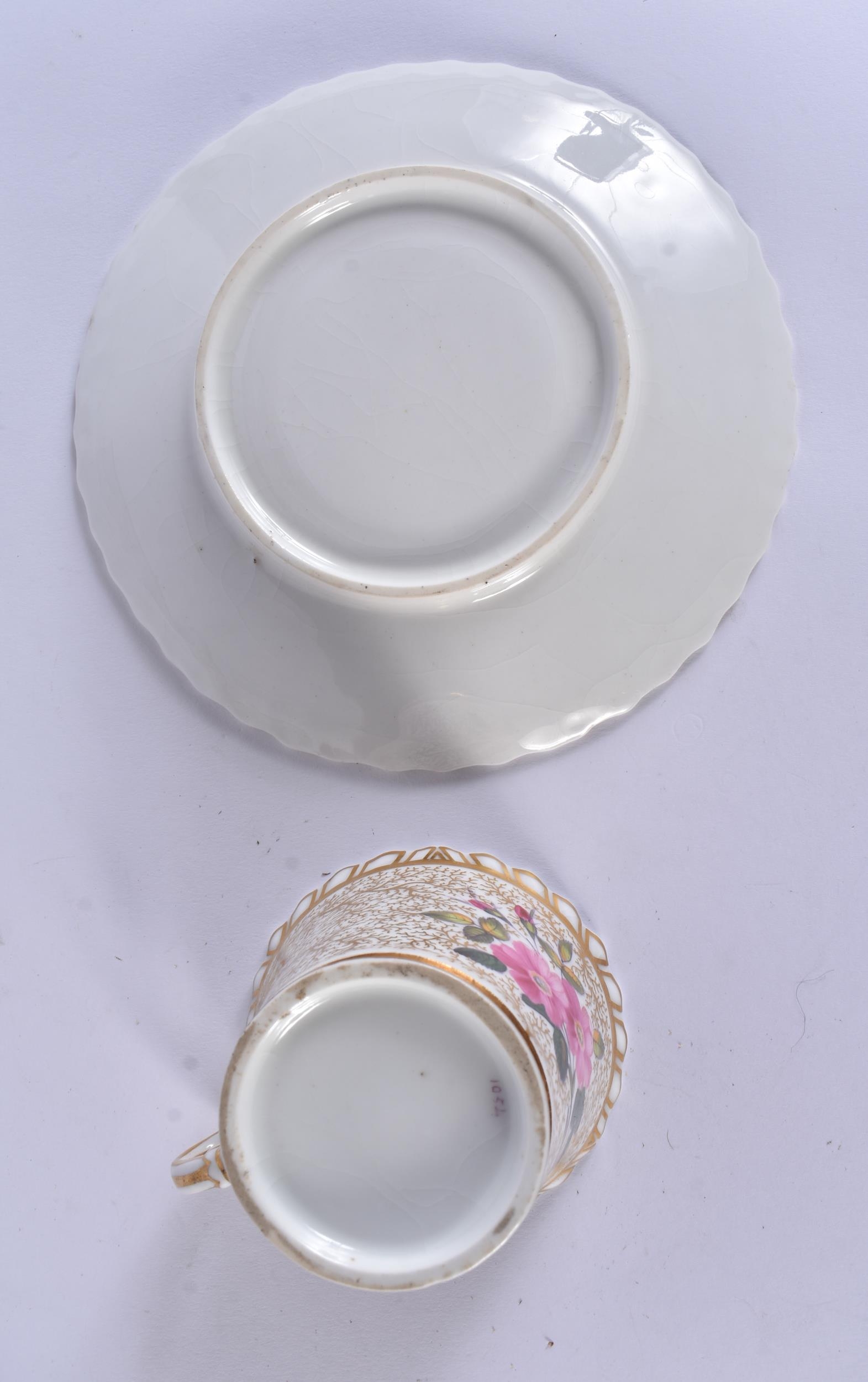 FOUR EARLY 19TH CENTURY CHAMBERLAINS WORCESTER FLORAL CUPS AND SAUCERS. (8)