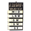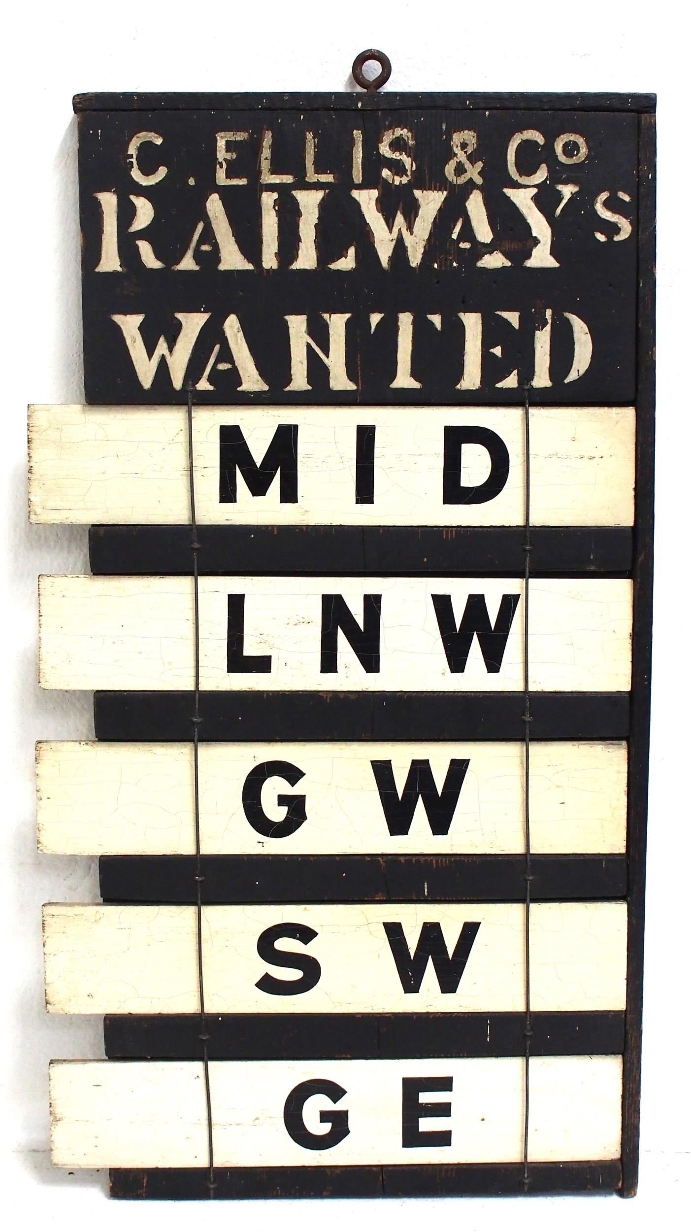 Cartage to call slide in wooden sign, 11"x 22",five slots with double sided boards indicating Rly Co name, unusual. (D3) (Dispatch by Mailboxes/Collect from Banbury Depot)
