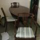 Reproduction Bow Fronted Georgian Style Dining Table on turned centre column with 4 sabre style supports, animal paw castors, 2 Hepplewhite Style Humpback Side Chairs & 2 Carver Chairs with pierced centre splats on faceted turned front supports with drop-in seats (5)