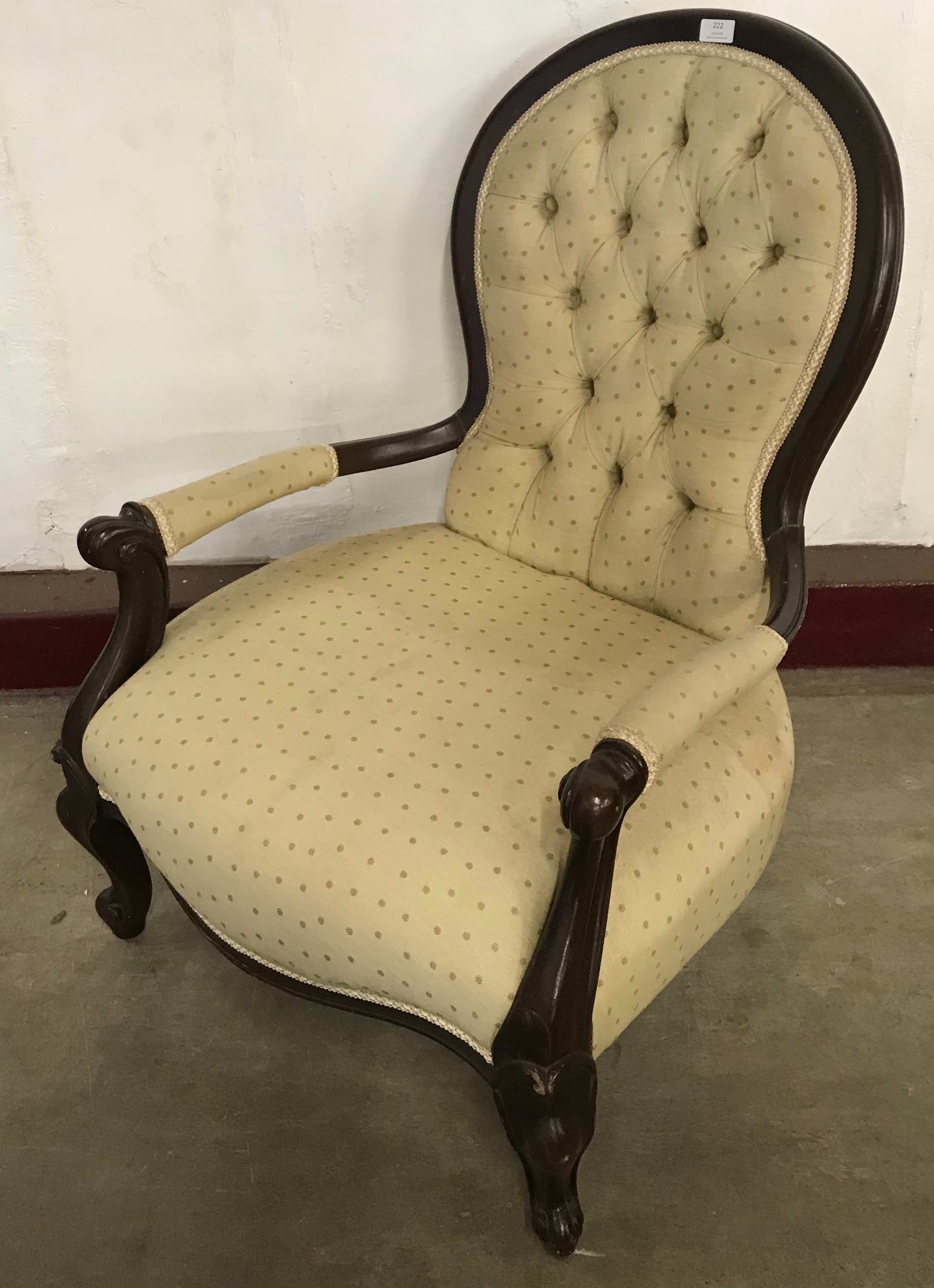 A Victorian mahogany and fabric upholstered lady's bedroom chair