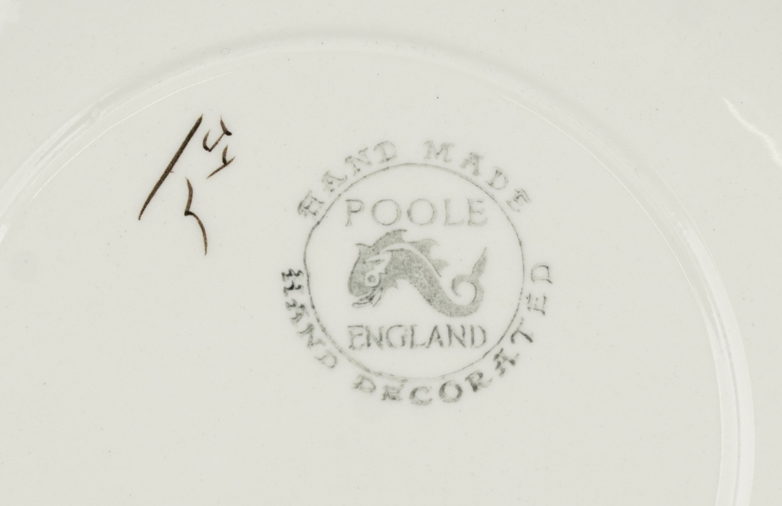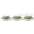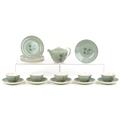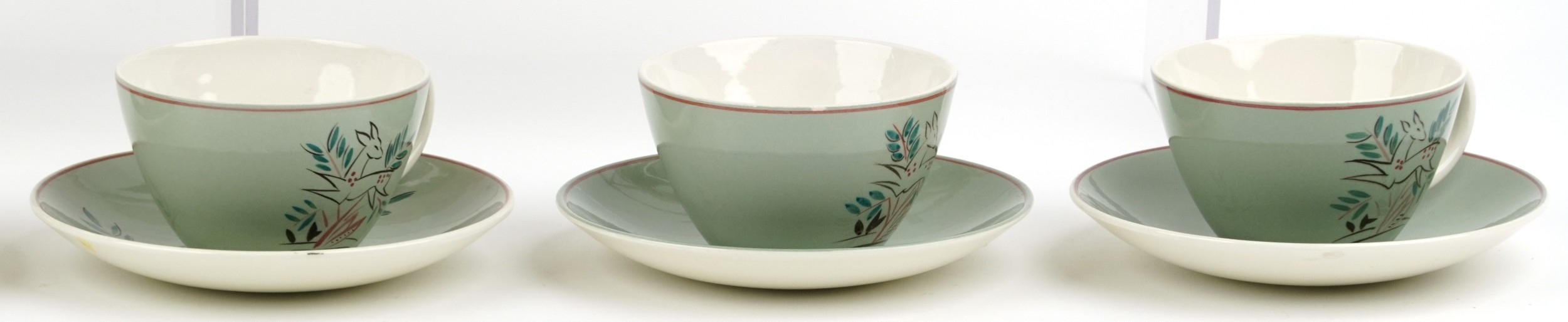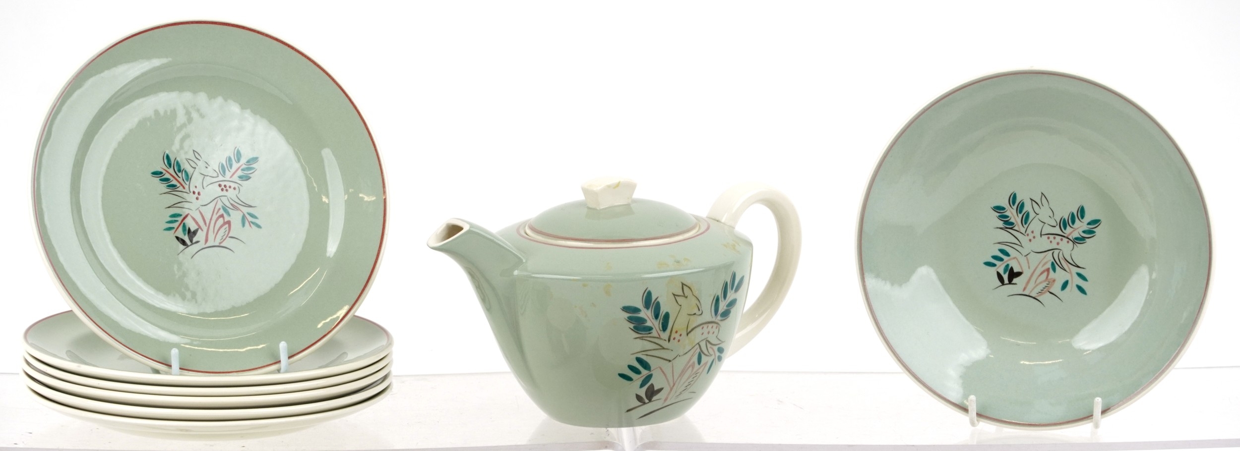 A Poole pottery part tea service comprising cups, saucers, side plates and teapot, the largest 19cm in diameter.