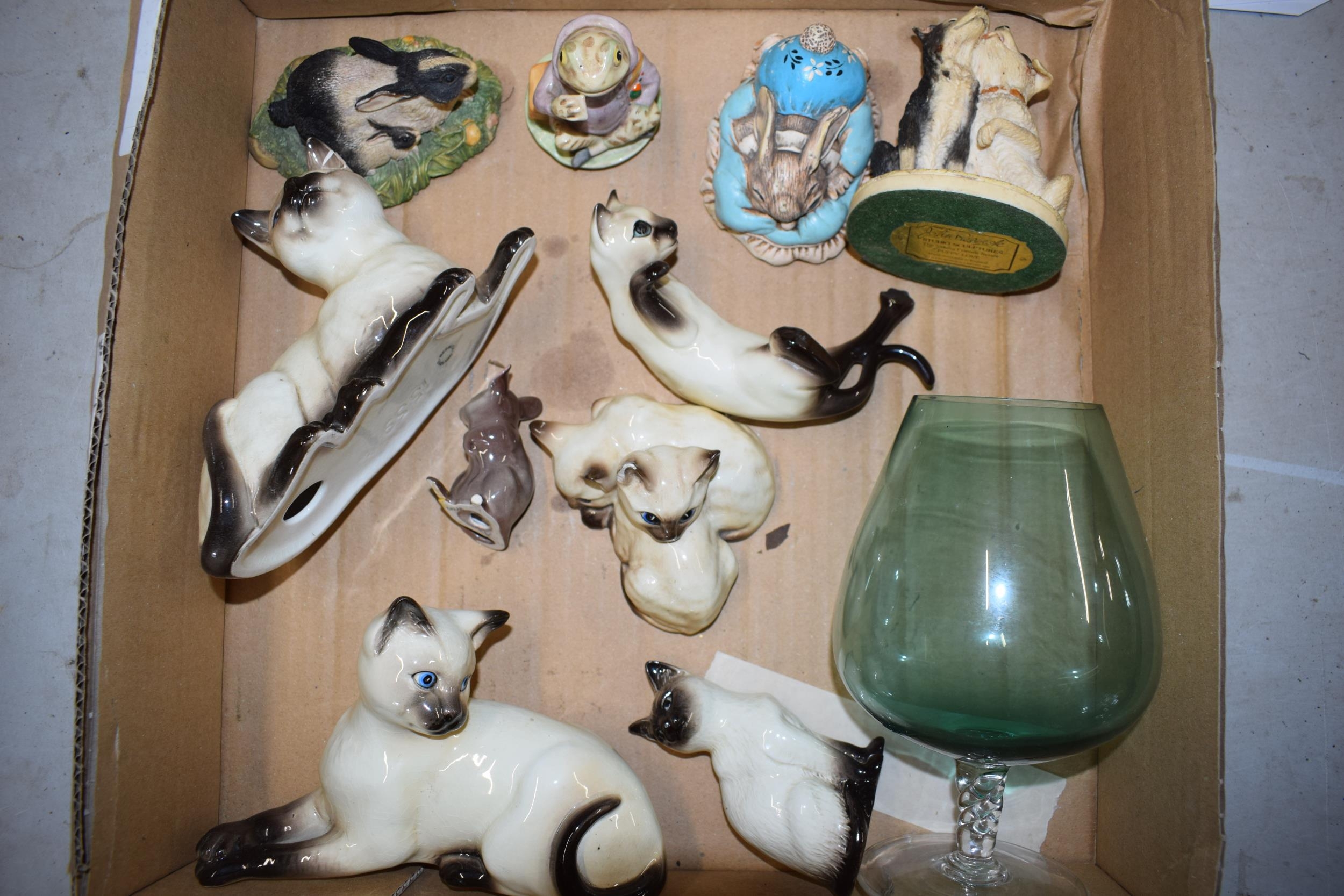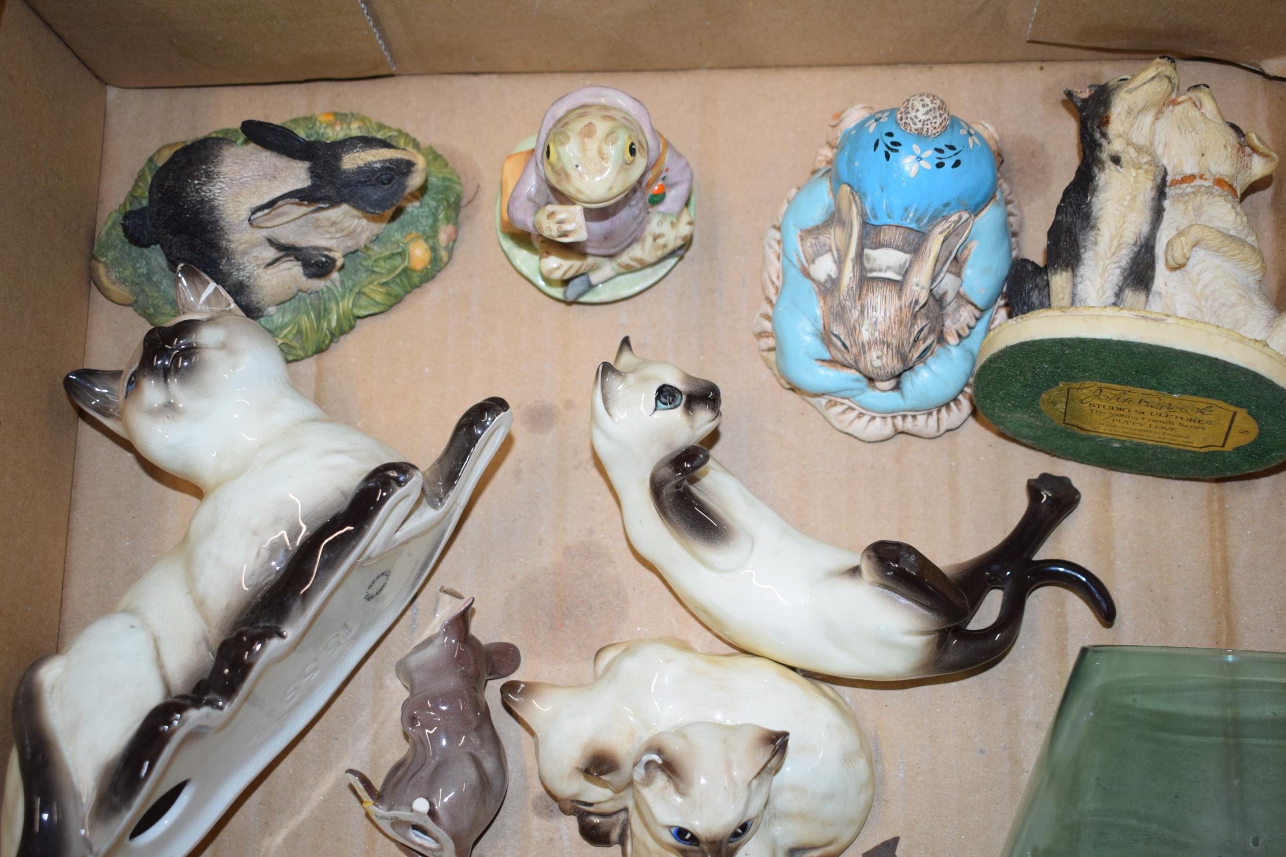 A collection of Beswick and similar to include Siamese Cats, a mouse (af), Royal Albert Jeremy Fisher and others (Qty).