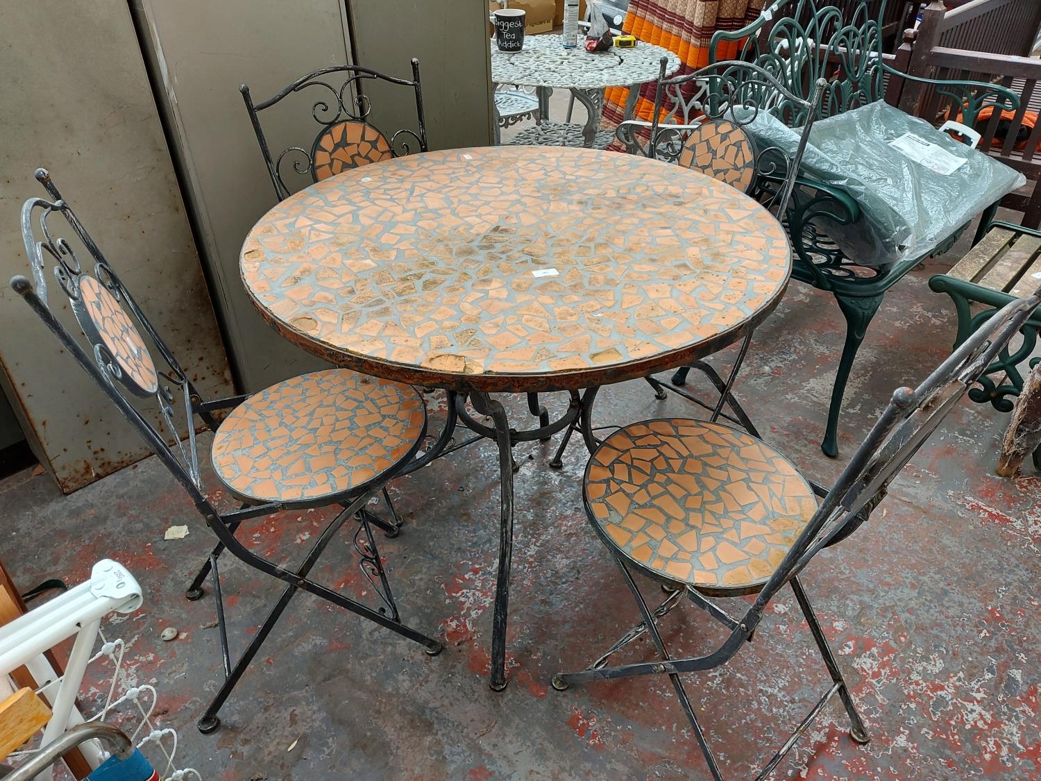 A five piece good quality mosaic patio set comprising of circular table and four matching folding chairs